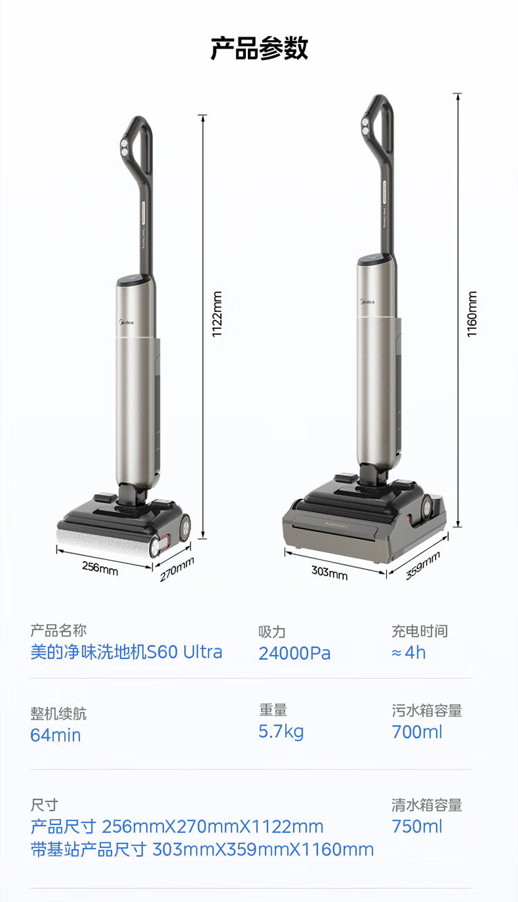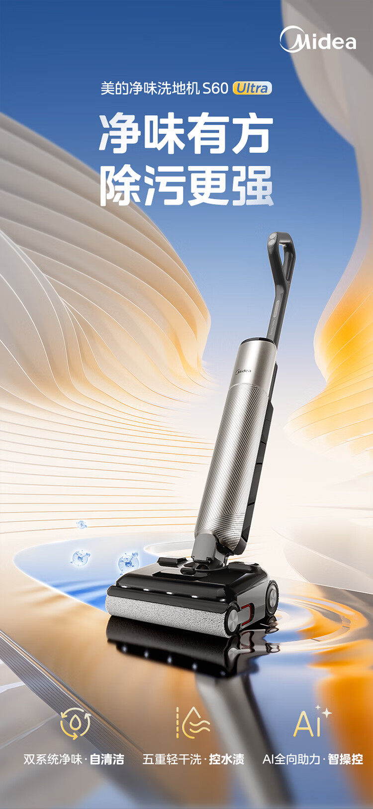 美的(Midea)S60Ultra净味洗地机洗拖吸一体自动清洗拖地机【AI全向助力 智投清洁液 光照显尘】 国家补贴