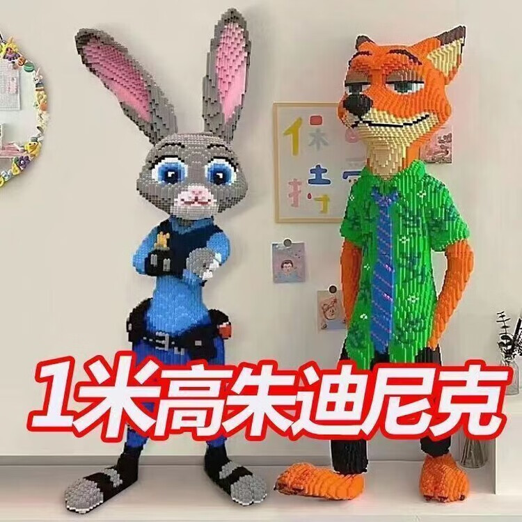 脘铼115cm疯狂动物城兔子朱迪尼克狐狸兼容乐高积木儿童玩具生日礼物 55cm兔子【送工具】 【环保无异味-孩子放心玩】配图纸+积木锤