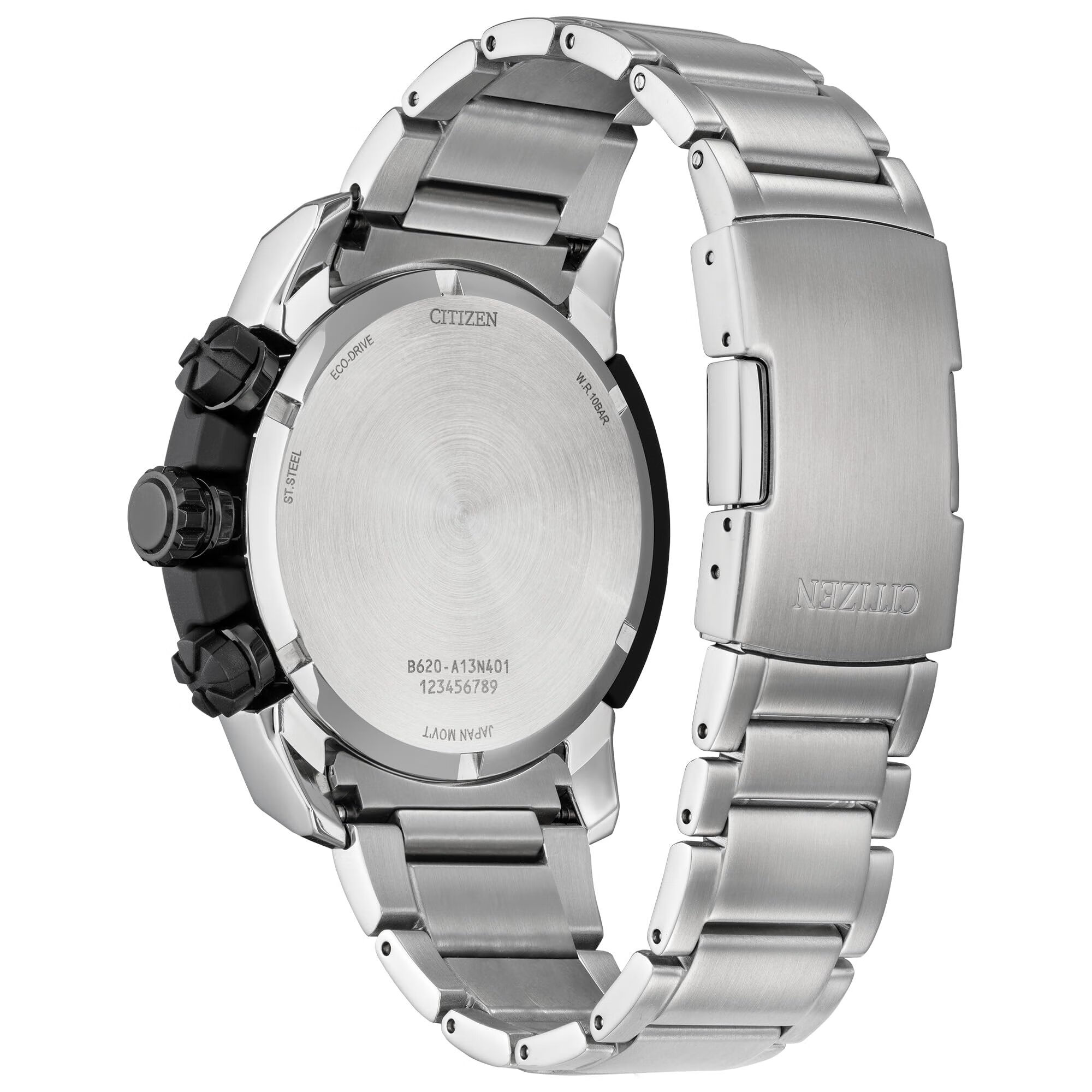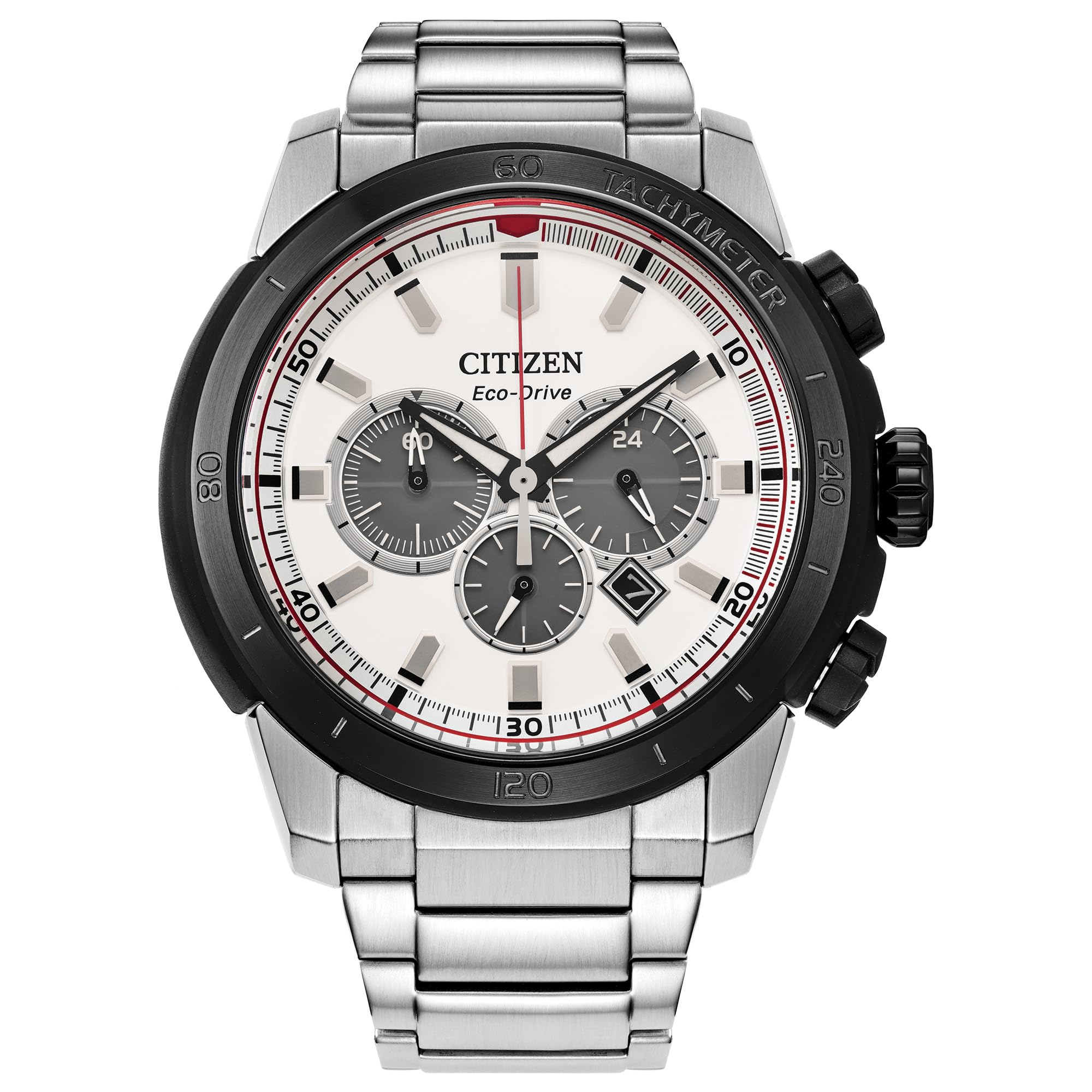 西铁城(CITIZEN) 男士光动能计时腕表 100米防水 钢带运动表 银色