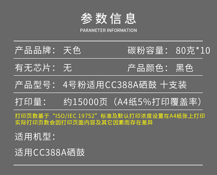 天色碳粉适用惠普388a碳粉m1136墨粉m126a/nw p1007/1008/1106/1108 m1218nfs m128fn/fp/fw打印机88a碳粉