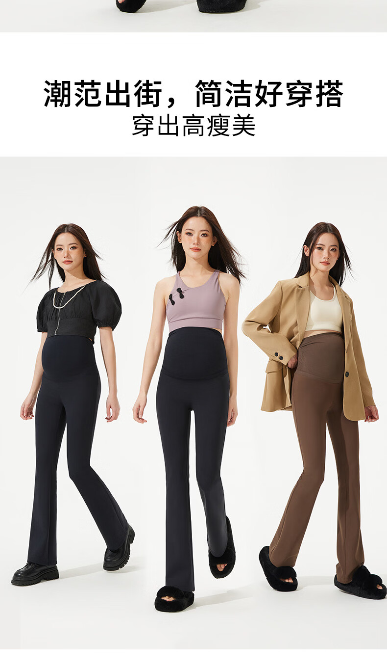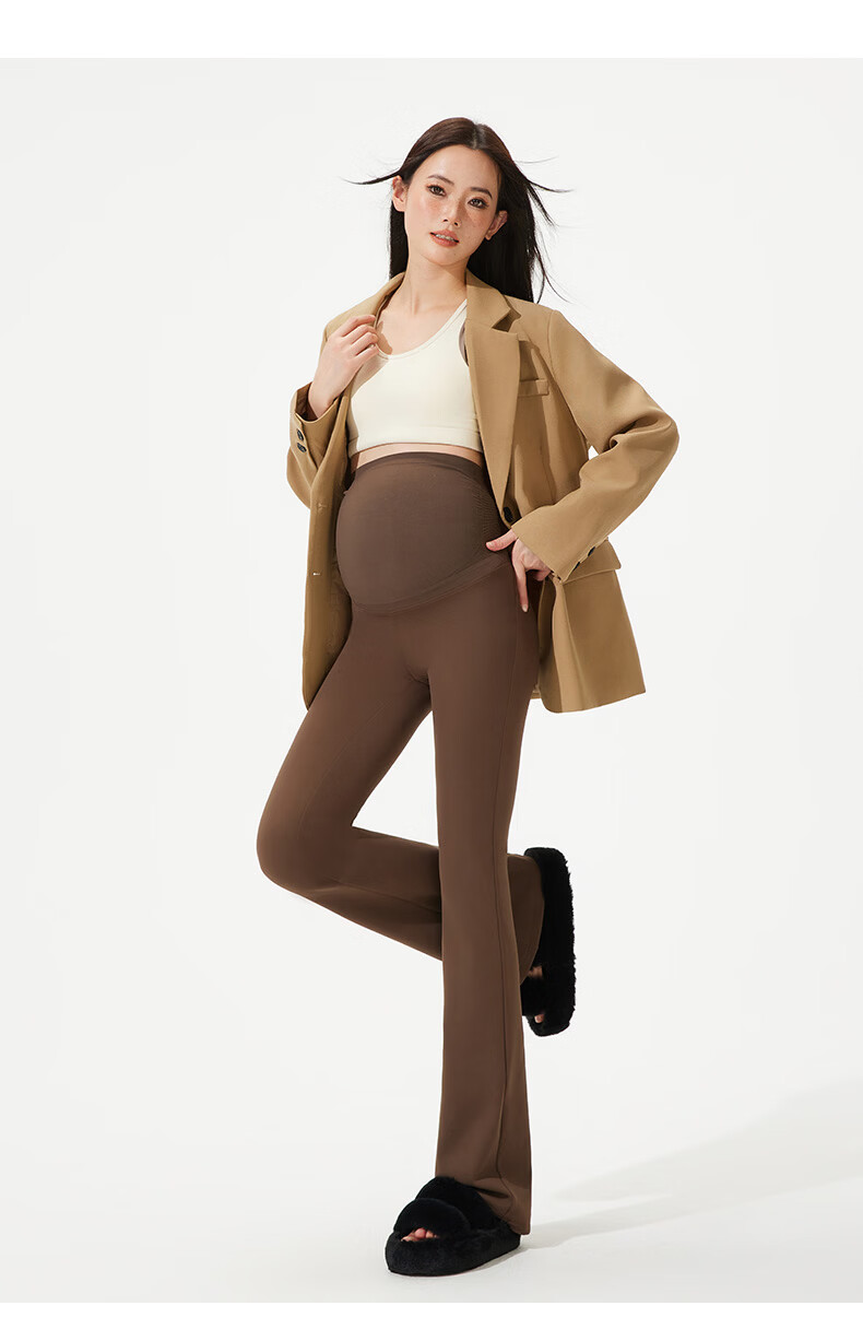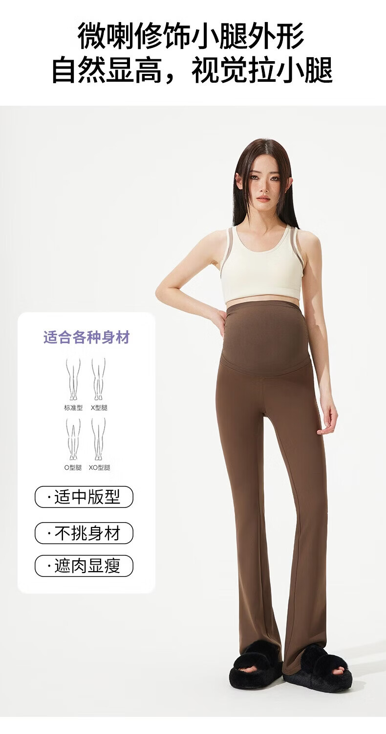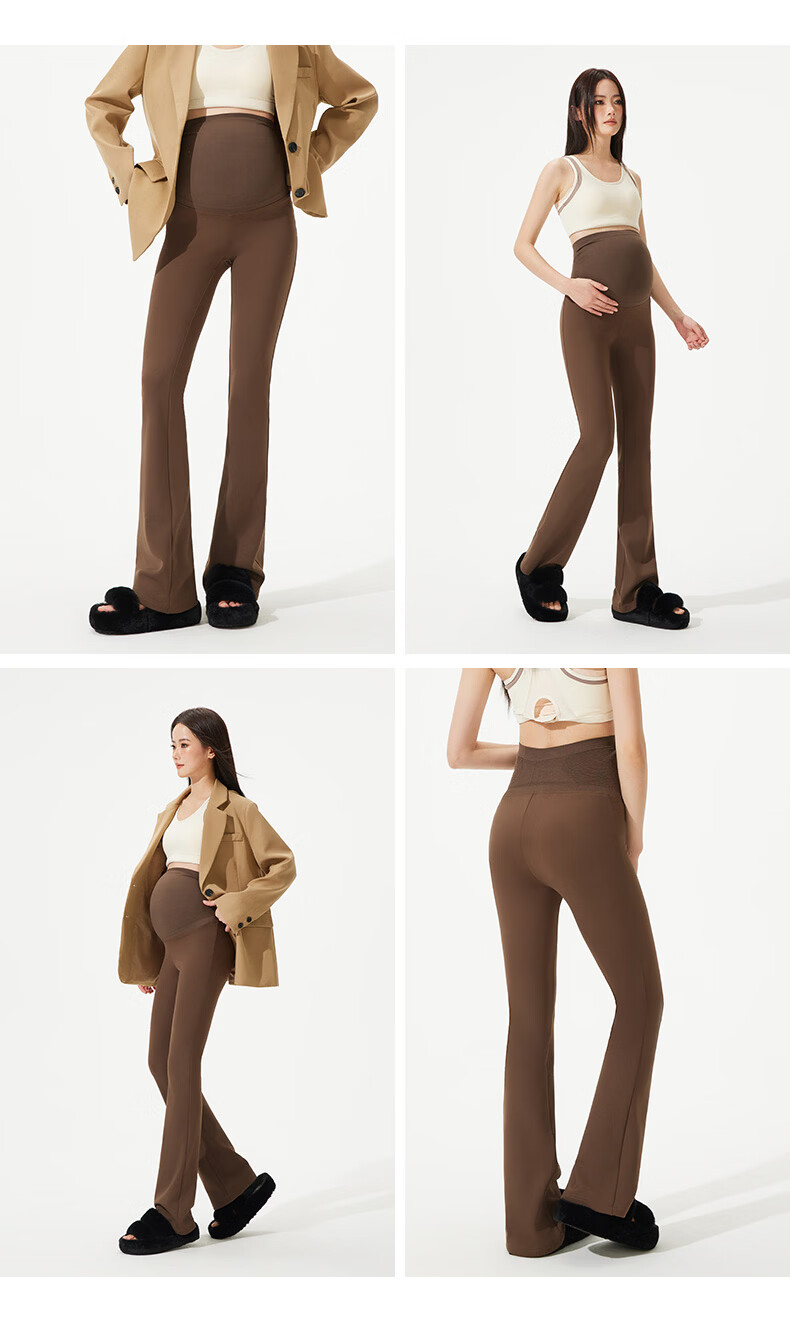 孕之彩孕妇裤春夏季外穿不勒肚子微喇叭裤显瘦显高休闲长裤孕妇装 巧克力色 XL