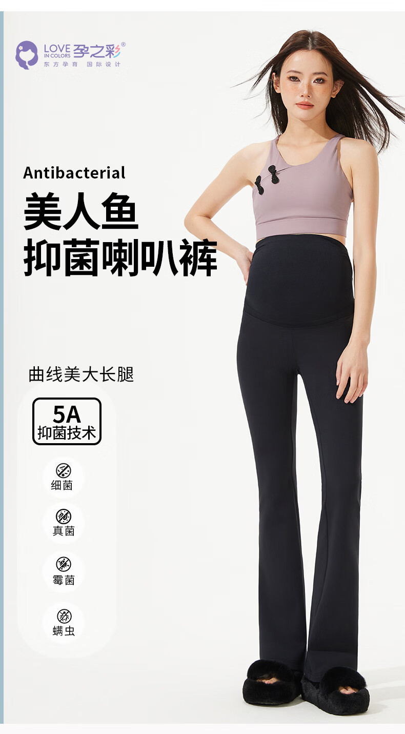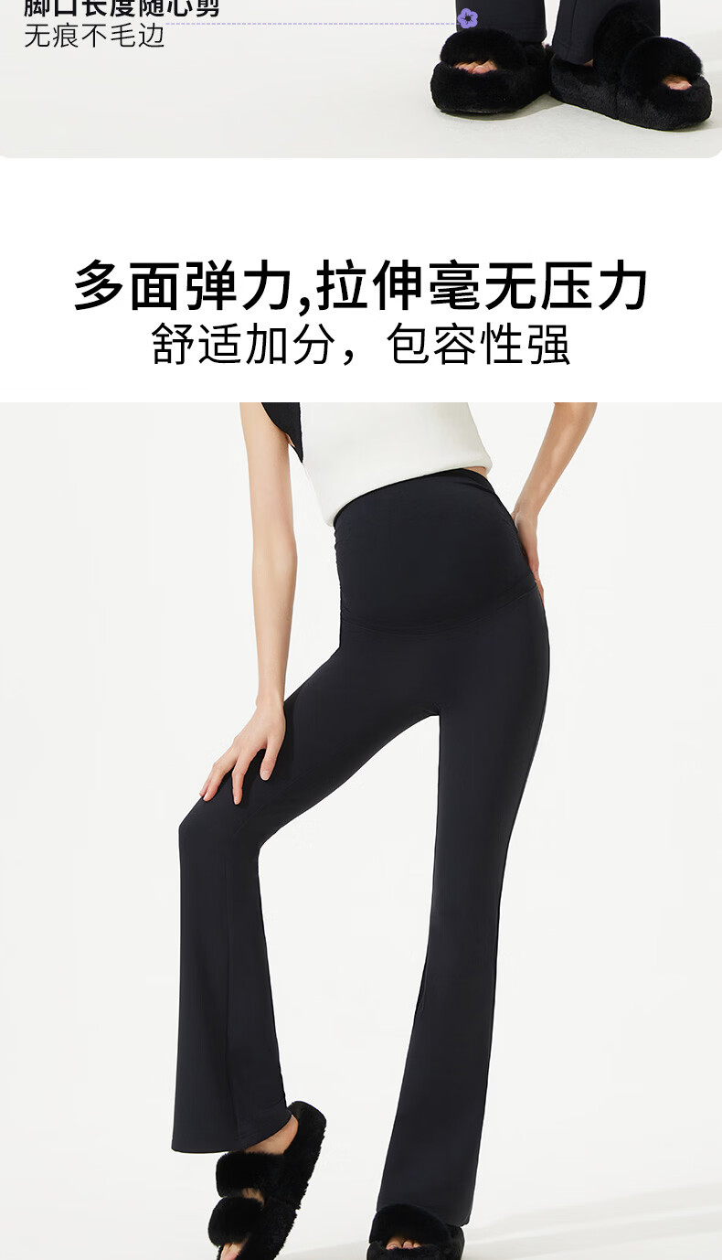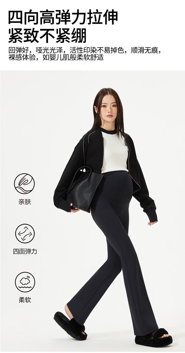 孕之彩孕妇裤春夏季外穿不勒肚子微喇叭裤显瘦显高休闲长裤孕妇装 巧克力色 XL