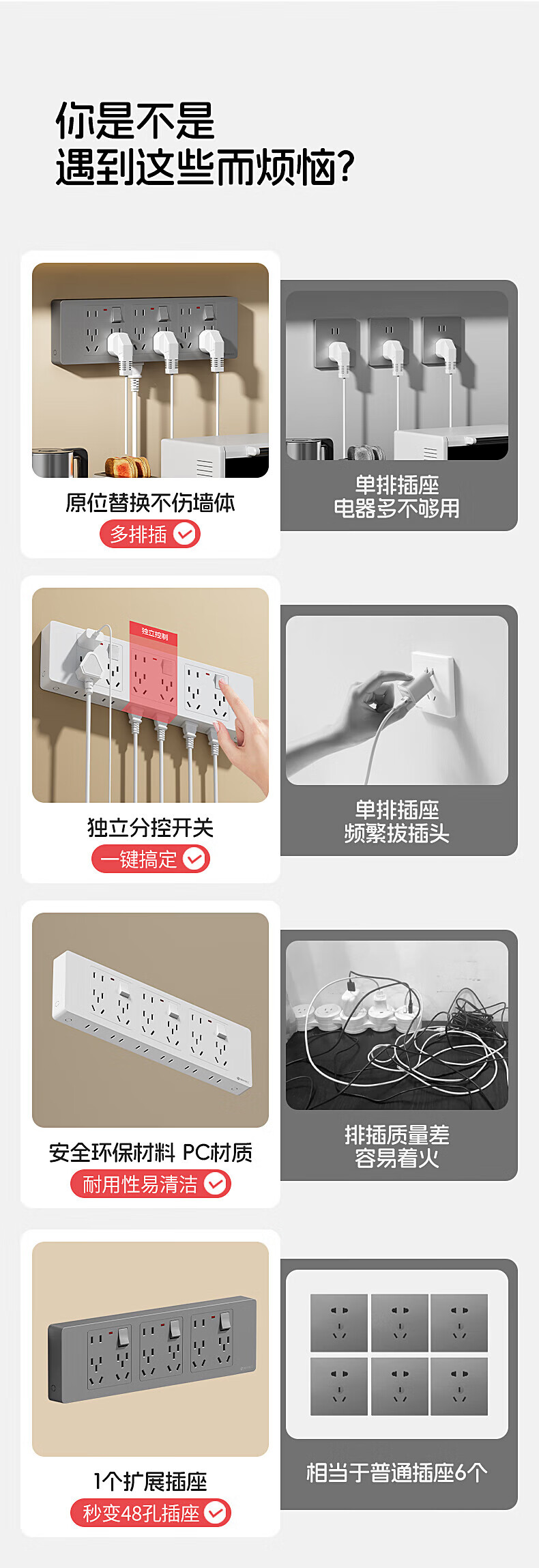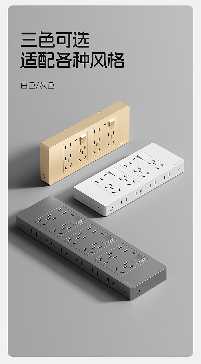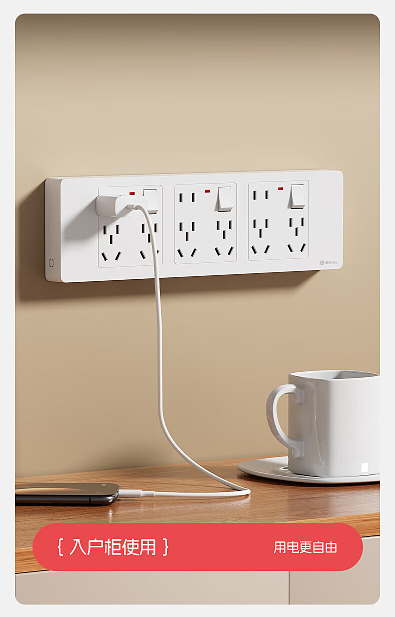 国际电工(FDD)86型扩展式插座面板拓展多功能转换器明装厨房家用多孔带开关排插 【二开32孔】白色-左右均可扩展