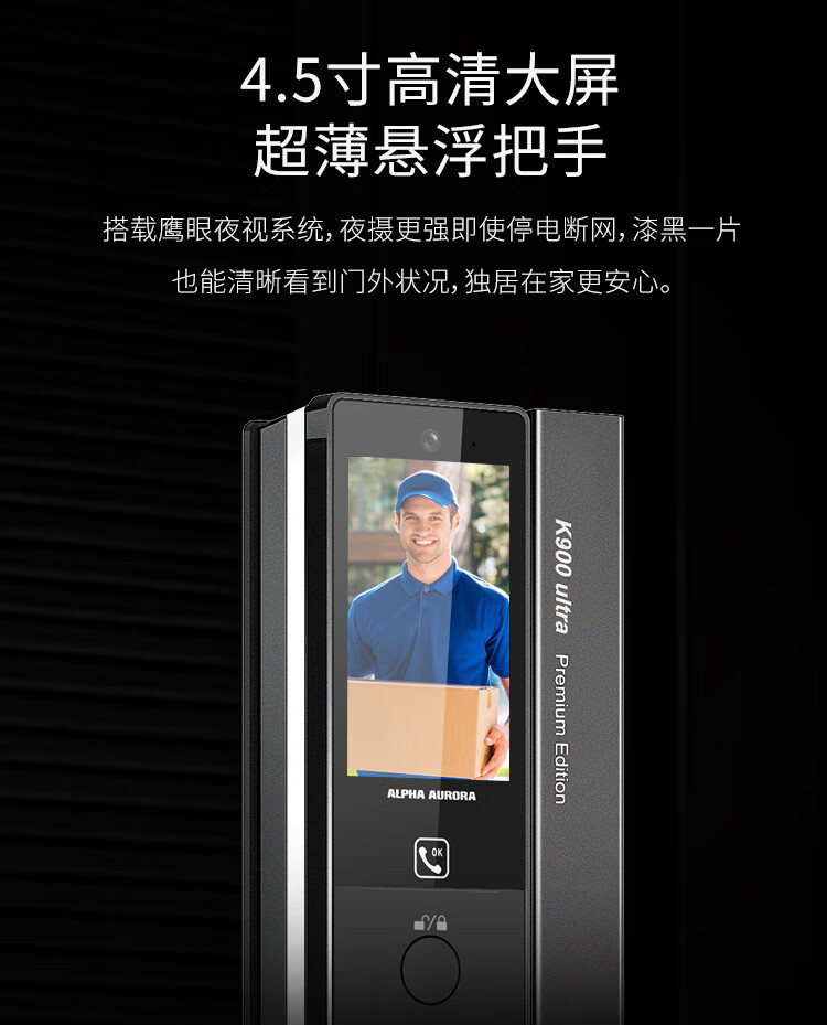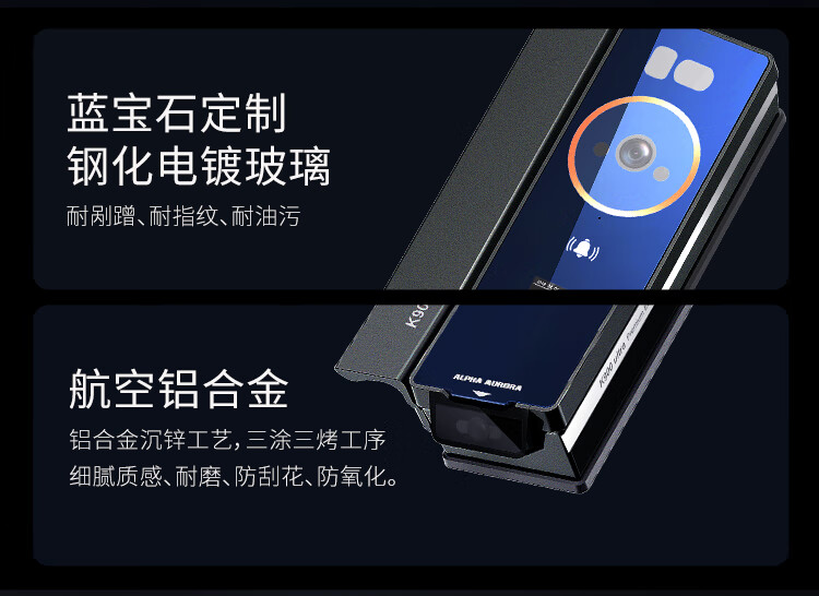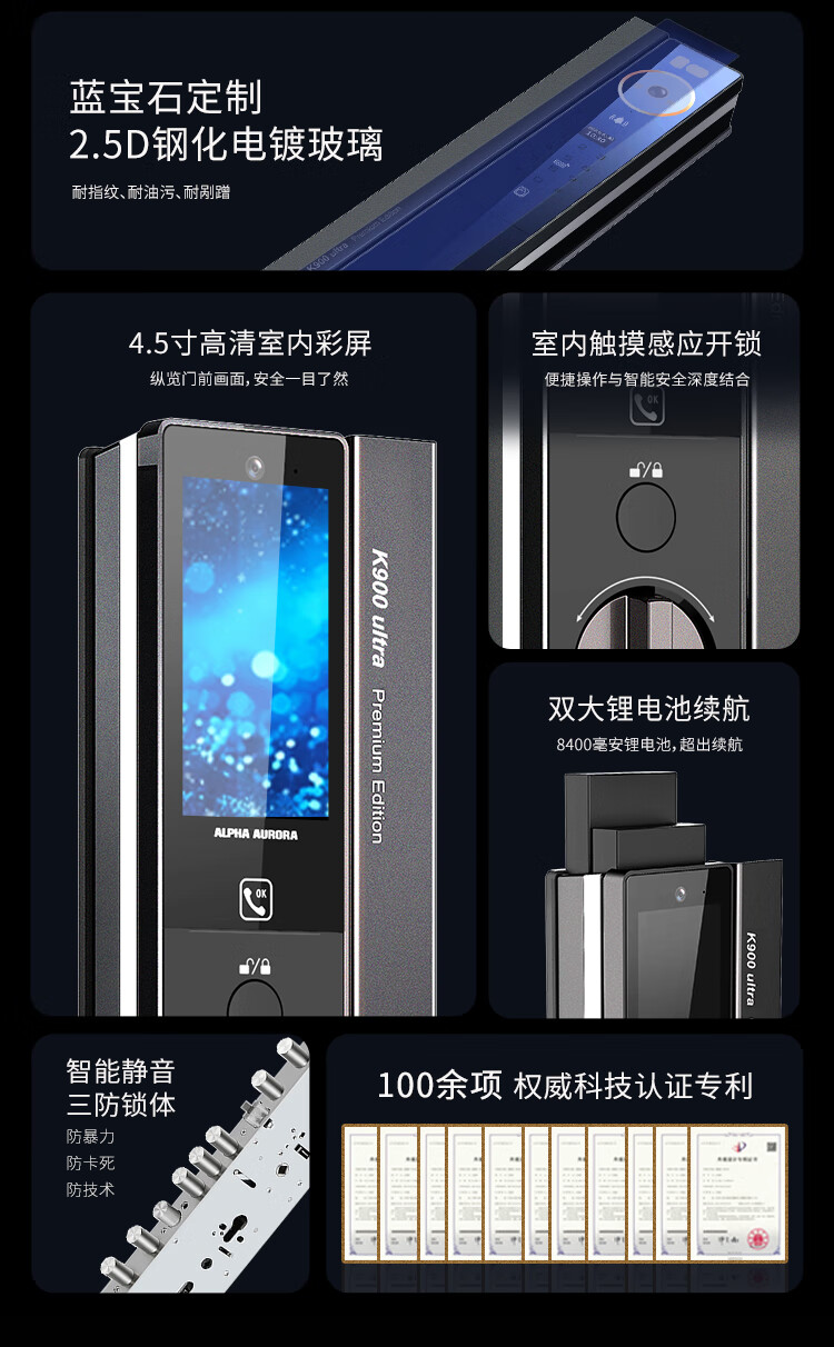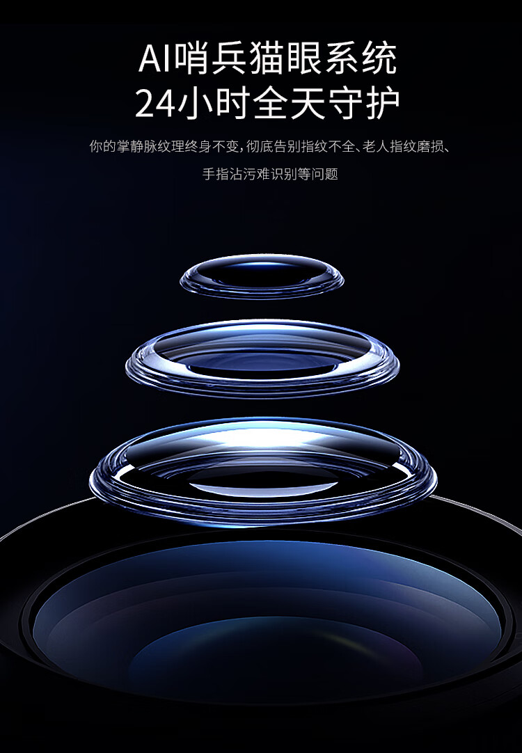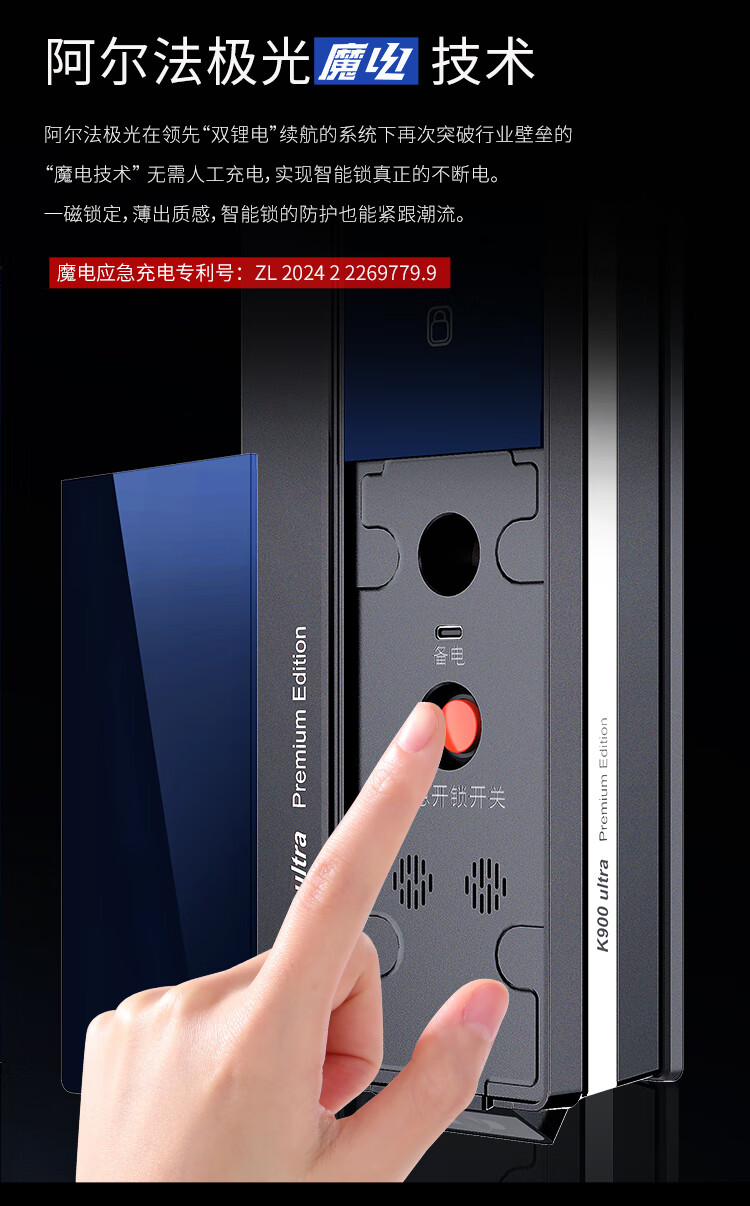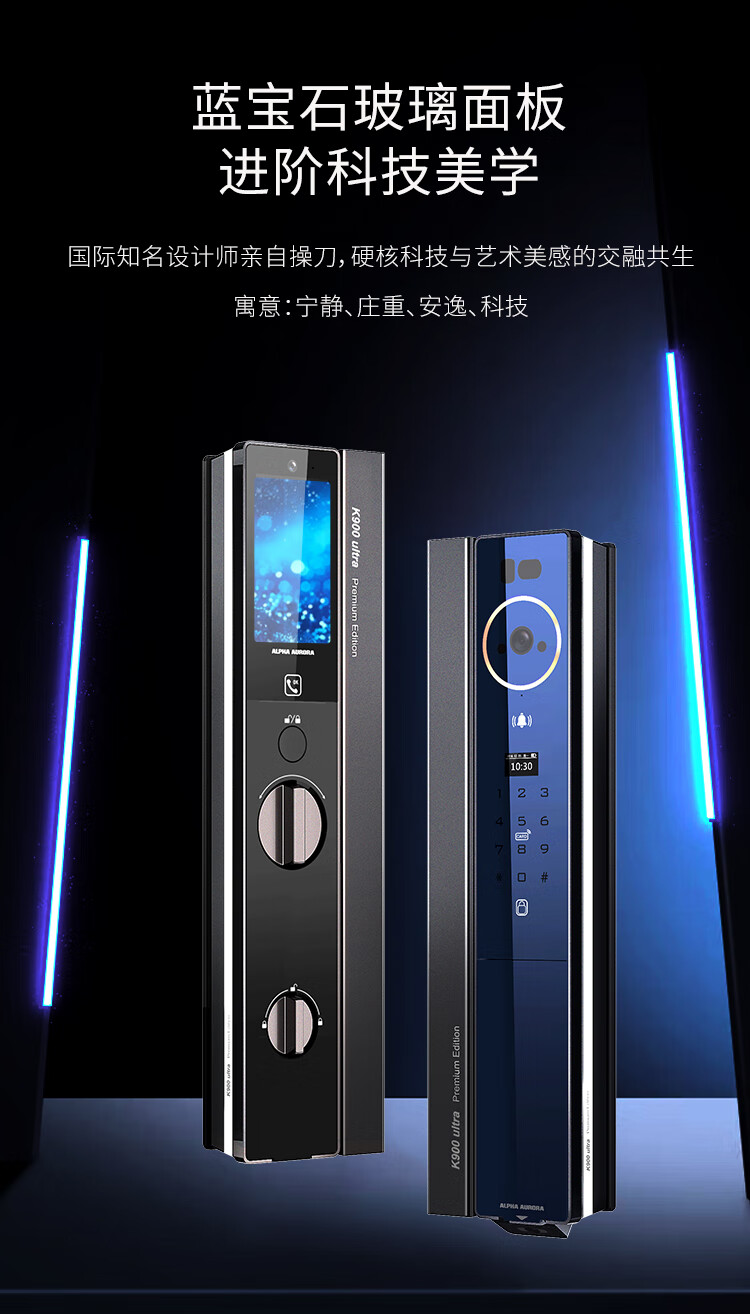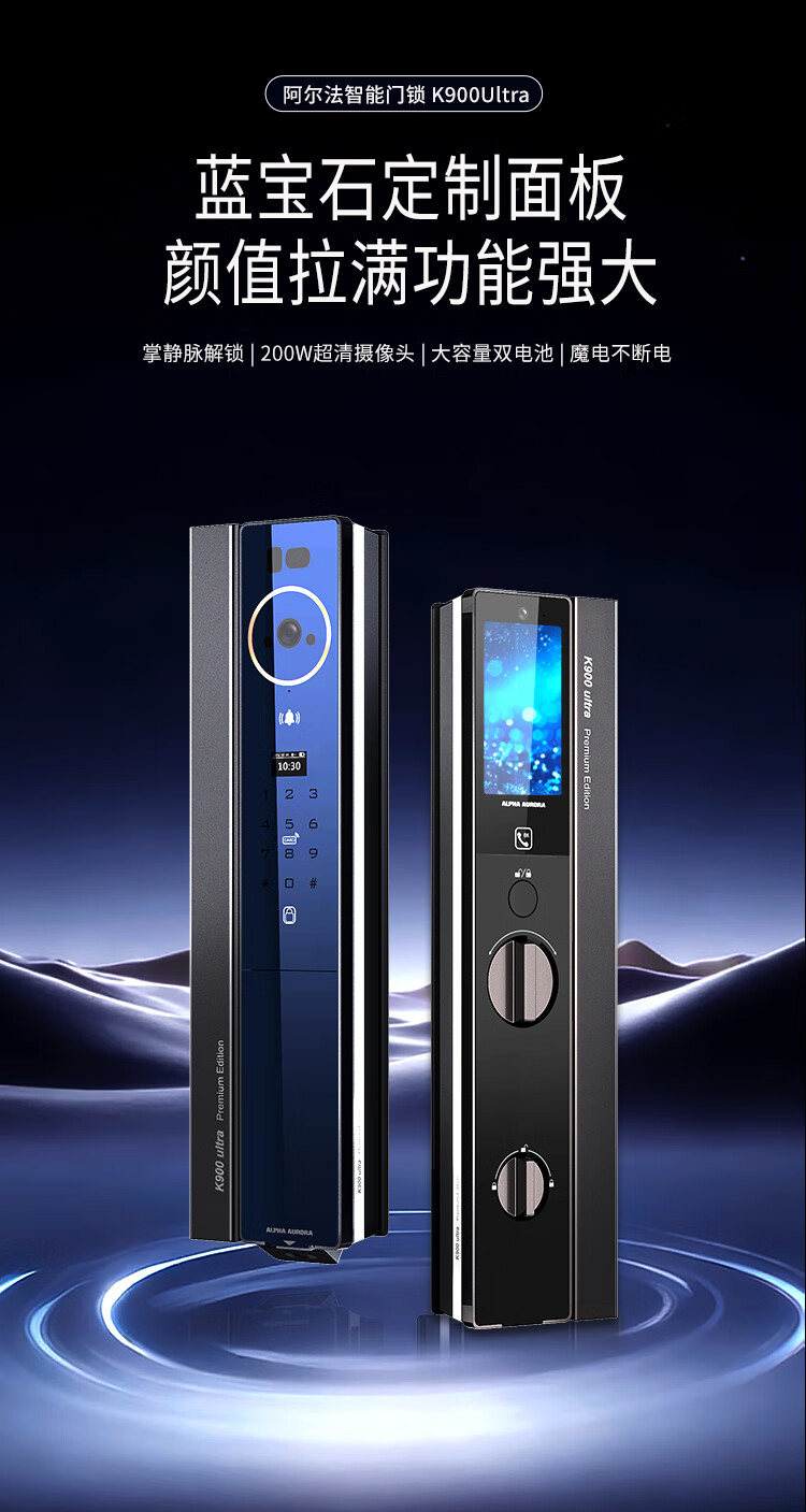 阿尔法极光K900Ultra智能门锁 人脸掌静脉识别不断电家用入户防盗电子锁新款 K900Ultra不断电技术 掌静脉 手机远程