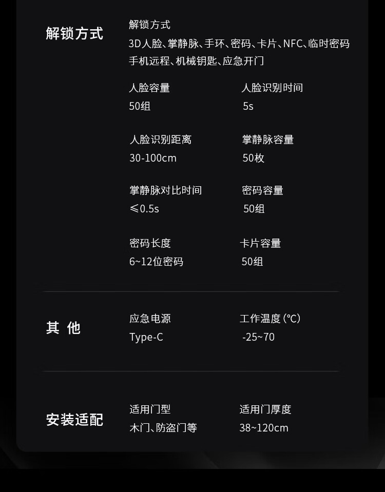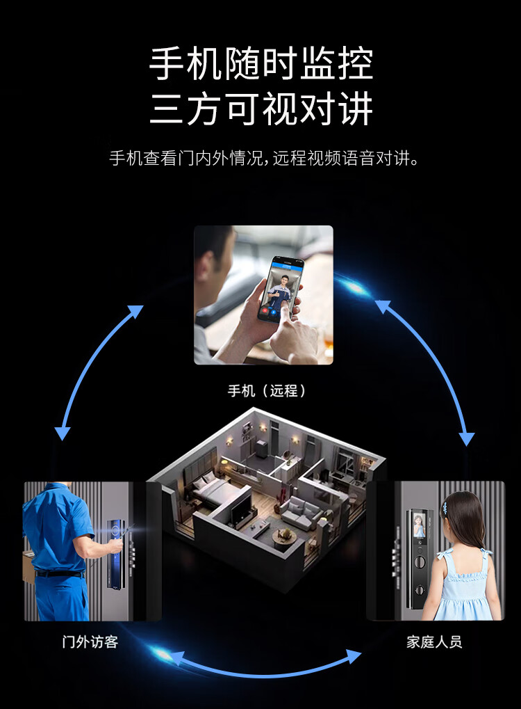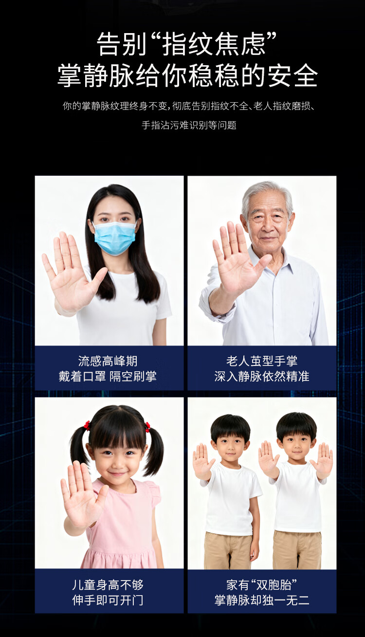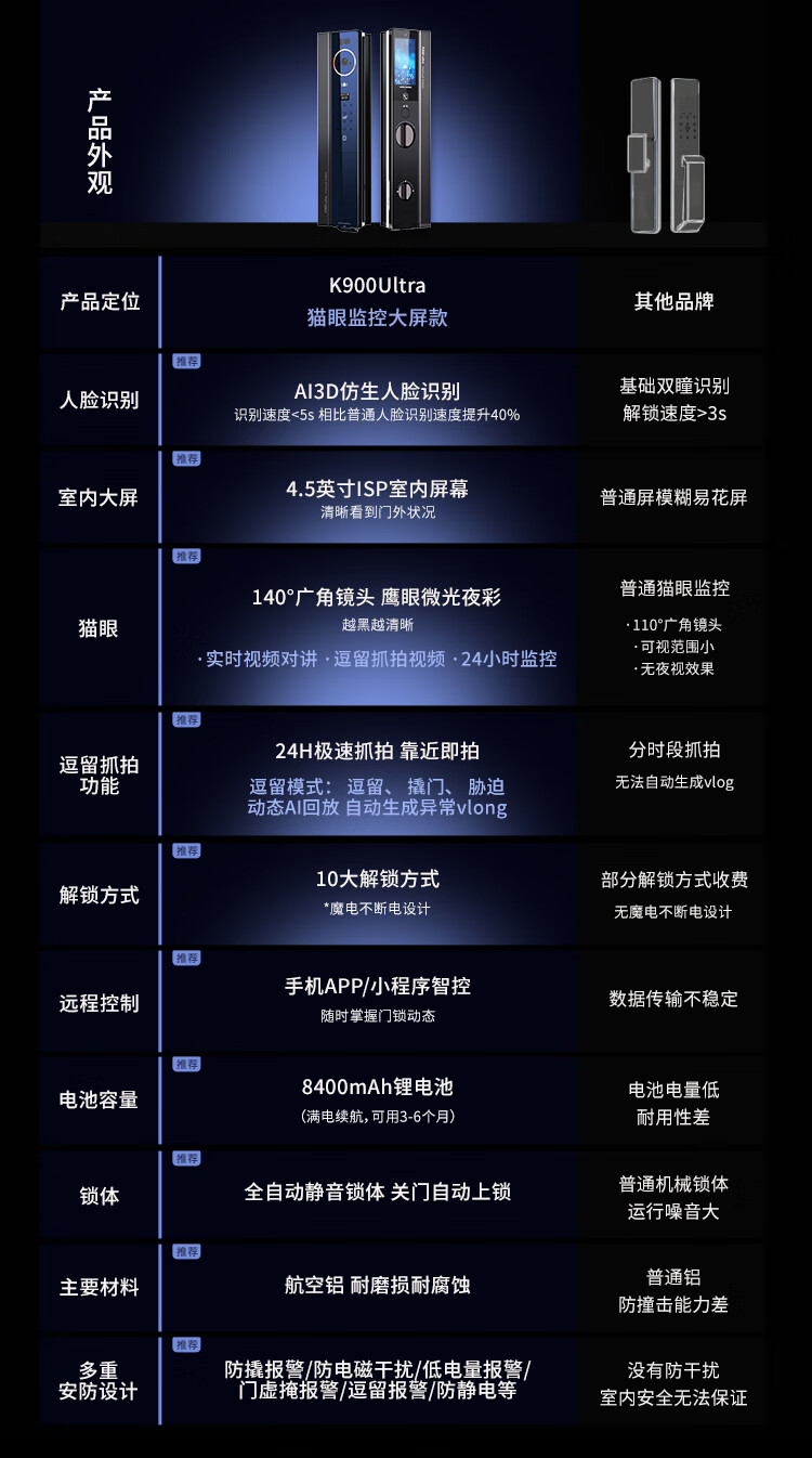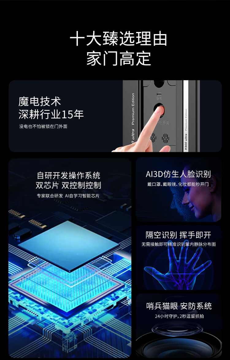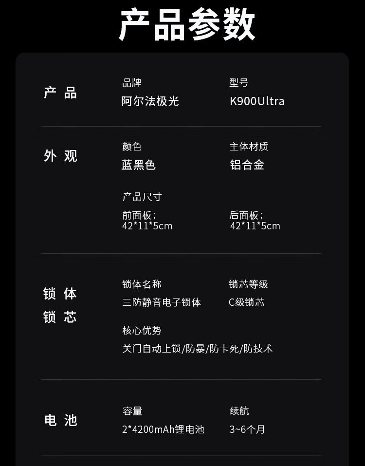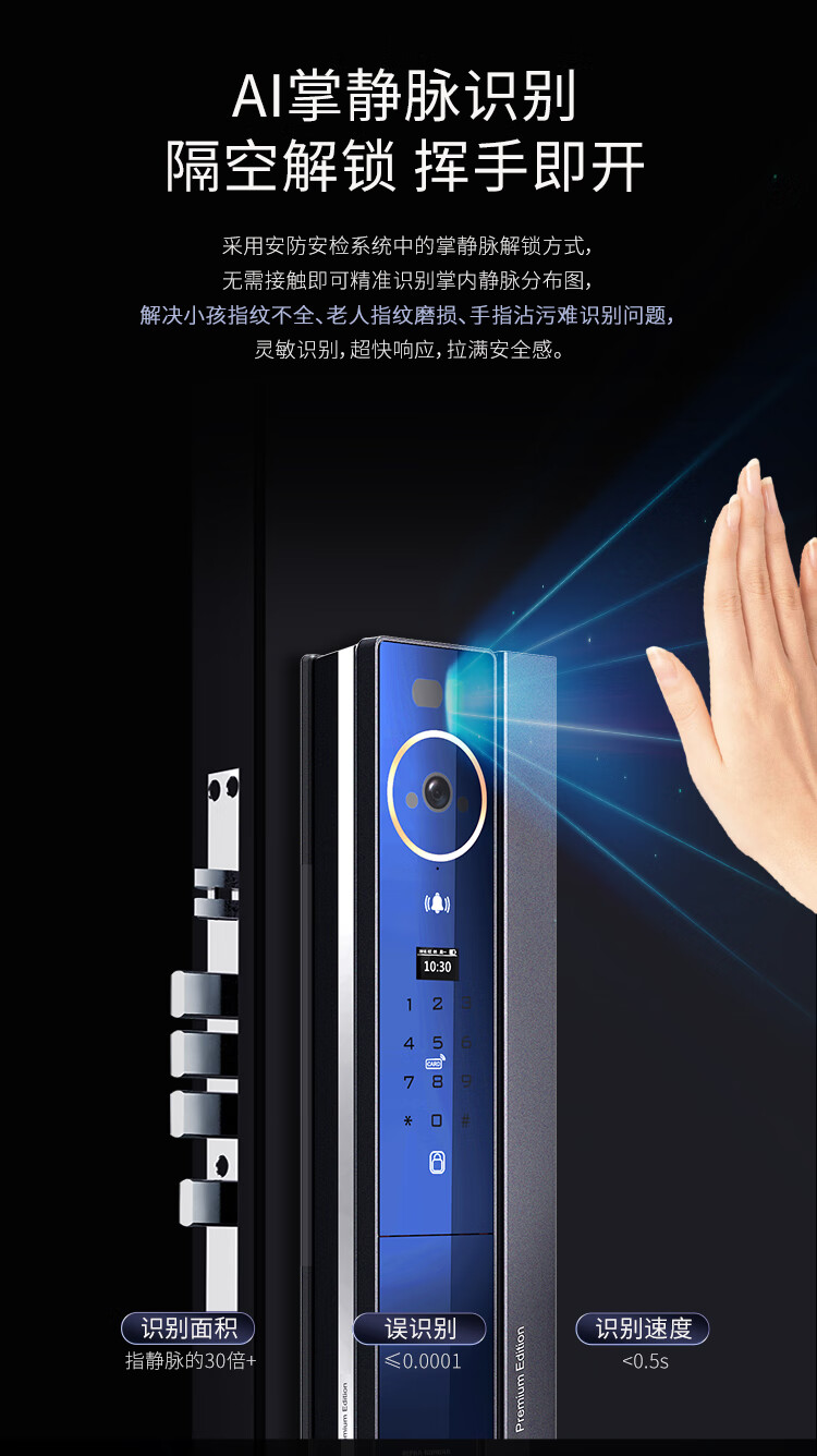 阿尔法极光K900Ultra智能门锁 人脸掌静脉识别不断电家用入户防盗电子锁新款 K900Ultra不断电技术 掌静脉 手机远程