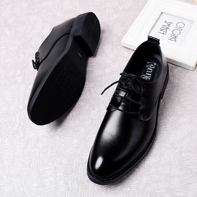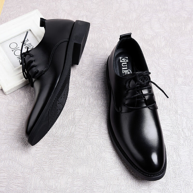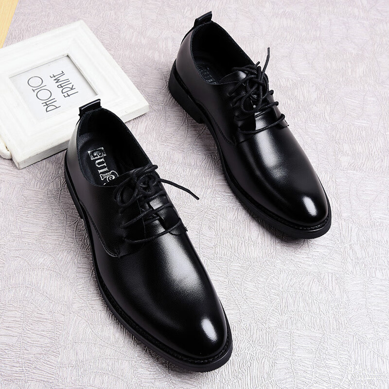 啄木鸟青年正装皮鞋男学生西装黑色软底软面英伦韩版商务男鞋尖头休闲鞋 1122软底软面黑色 偏小一码 38