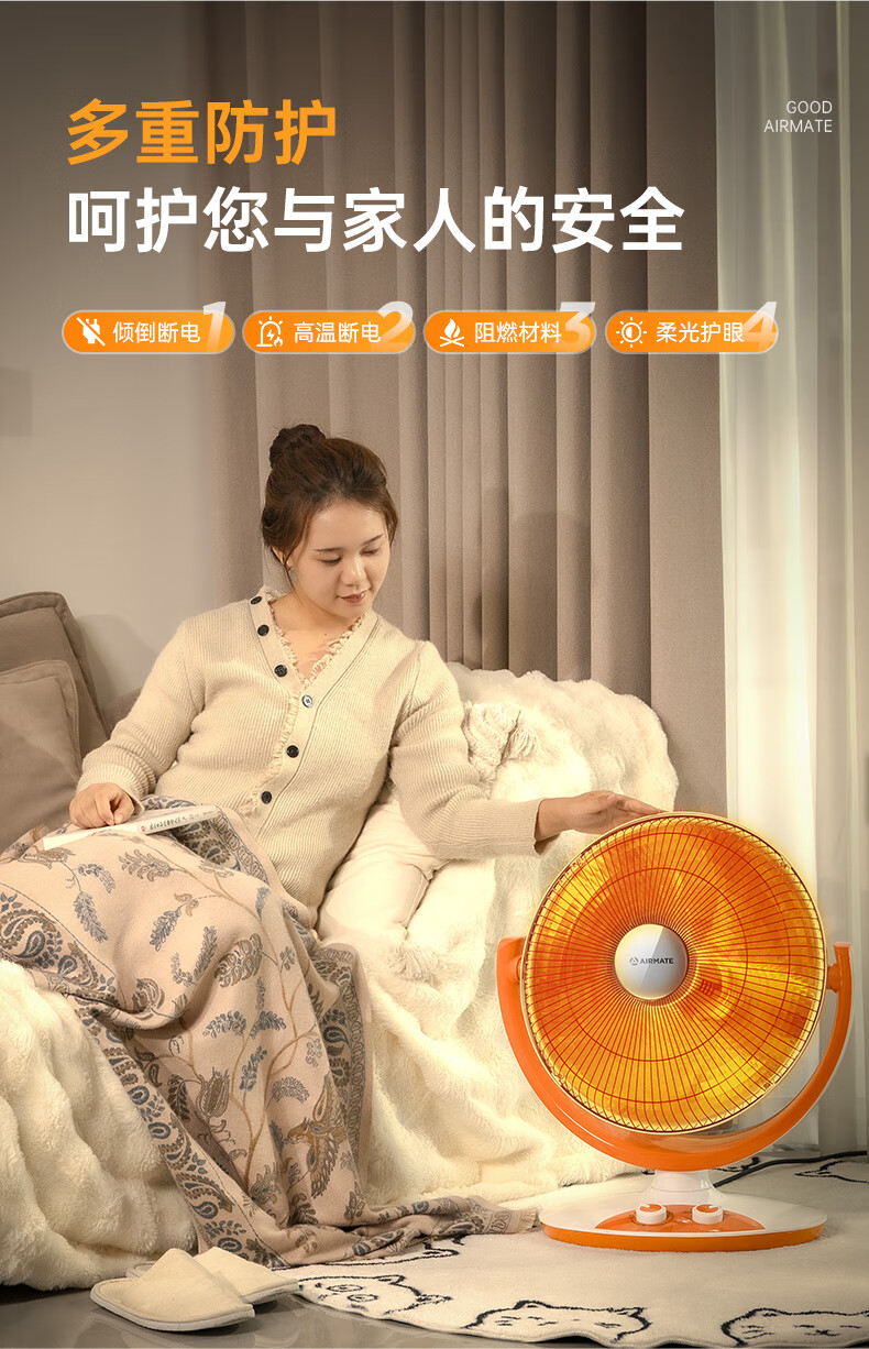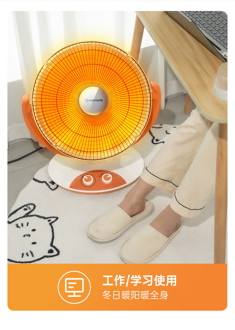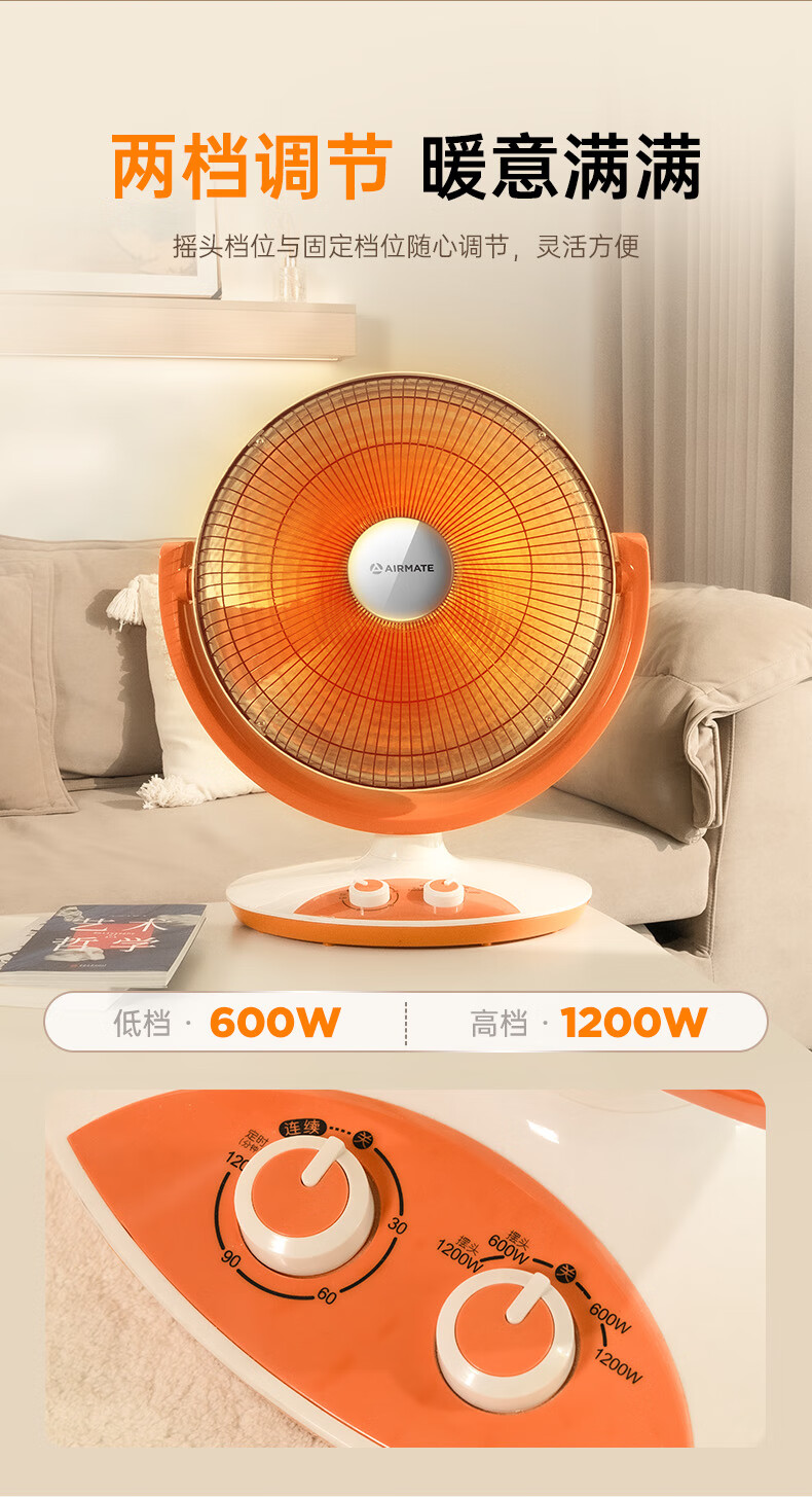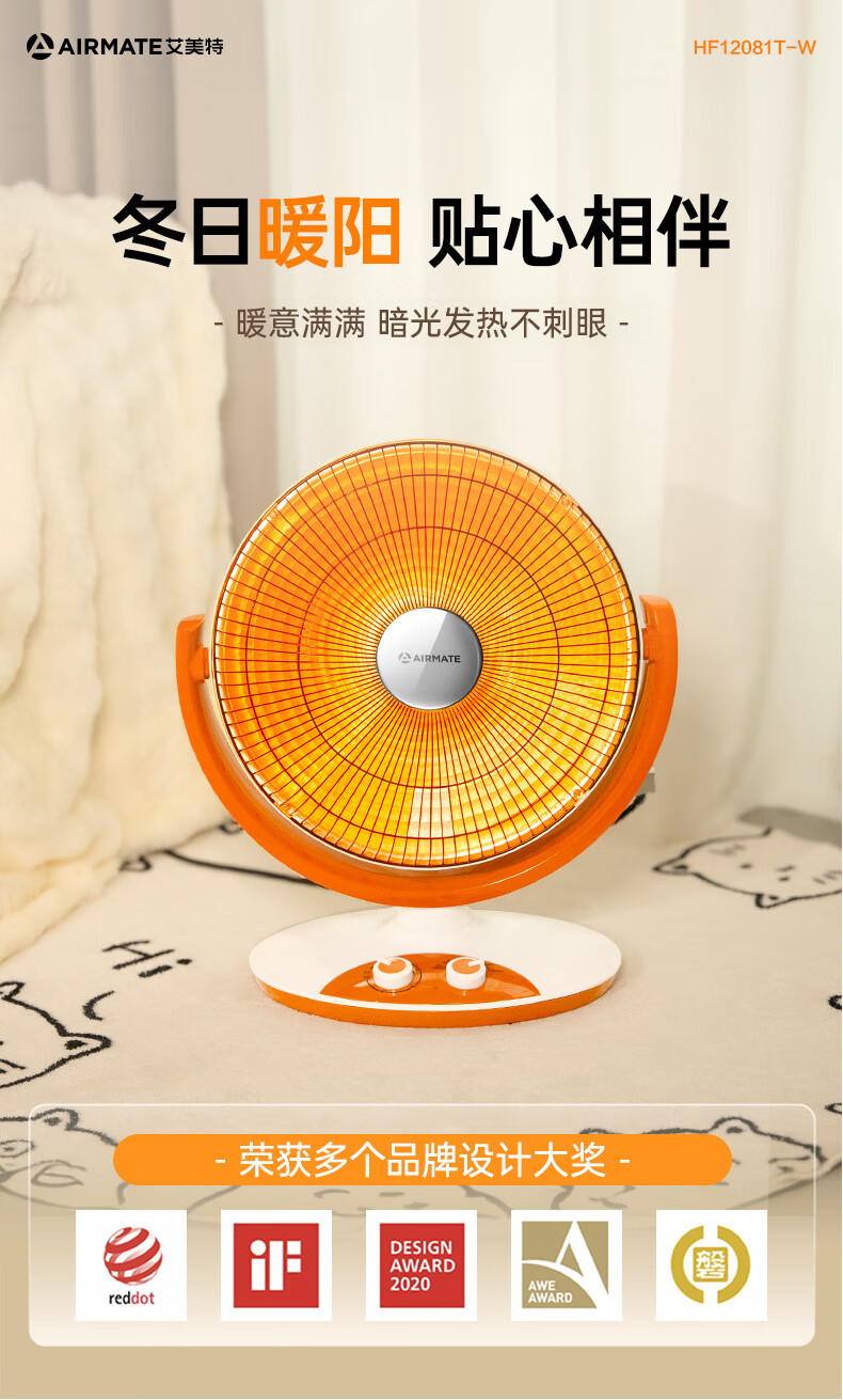 艾美特(AIRMATE)小太阳取暖器轻音电热扇远红外制热电暖气家用节能省电烤火炉暗光陶瓷速热两档调节柔光款倾倒断电 低杆【快速取暖/1200W】HF12081T-W