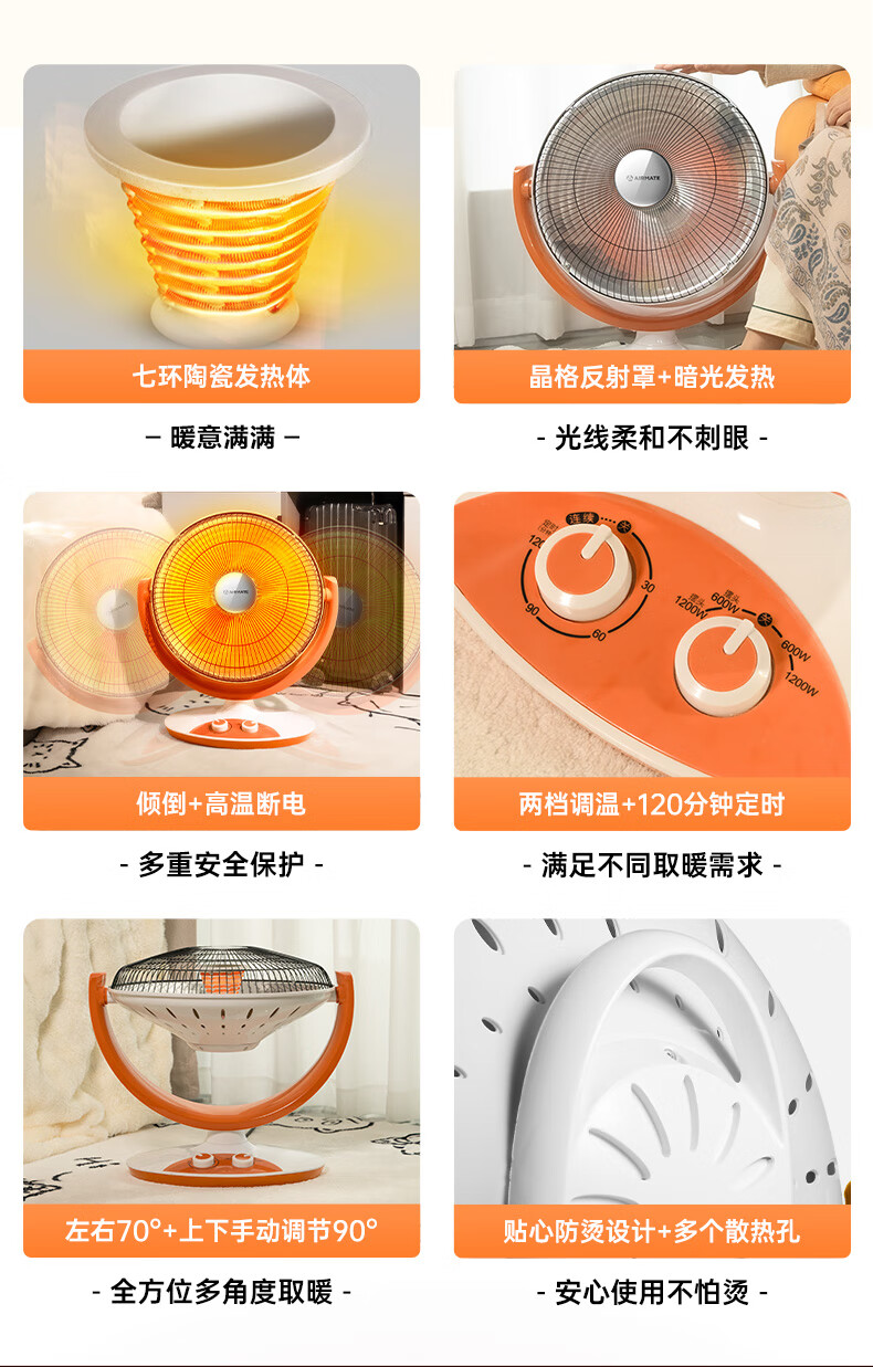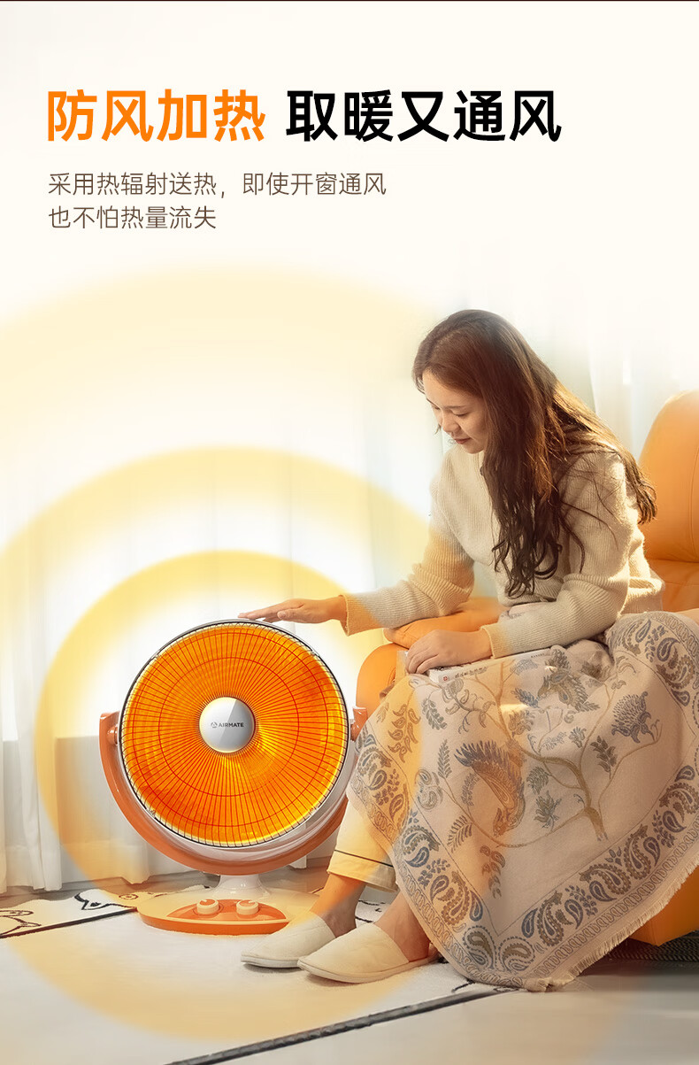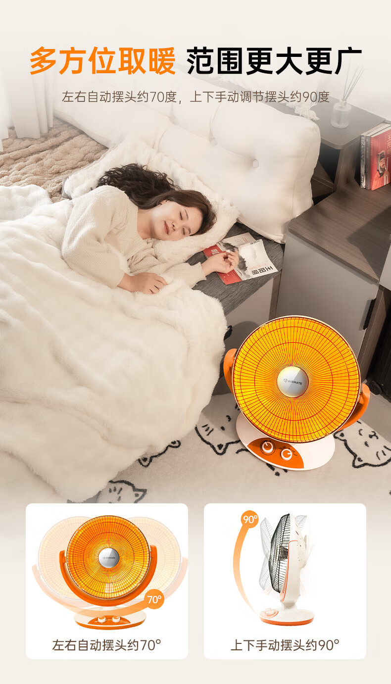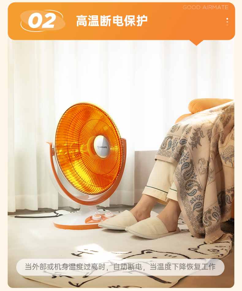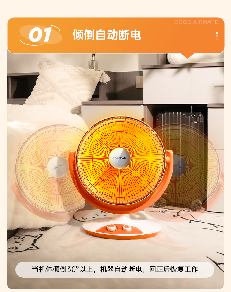 艾美特(AIRMATE)小太阳取暖器轻音电热扇远红外制热电暖气家用节能省电烤火炉暗光陶瓷速热两档调节柔光款倾倒断电 低杆【快速取暖/1200W】HF12081T-W