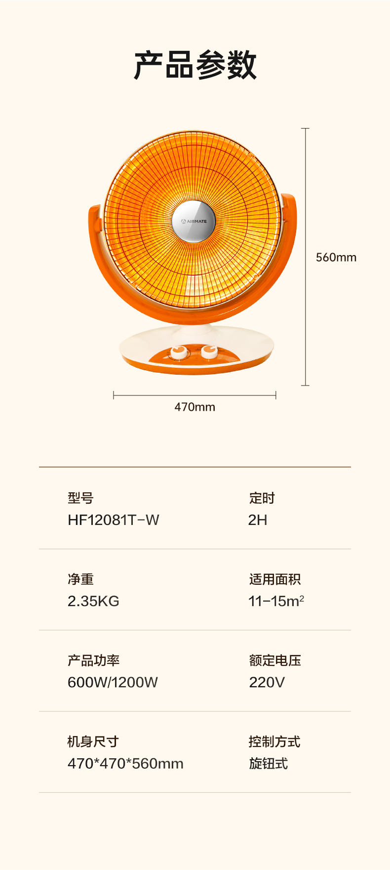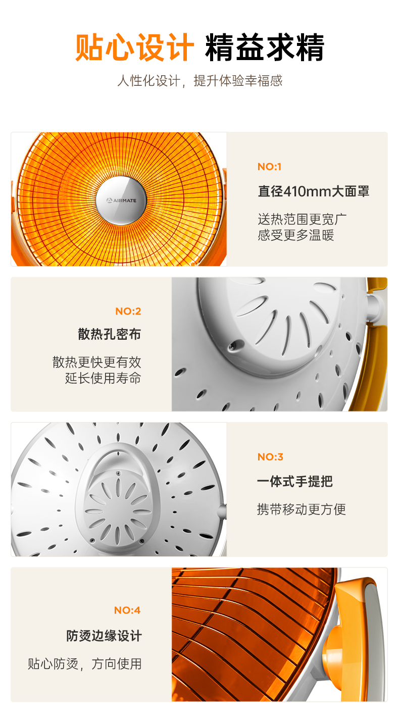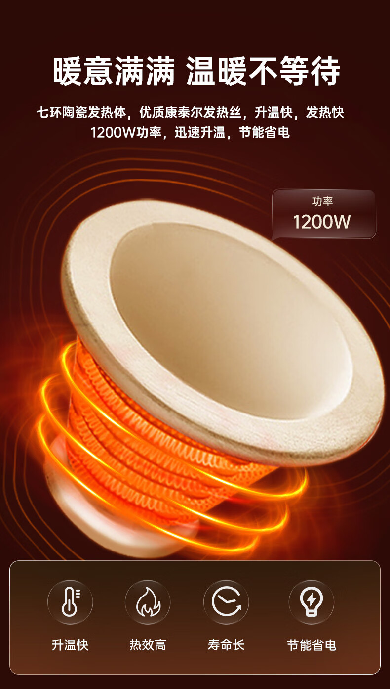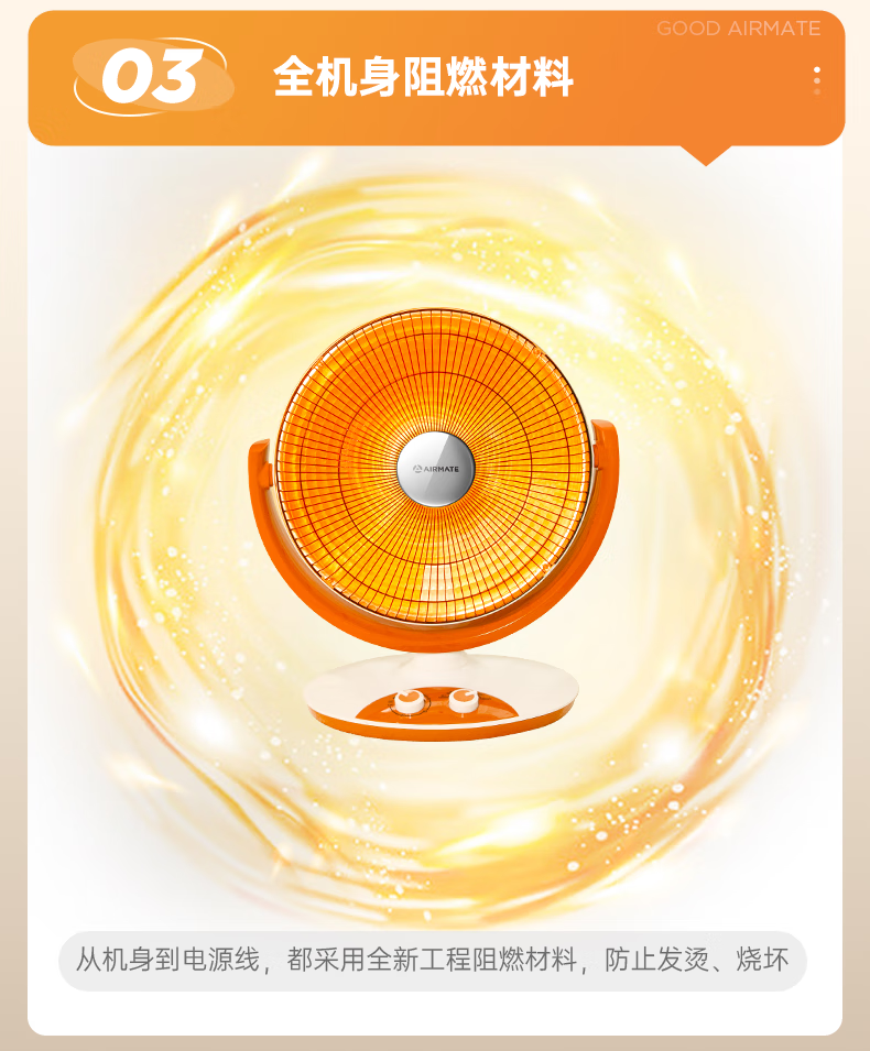 艾美特(AIRMATE)小太阳取暖器轻音电热扇远红外制热电暖气家用节能省电烤火炉暗光陶瓷速热两档调节柔光款倾倒断电 低杆【快速取暖/1200W】HF12081T-W