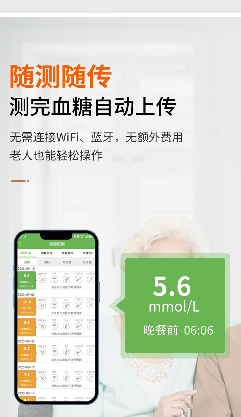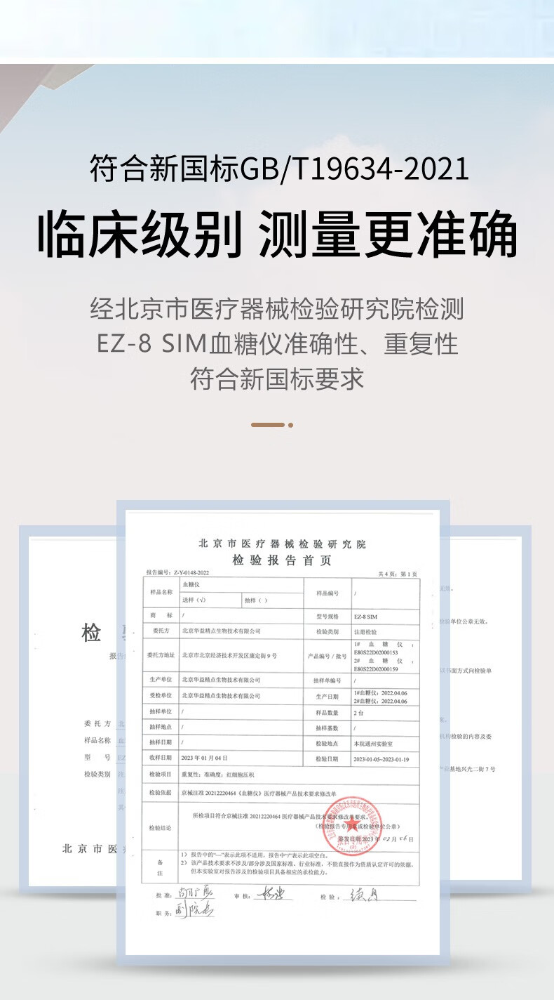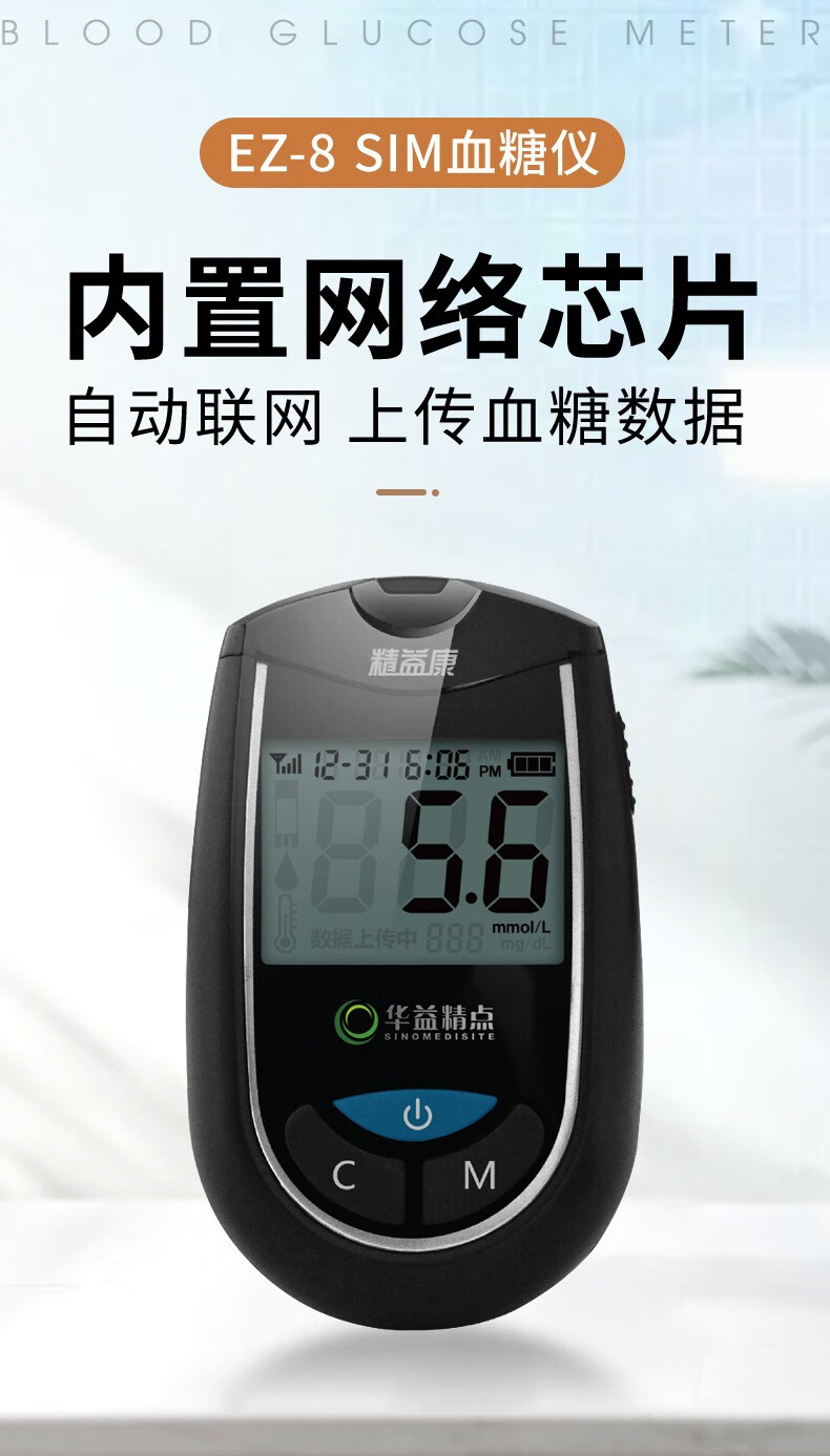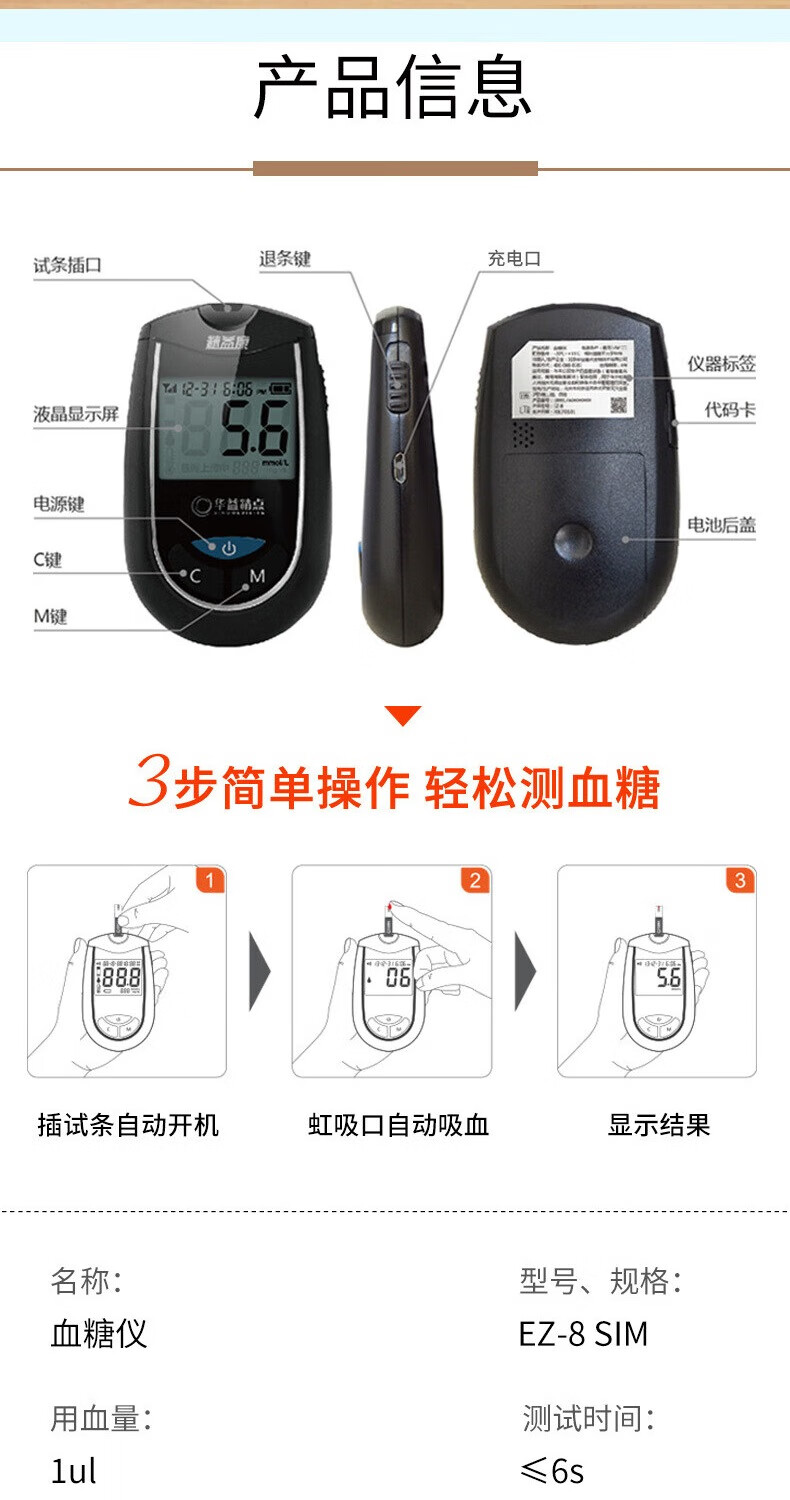 华益精点EZ-8 SIM血糖仪家用医用高精准度糖尿病血糖检测仪免调码测血糖仪 EZ-8 SIM血糖仪+100试条套装