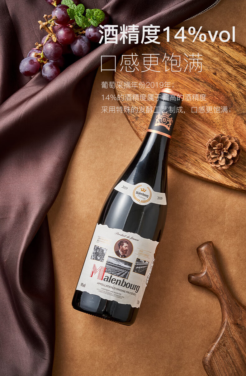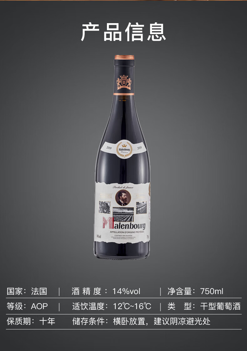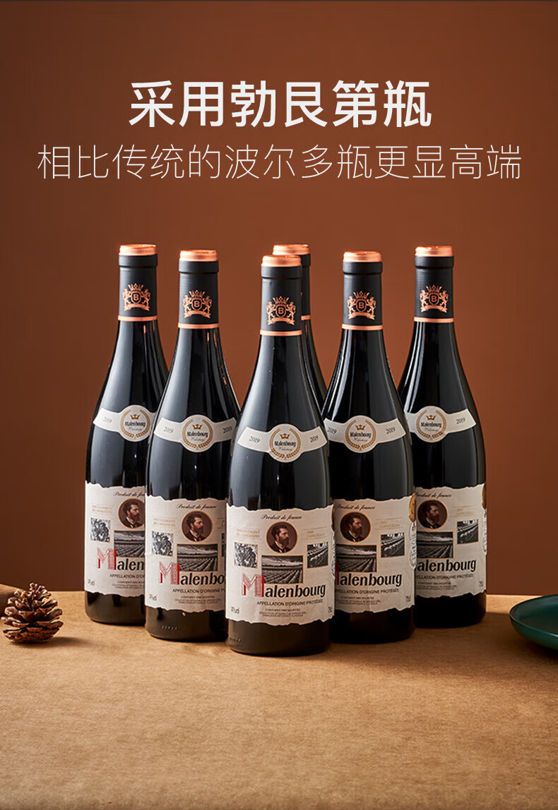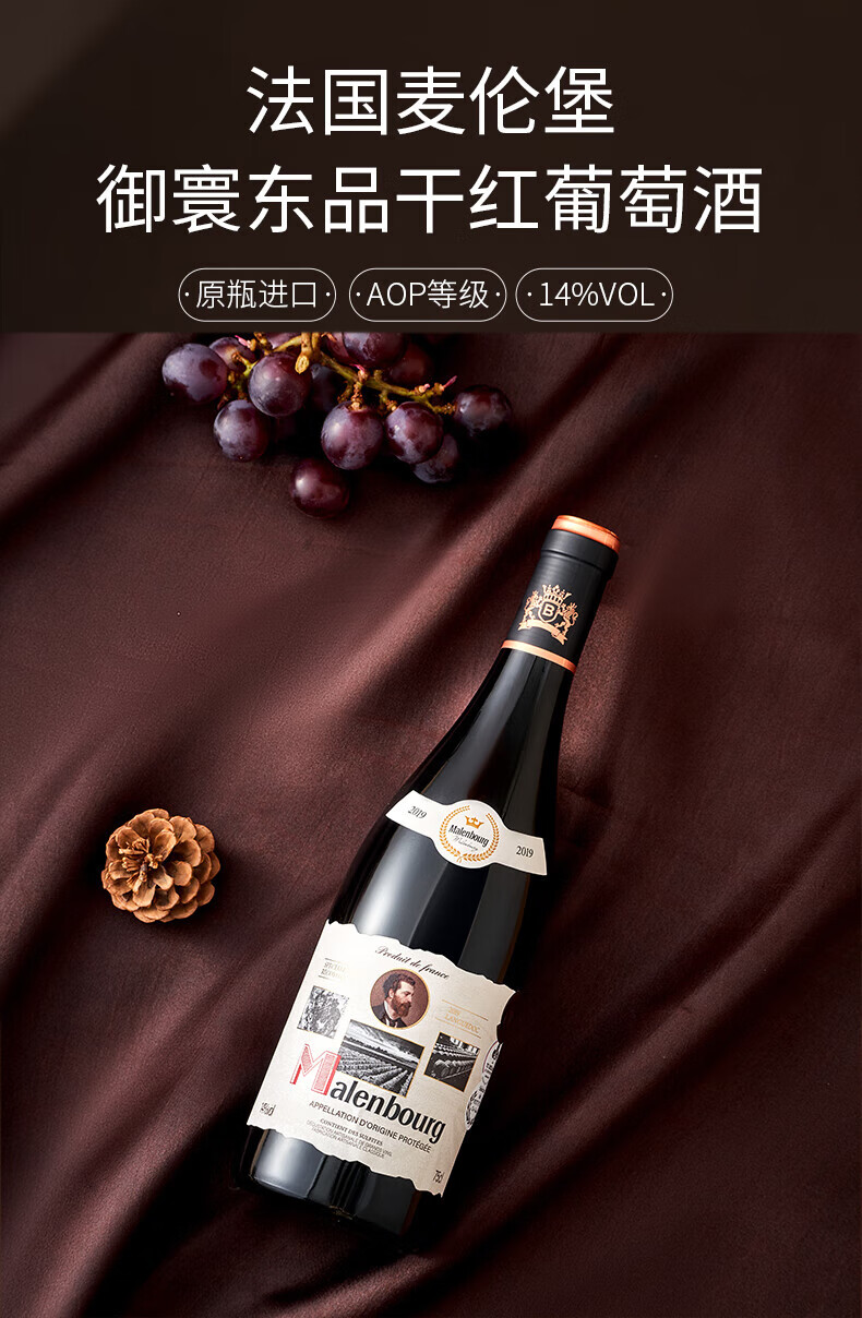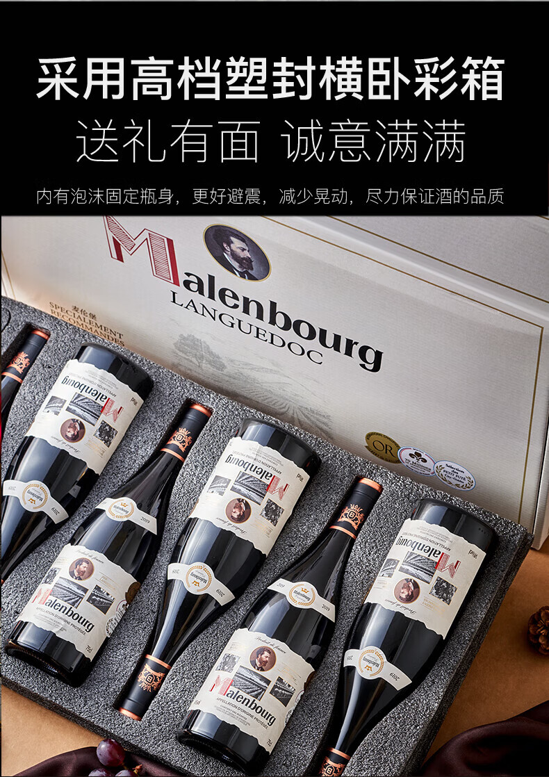 麦伦堡法国红酒14度御寰东品干红葡萄酒AOP级商务送礼横卧整箱750ml*6瓶 整箱6瓶
