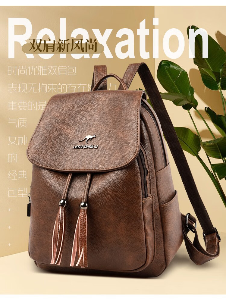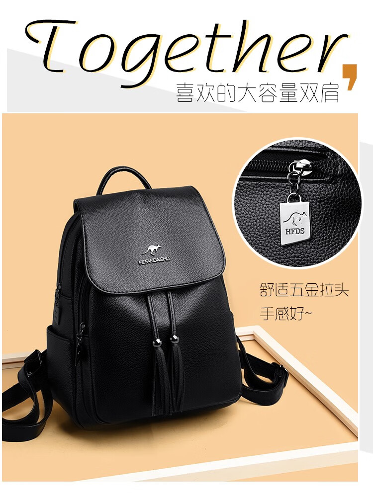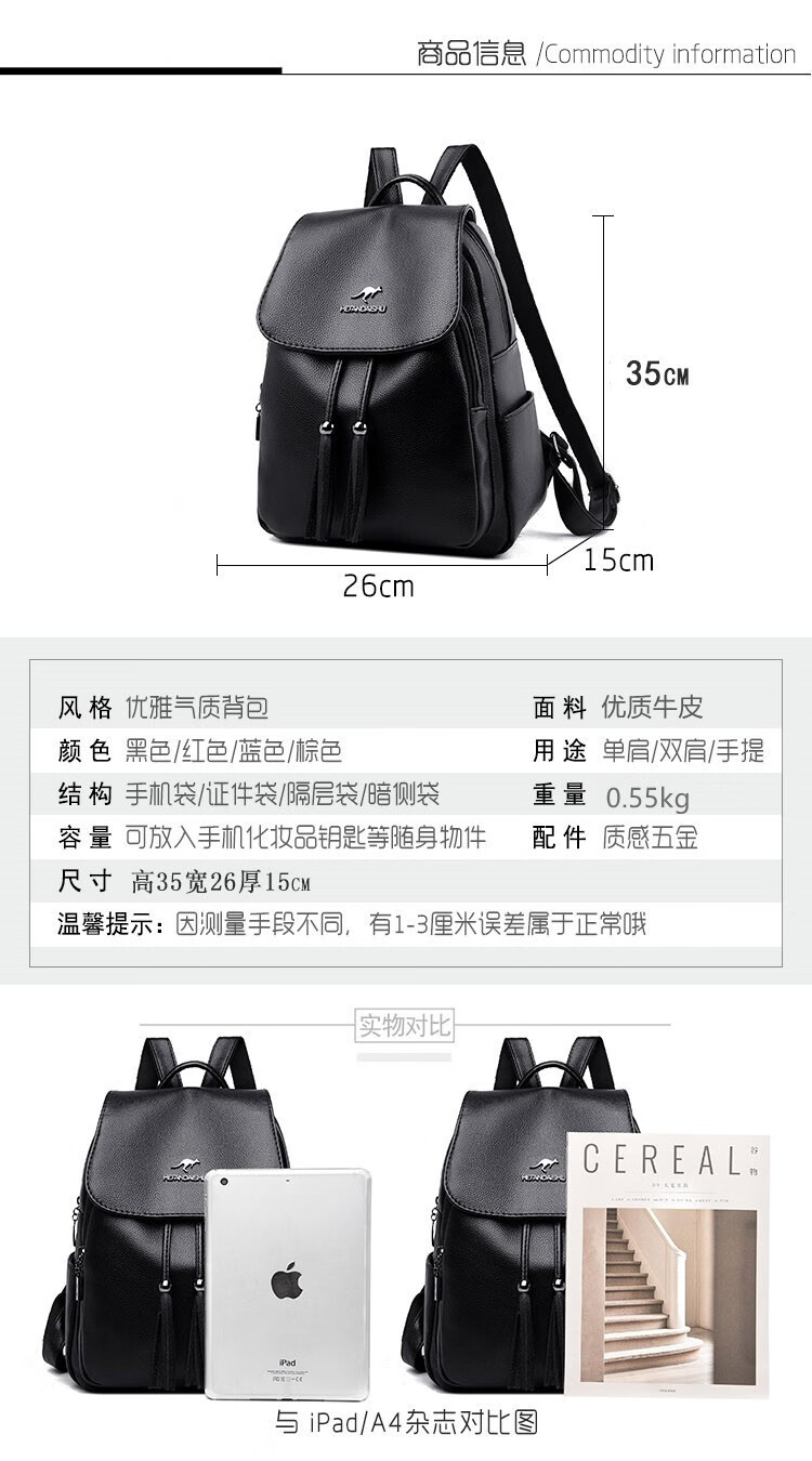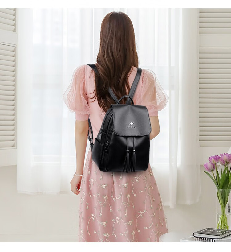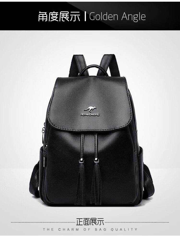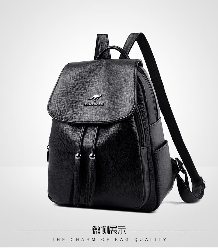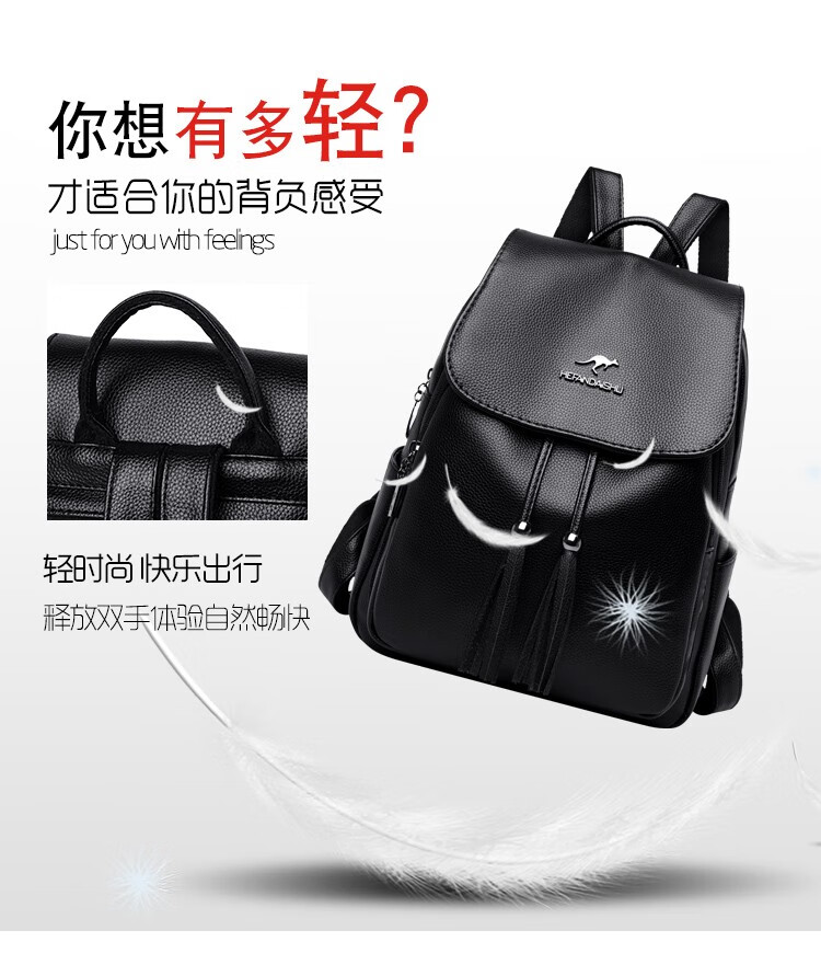 玫瑰袋鼠轻奢品牌真皮旅游双肩包2025七夕牛皮时尚女士百搭背包旅行大容量 黑色【礼盒装】