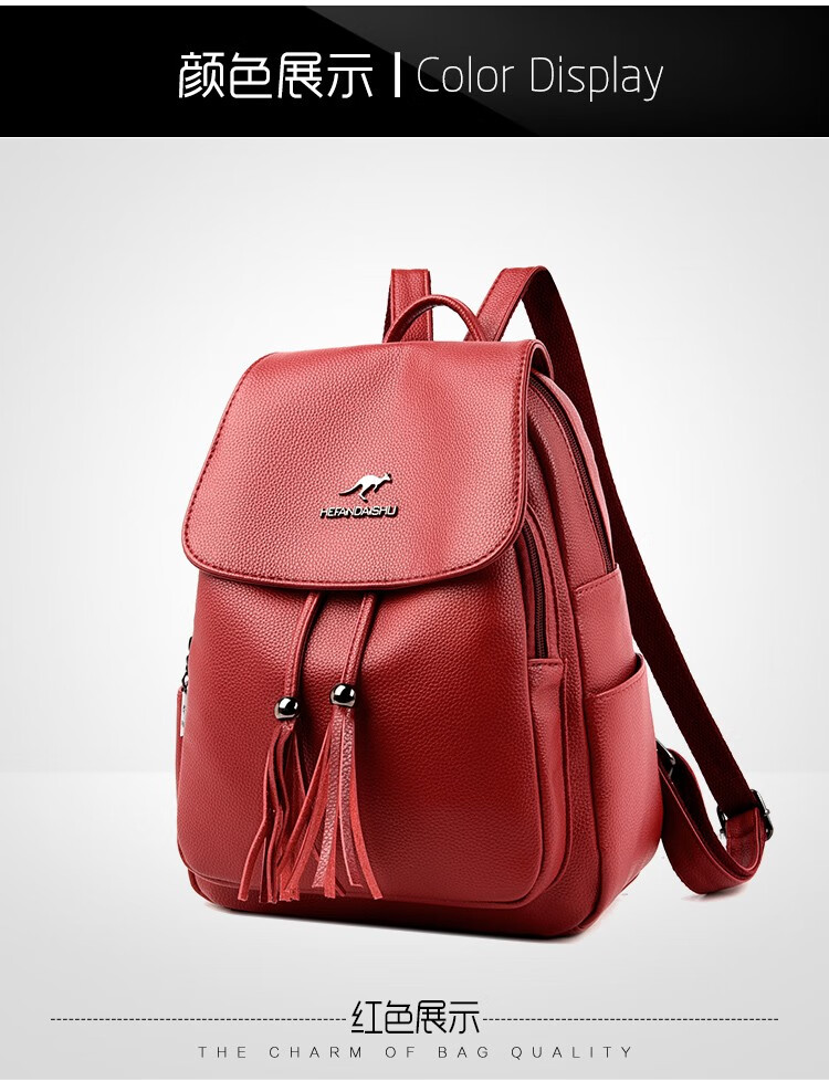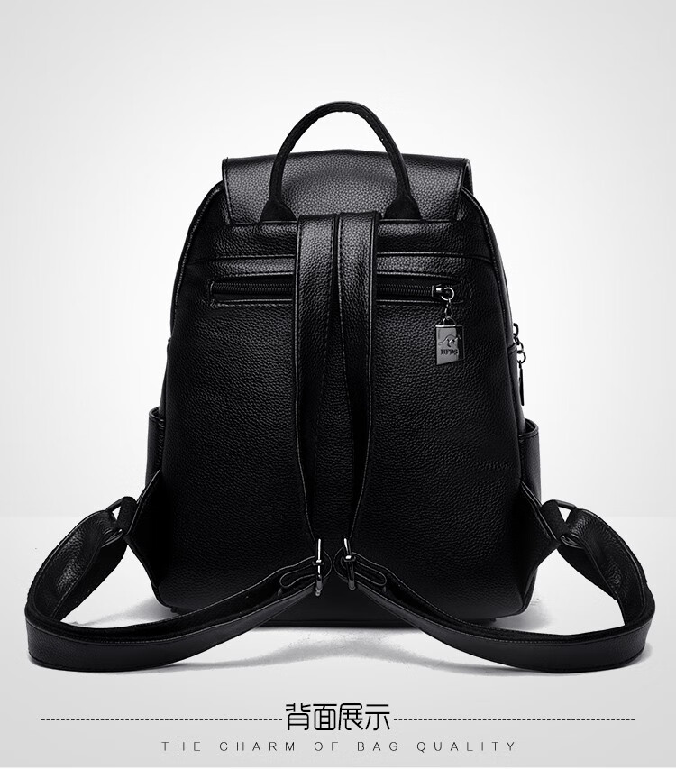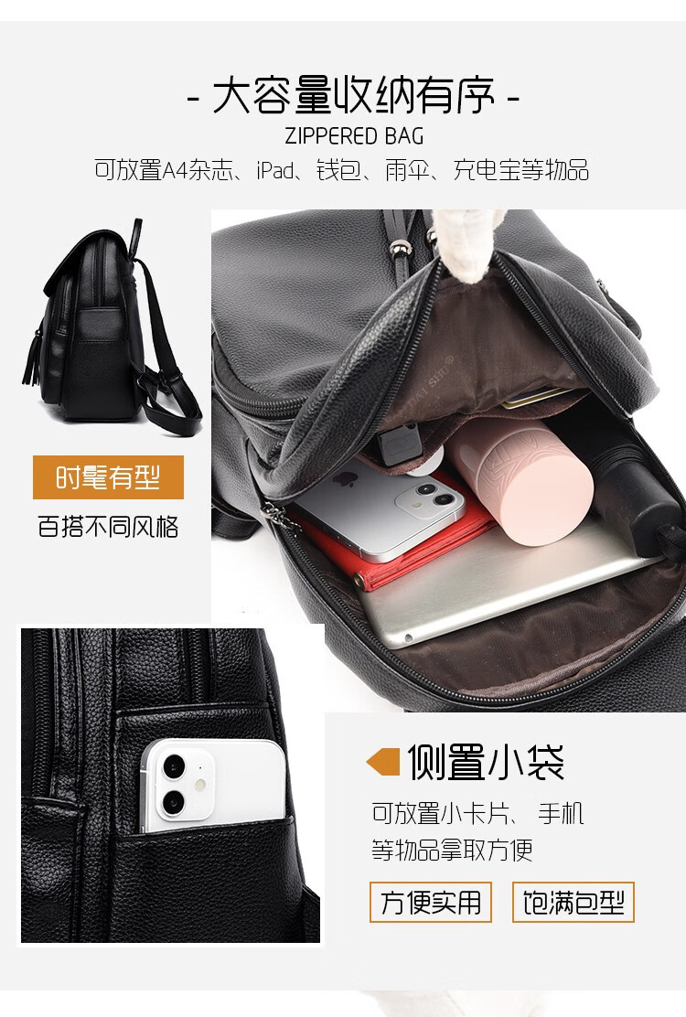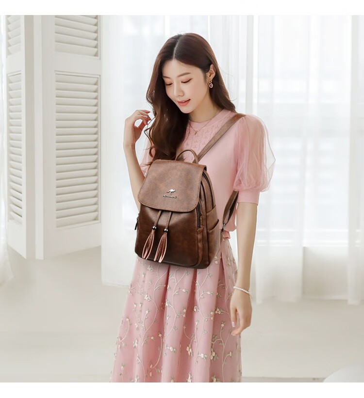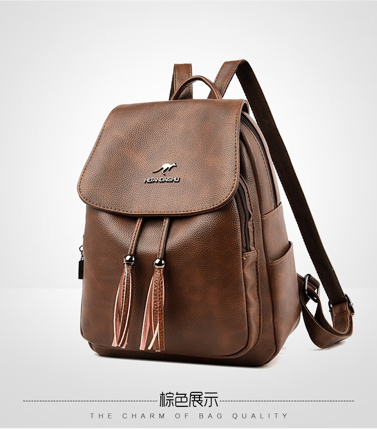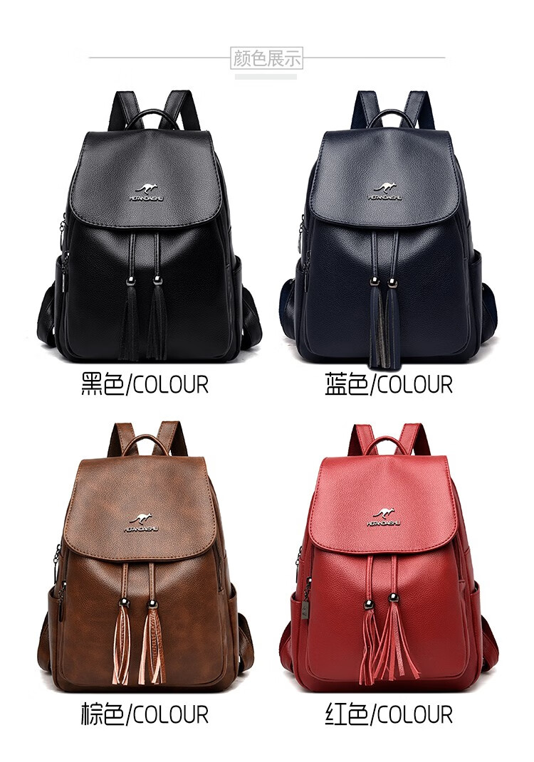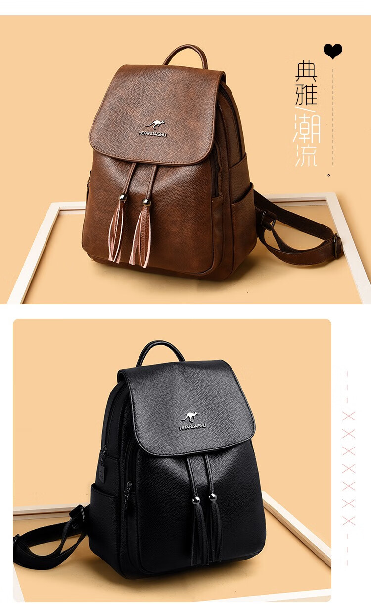 玫瑰袋鼠轻奢品牌真皮旅游双肩包2025七夕牛皮时尚女士百搭背包旅行大容量 黑色【礼盒装】