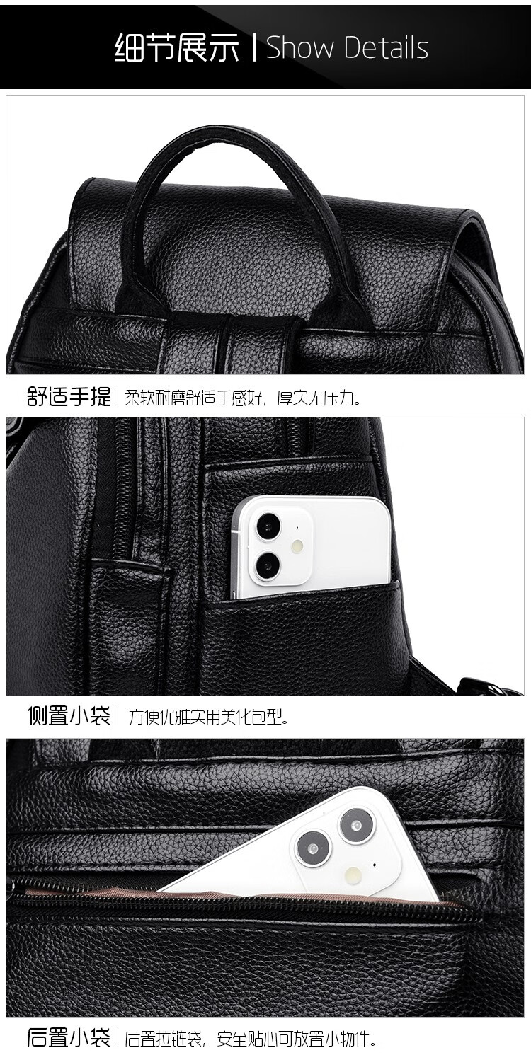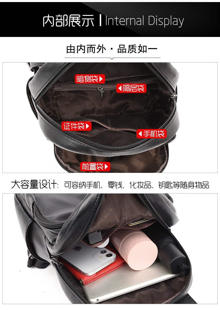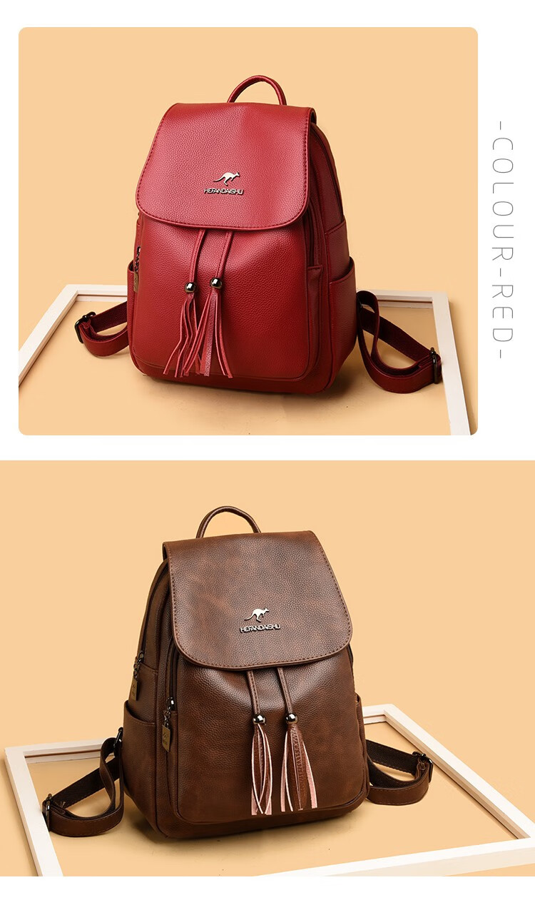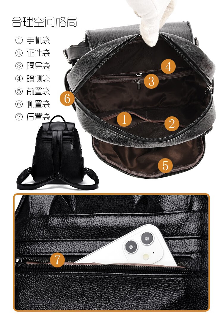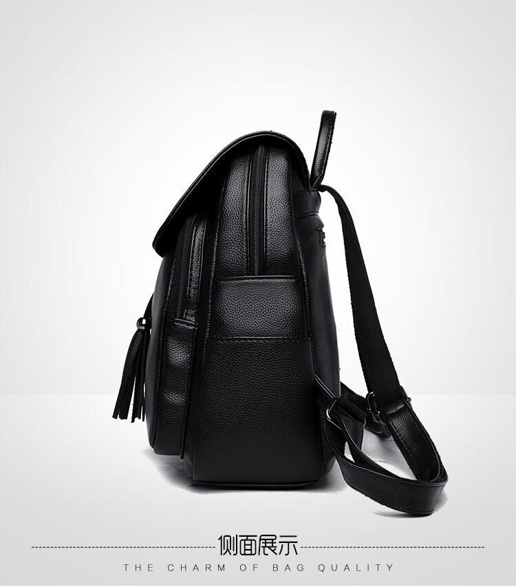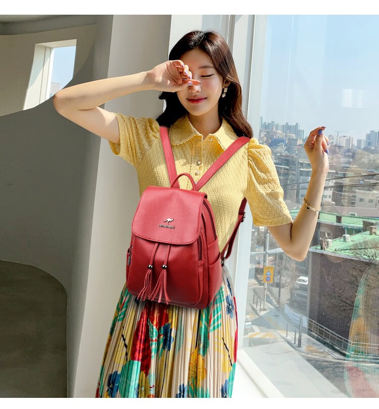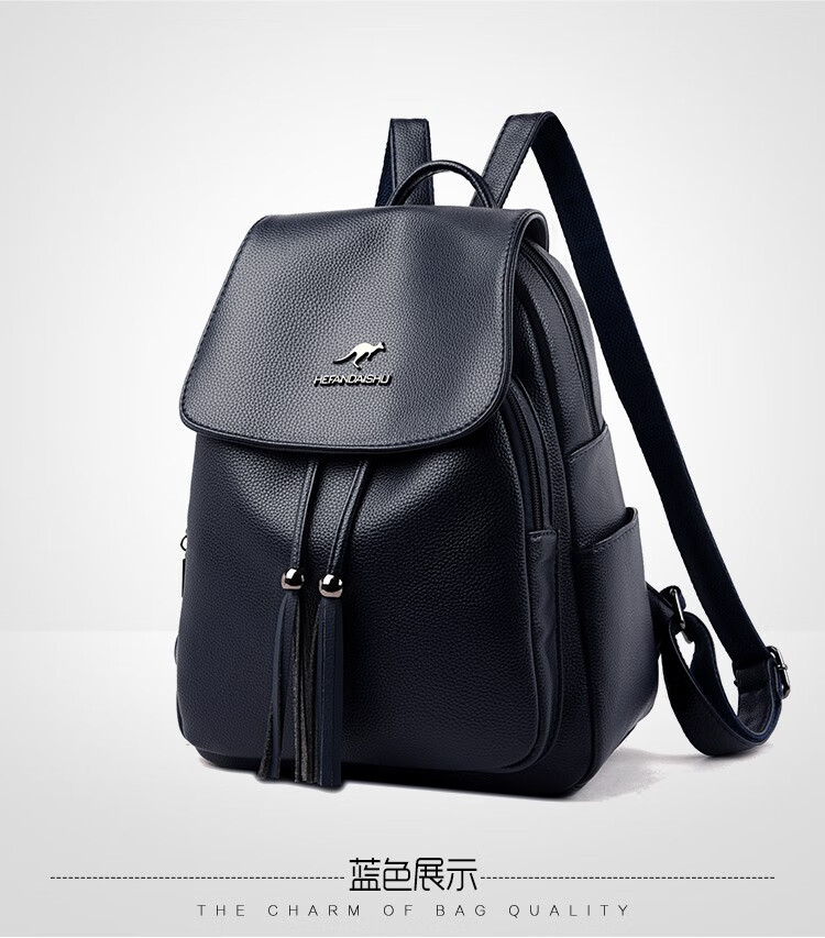 玫瑰袋鼠轻奢品牌真皮旅游双肩包2025七夕牛皮时尚女士百搭背包旅行大容量 黑色【礼盒装】