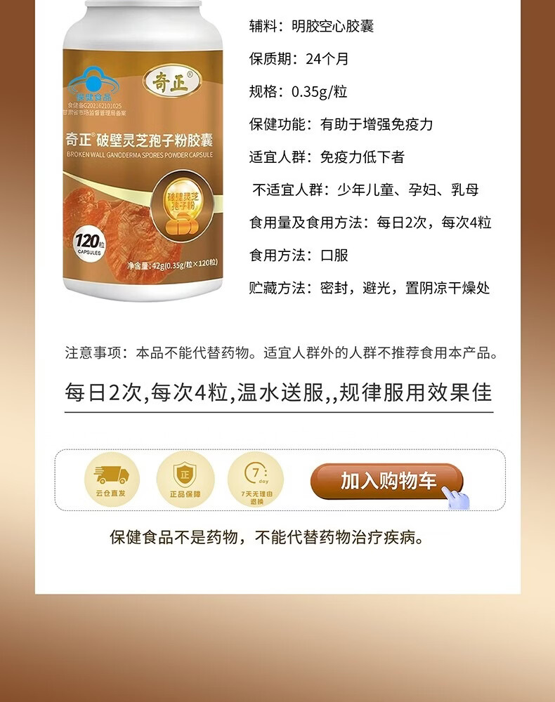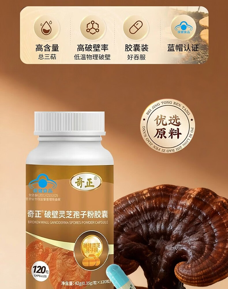 奇正破壁灵芝孢子粉胶囊有助于增强免疫力中老年人营养品送长辈 1瓶装(约15天,适合初次体验)