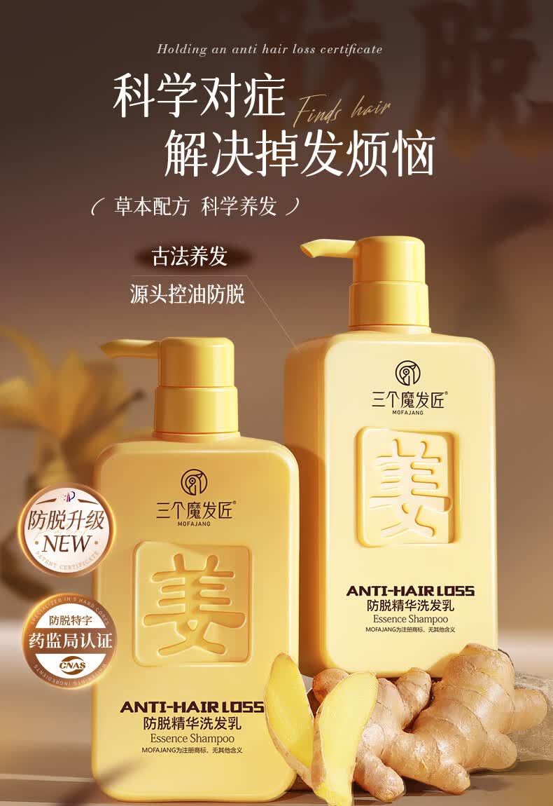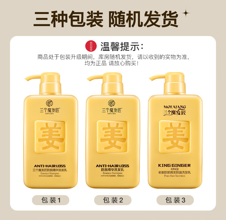 三个魔发匠防脱生姜洗发水500g男士侧柏叶去屑止痒育固发育发洗发露头膏第1 防脱 500ml*1瓶 生姜洗发水