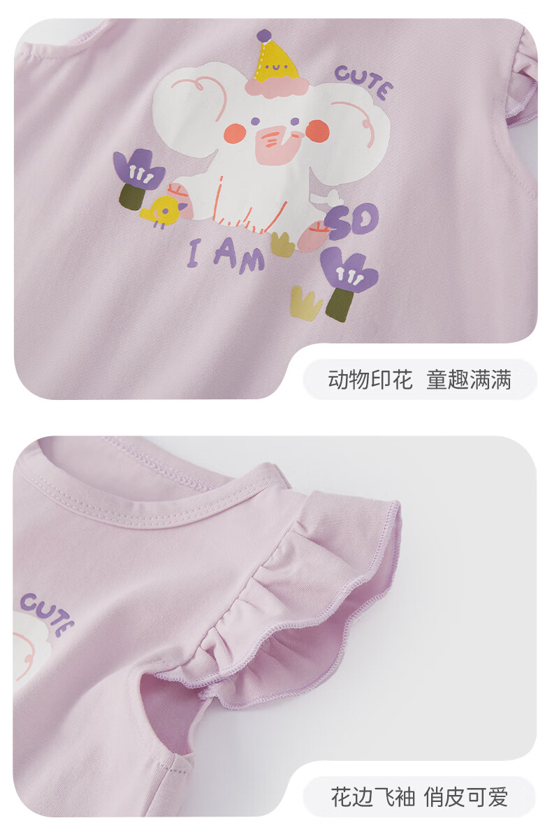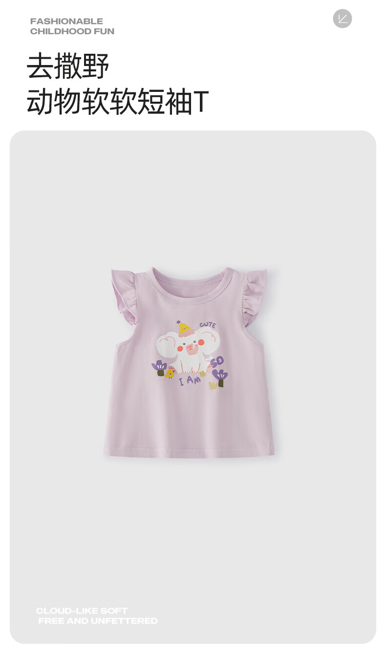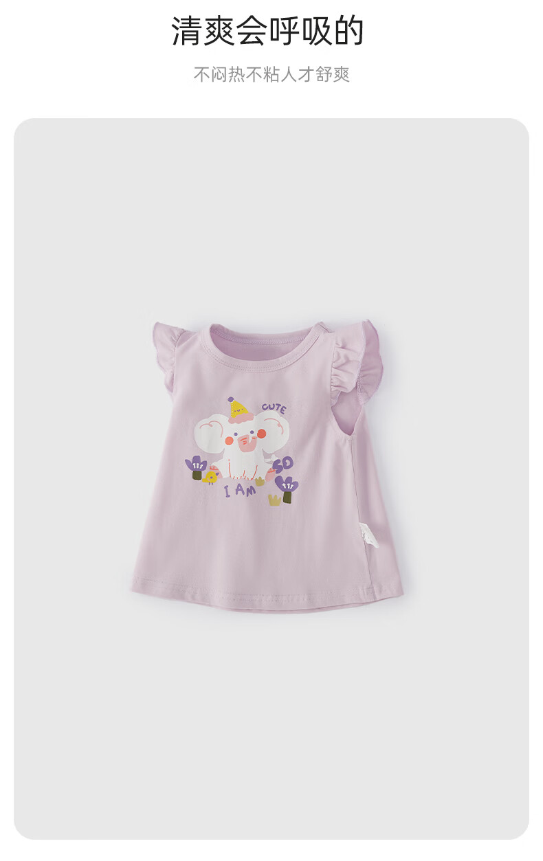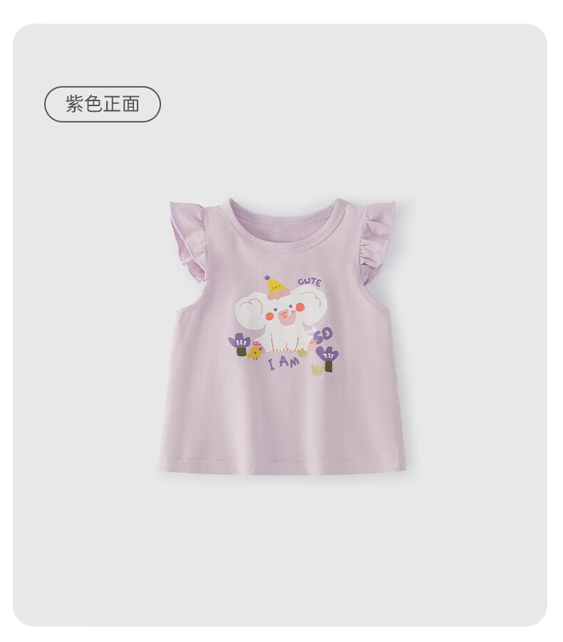 JELLYBABY26年夏季女童飞飞袖t恤小童上衣宝宝无袖夏装儿童衣服女孩 紫色 100 CM