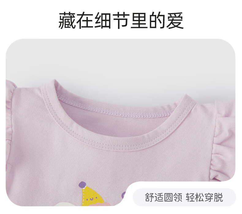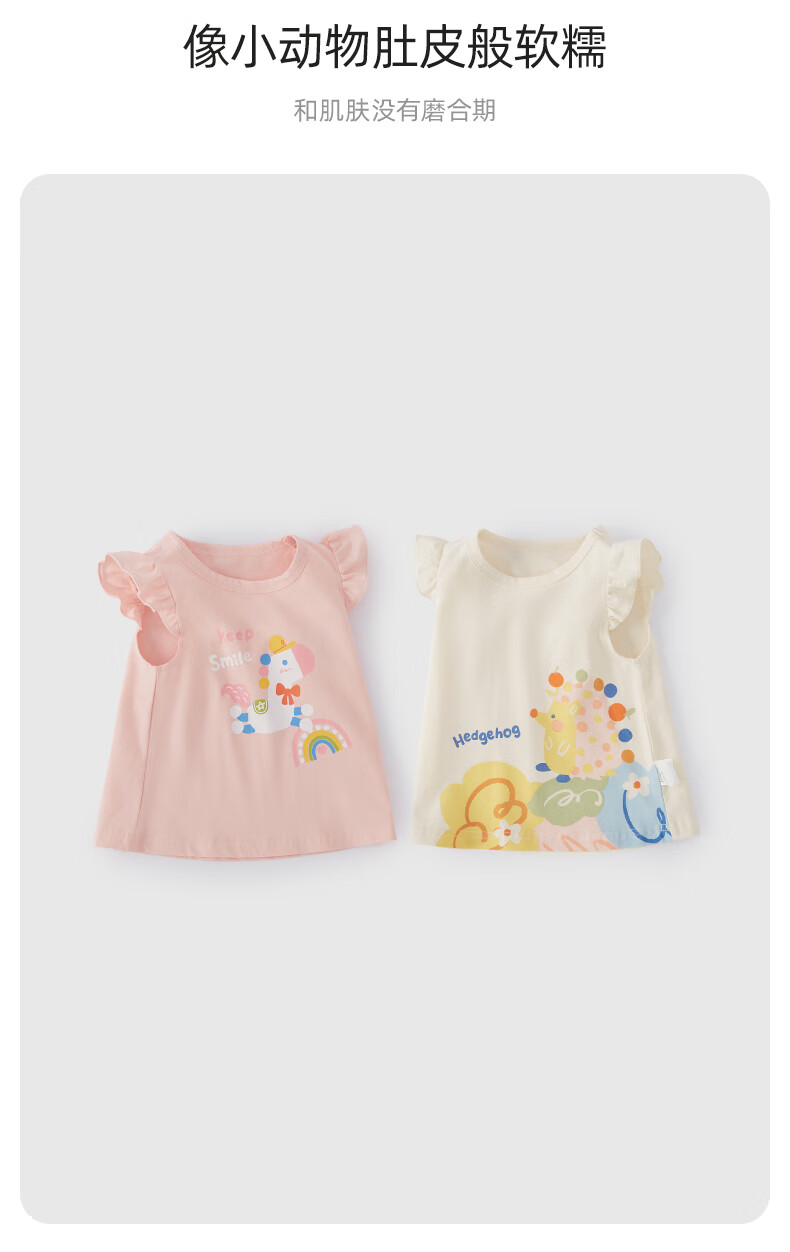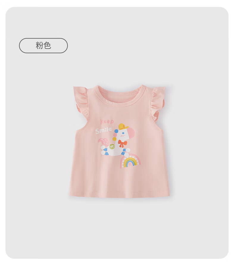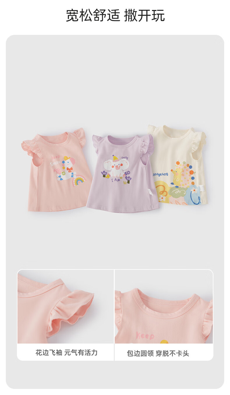 JELLYBABY26年夏季女童飞飞袖t恤小童上衣宝宝无袖夏装儿童衣服女孩 紫色 100 CM