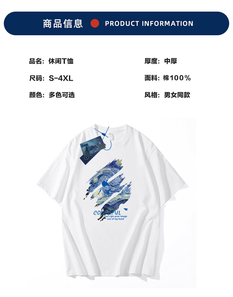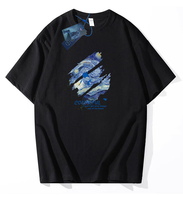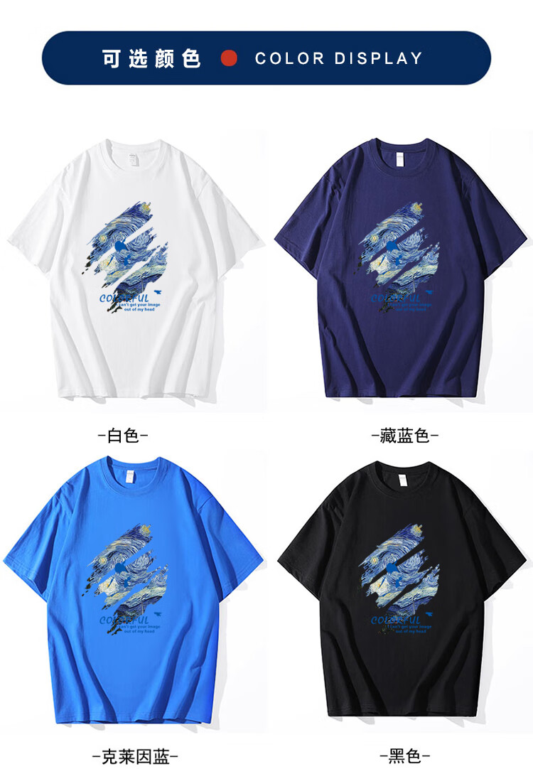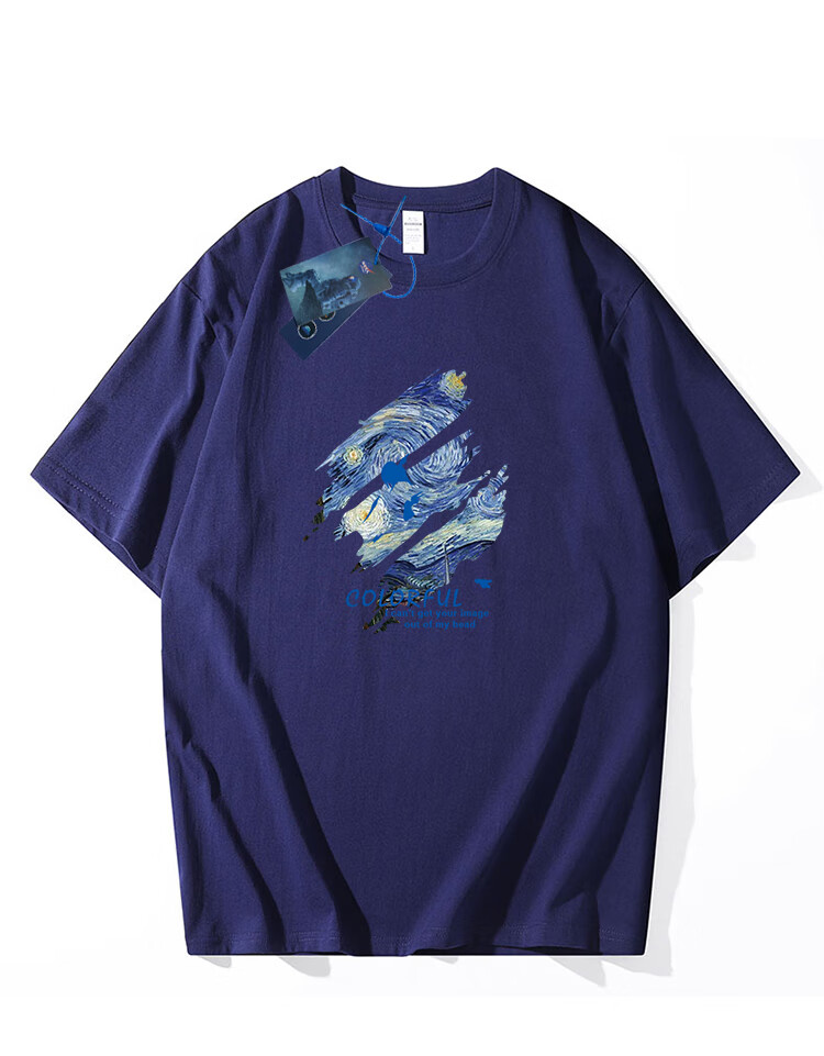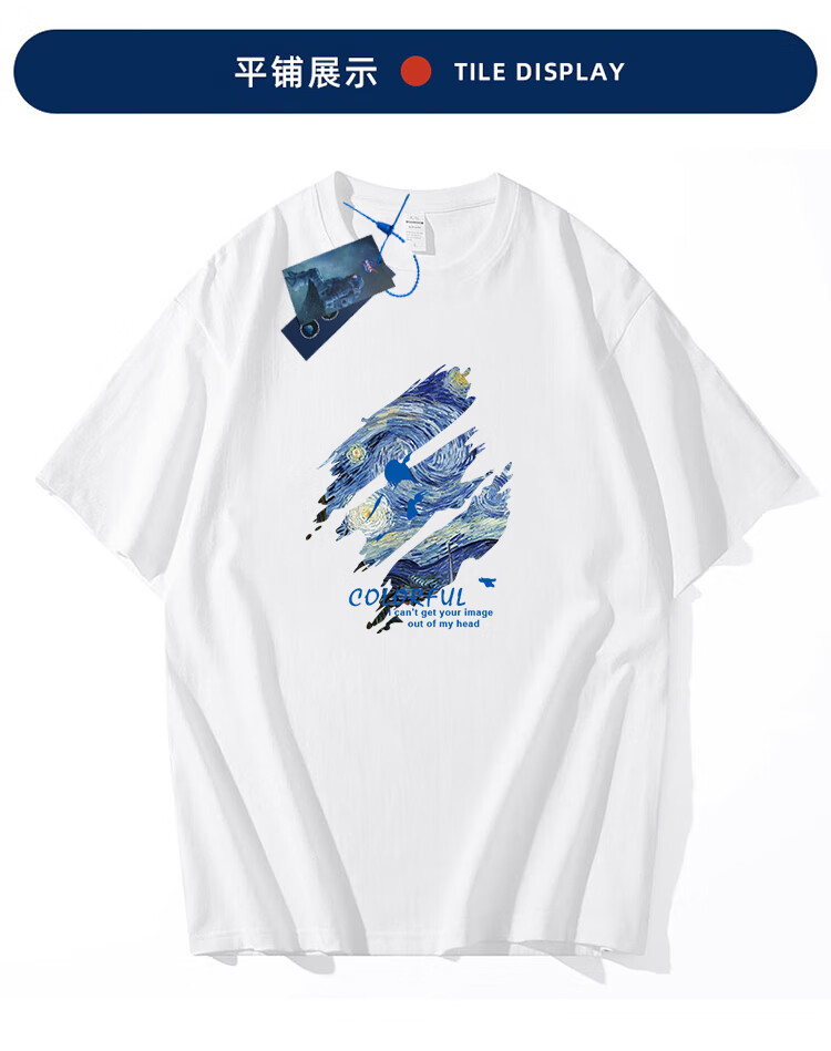 NASAR-FARM重磅短袖t恤男女落肩款纯棉梵高星空宽松ins潮t恤情侣半袖上衣服 DLJ星空-白色(偏大一码) M(100-120斤)