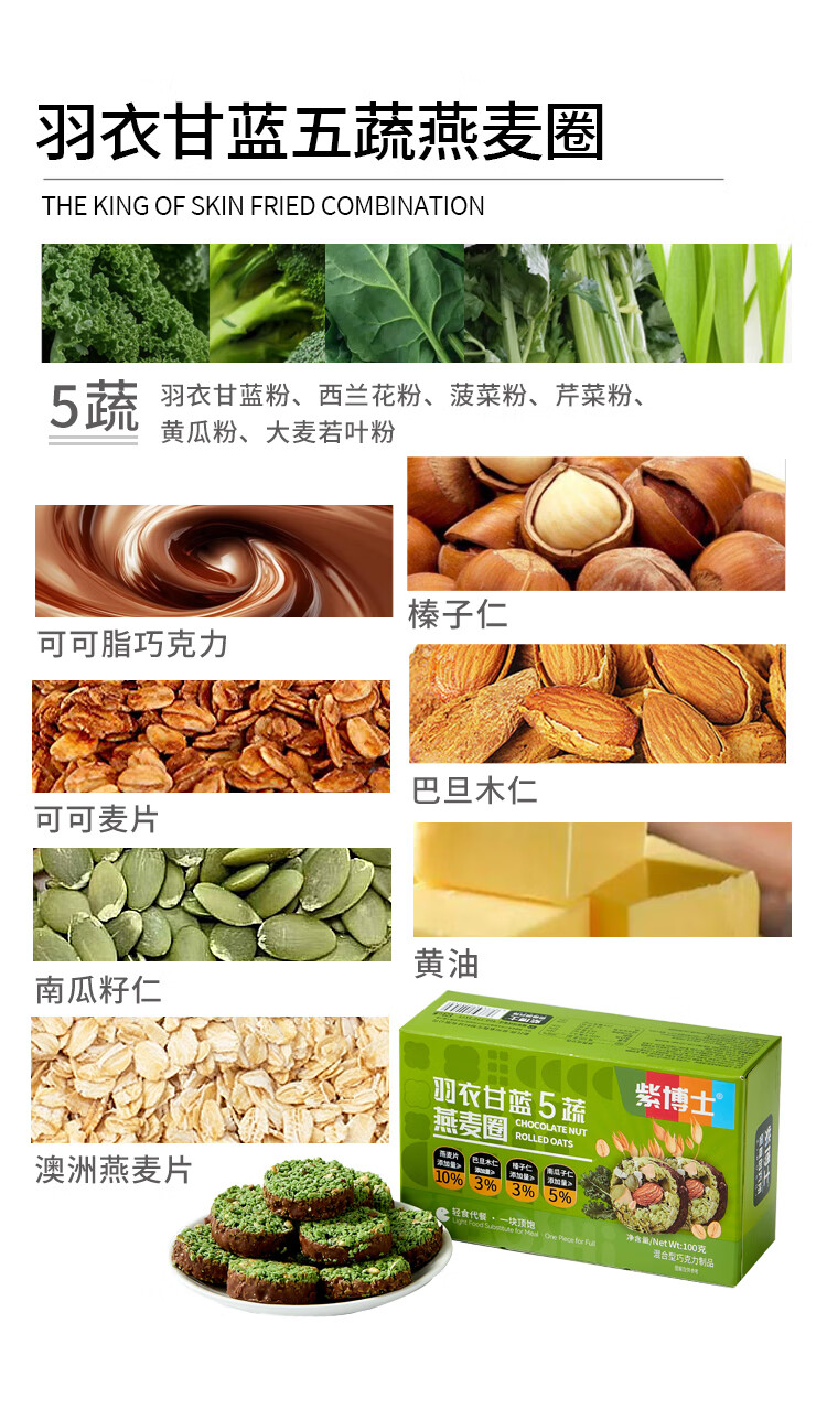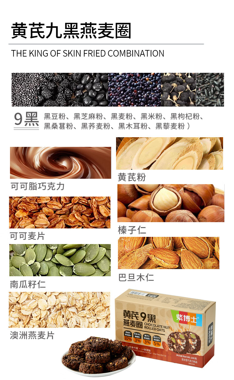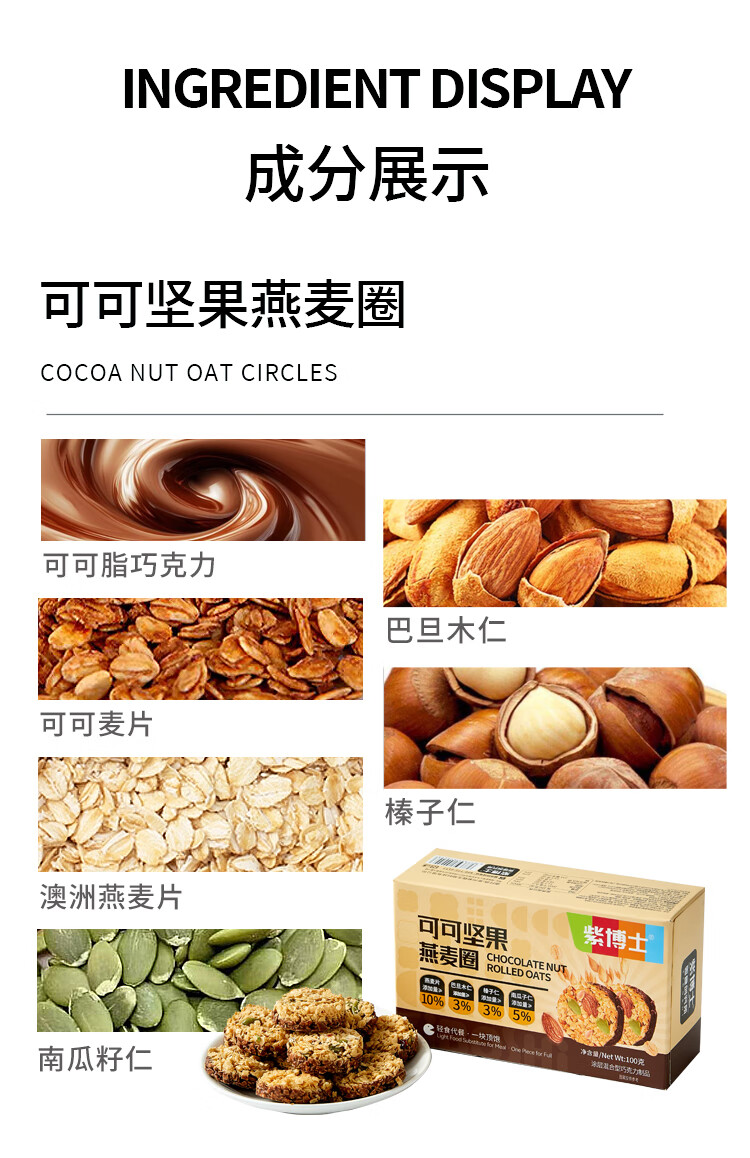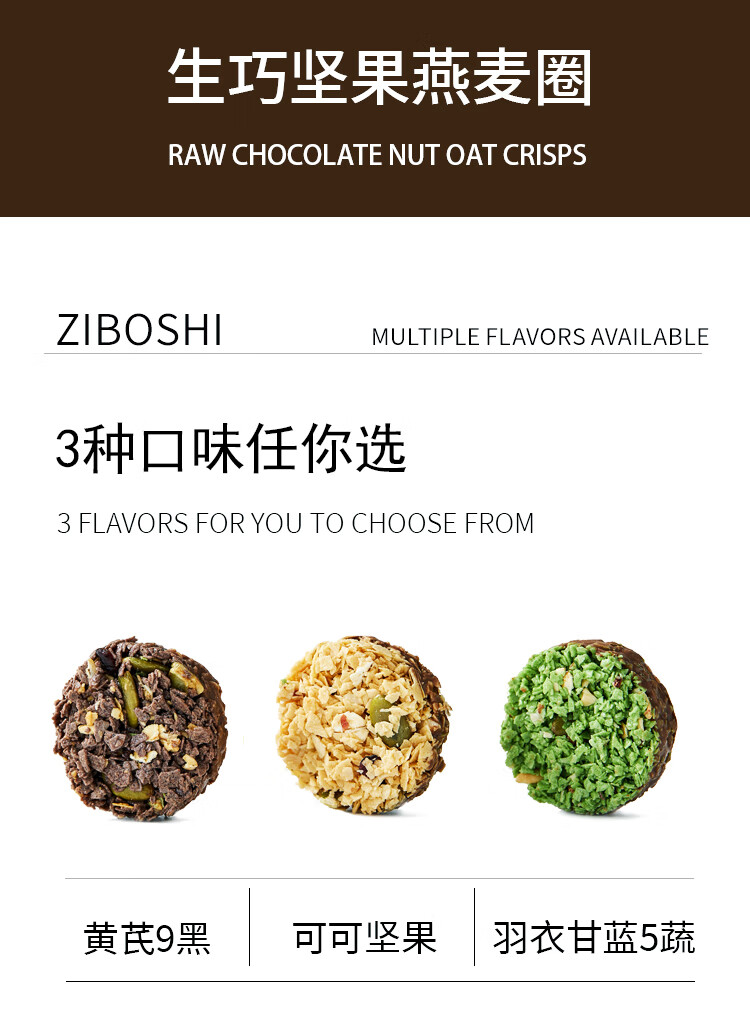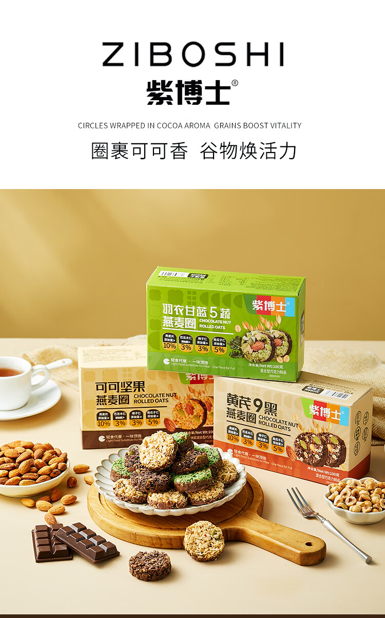 紫博士生巧燕麦坚果脆非油炸轻食代餐饱腹感下午茶零食3口味盒装100g 可可坚果原味+羽衣甘蓝五蔬+黄芪9黑(3口味各一盒)
