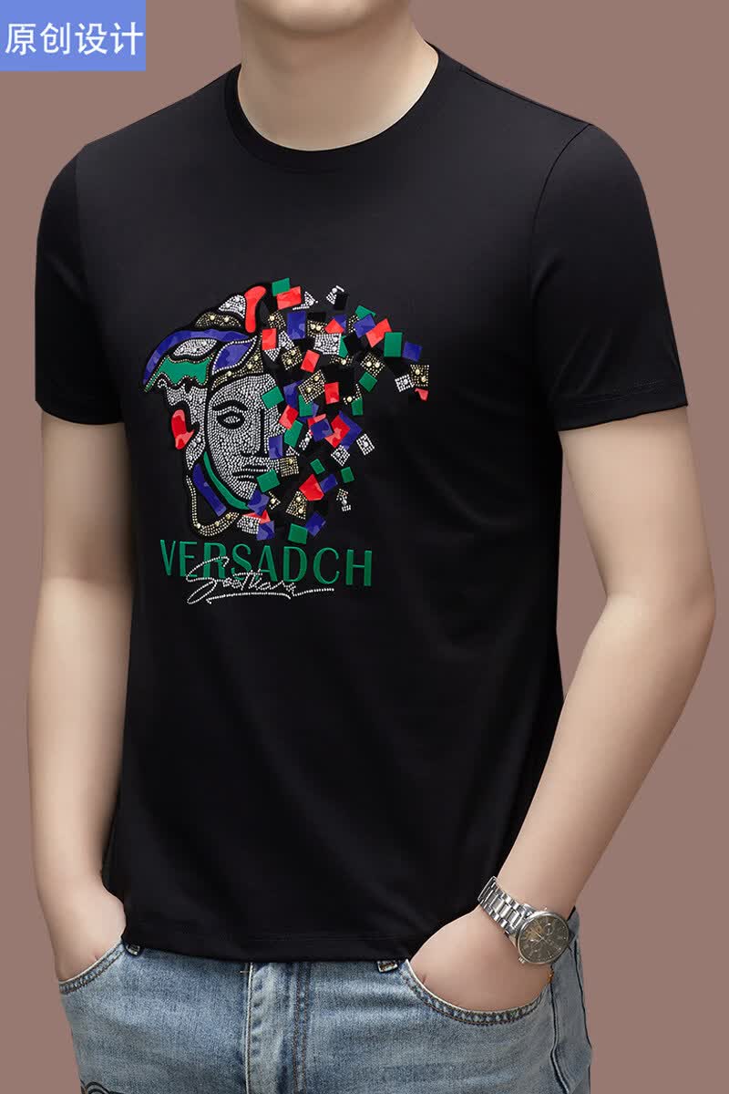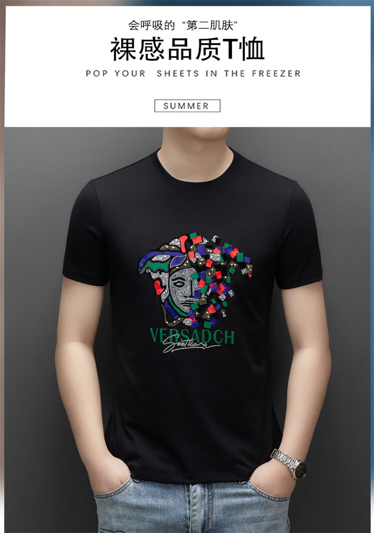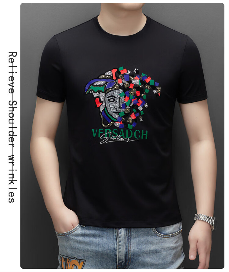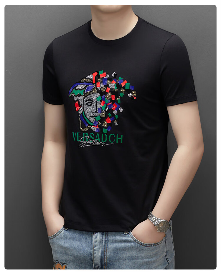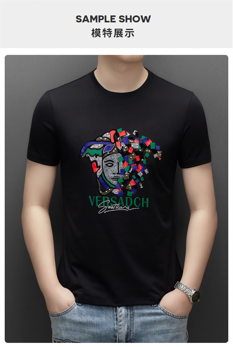 阿玛尼(ARMANI)意大利正品品牌圆领短袖t恤男薄款夏季中年时尚印花半袖体恤上衣 国际一线品牌黑色 3XL 185建议170斤-185斤