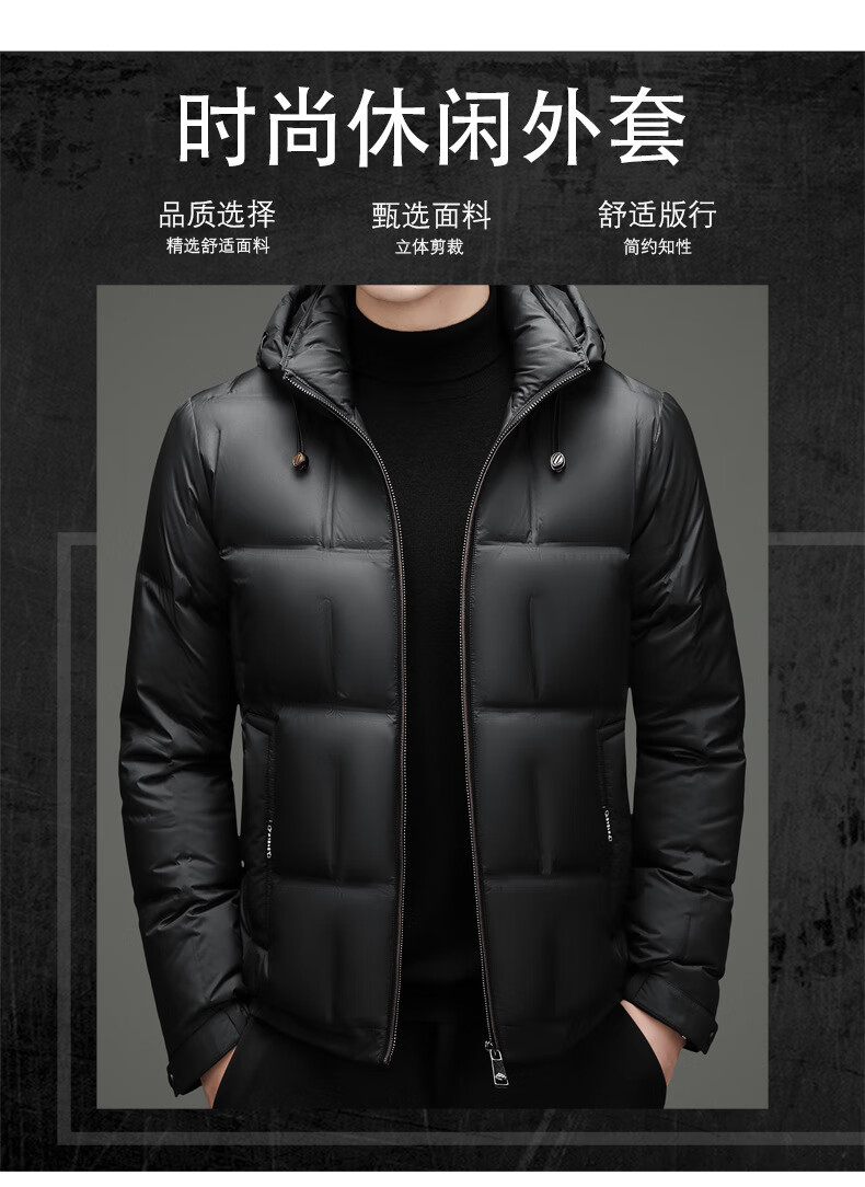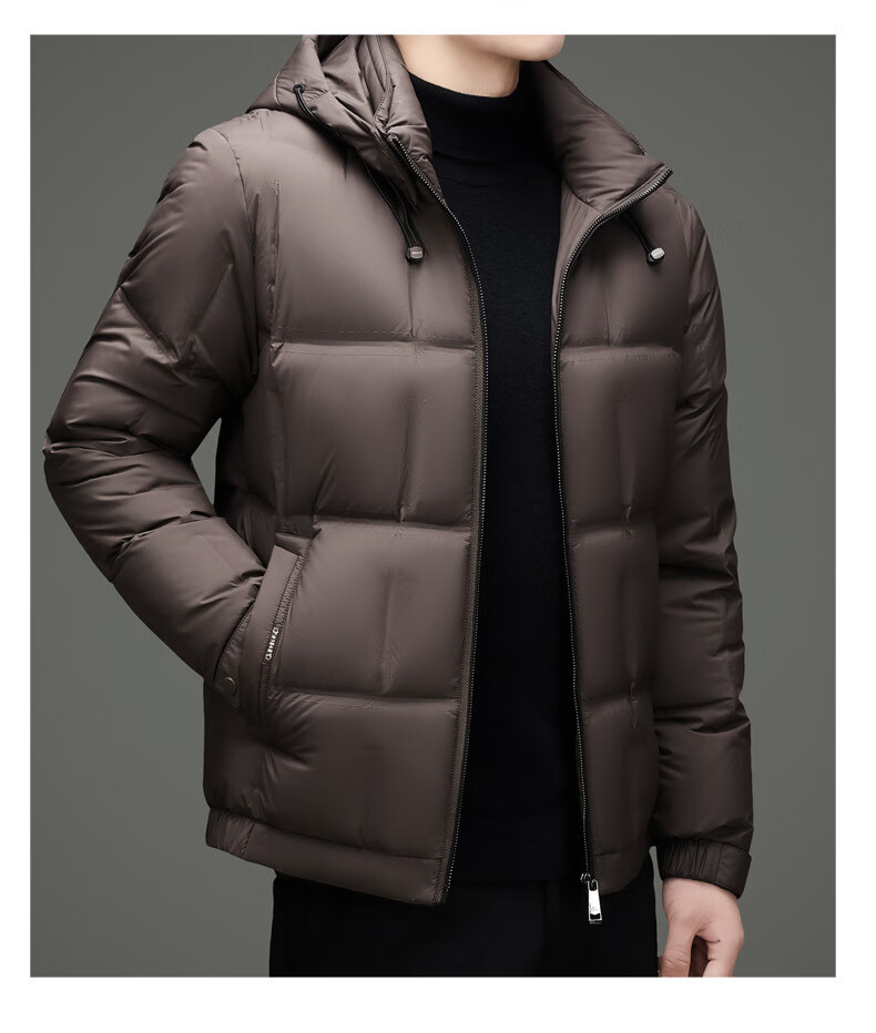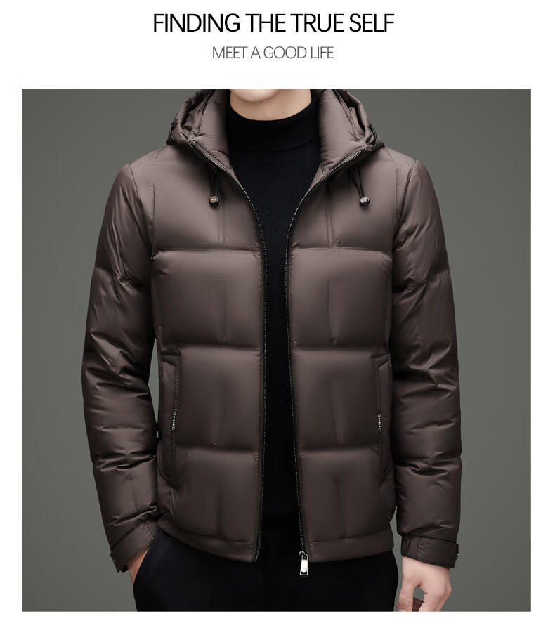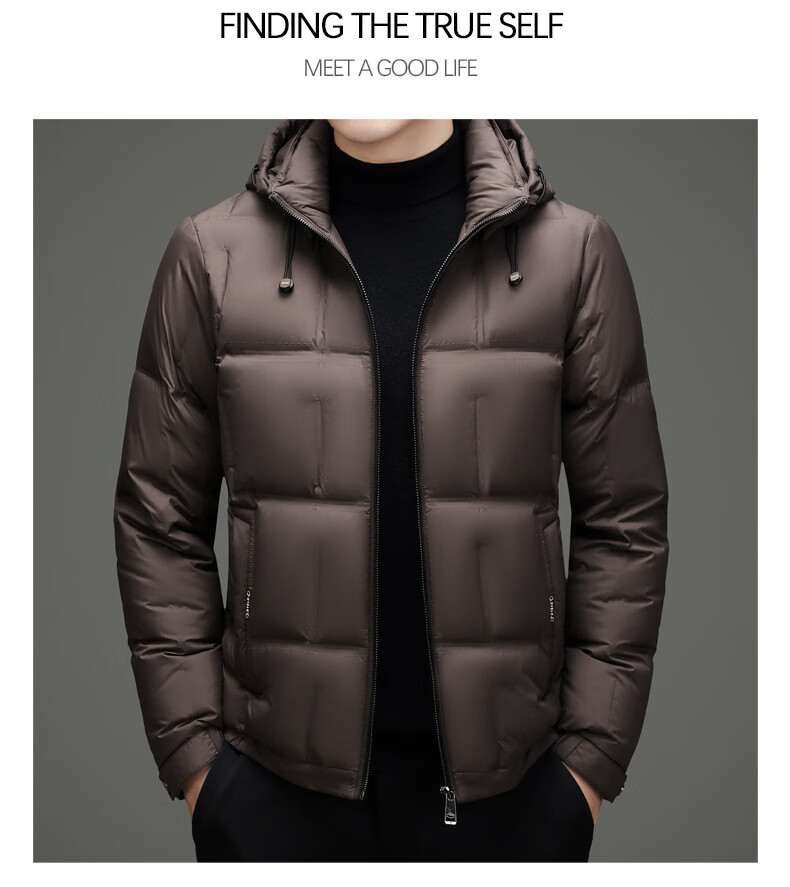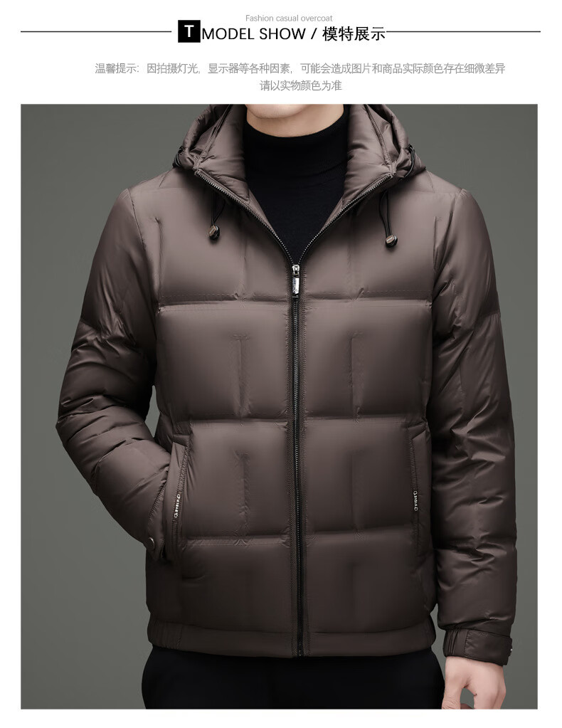 GOLDLION G+金利来男士可脱卸帽新款羽绒服冬季连帽羽绒防寒爸爸装简约休闲装 咖色 4XL 195