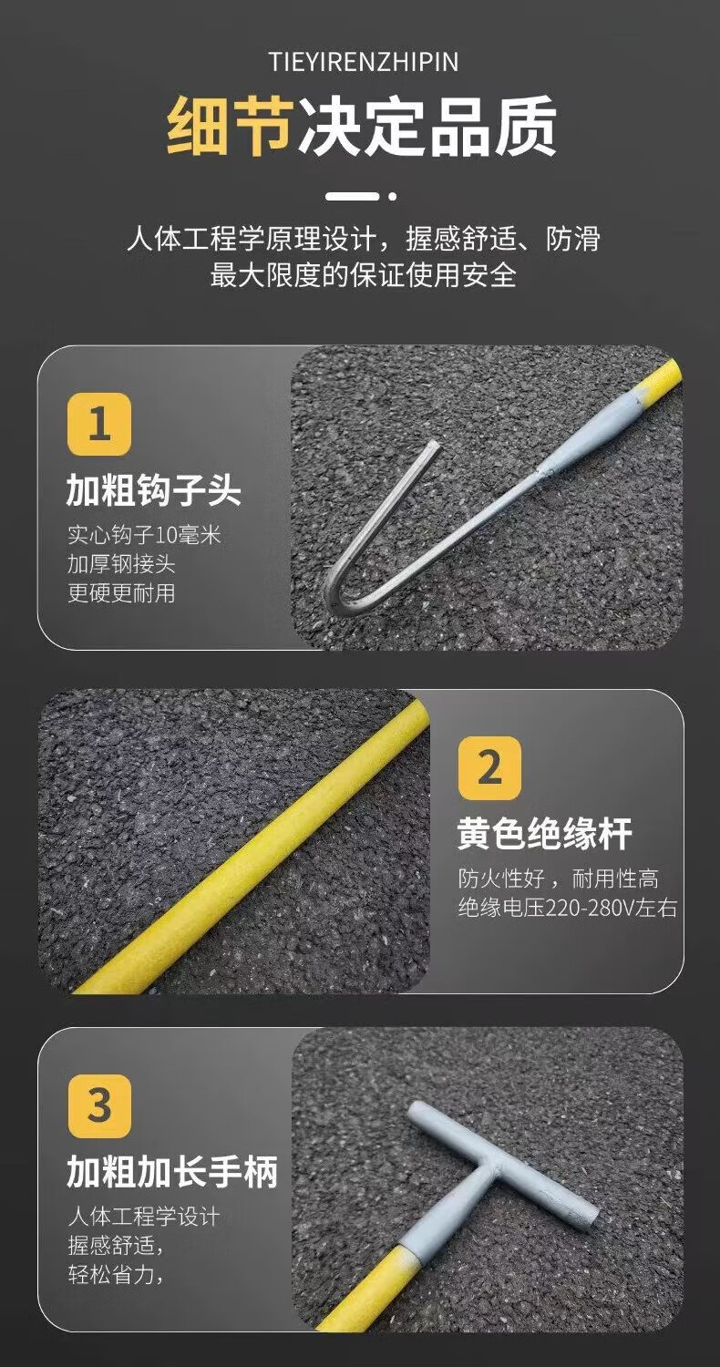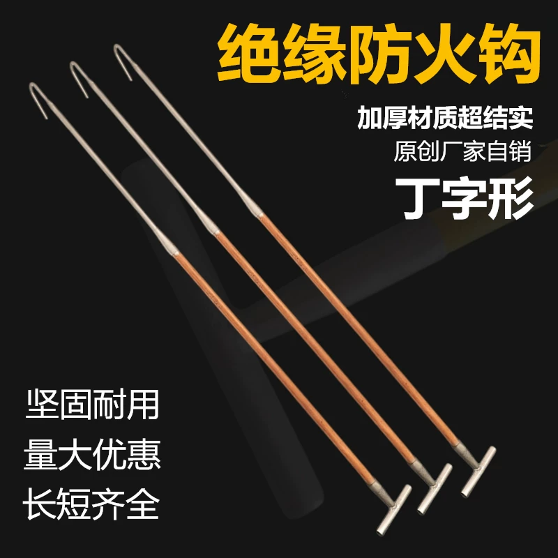 防火绝缘火钩电动车拖拽钩电动车棚物业备品消防长钩应急救援钩 木柄长3米(加厚耐火绝缘杆)