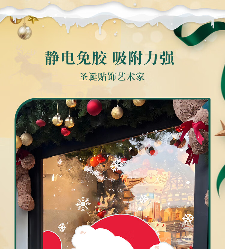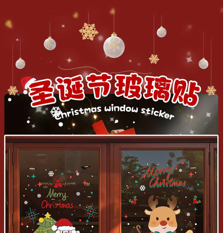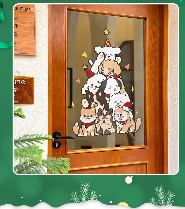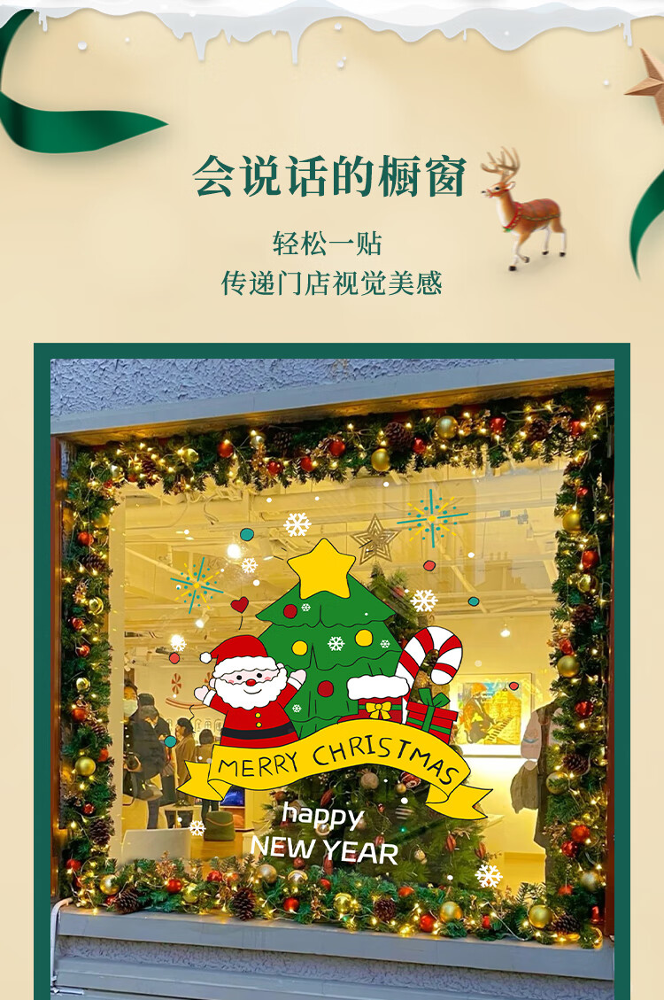 赛瓦凯圣诞树装饰窗贴静电贴商场橱窗圣诞节场景布置装扮窗花玻璃门贴纸 彩虹星星圣诞树【静电免胶/双面喷绘/双面同色】 28CM×35CM
