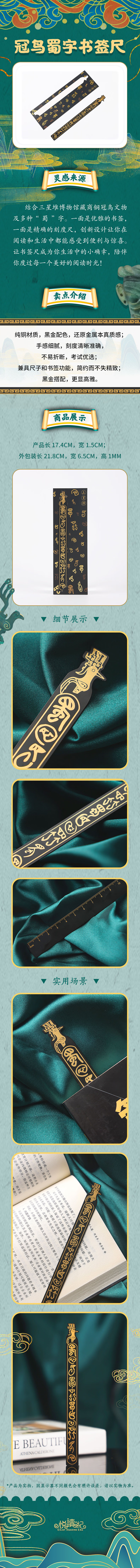 三星堆博物馆文创冠鸟蜀字书签尺直尺学生文具不锈钢尺子复古中国风黄铜书签送同学伴手送礼物礼品旅游纪念品 冠鸟蜀字黄铜书签尺