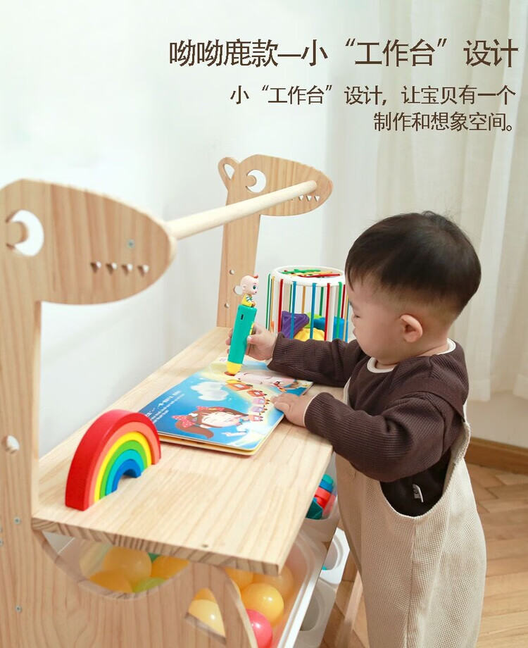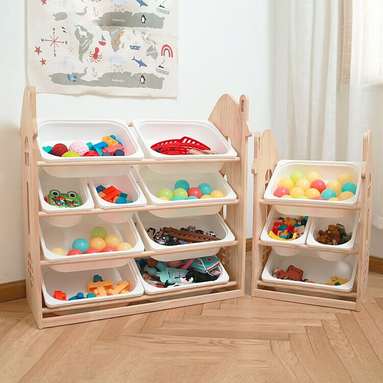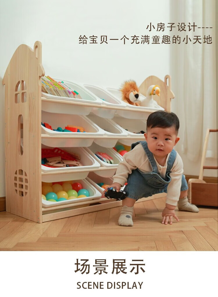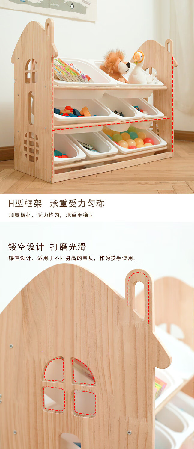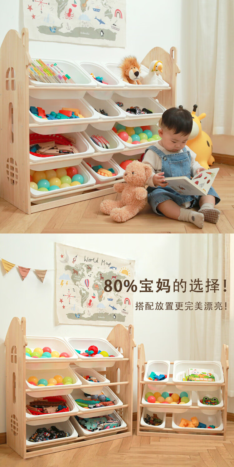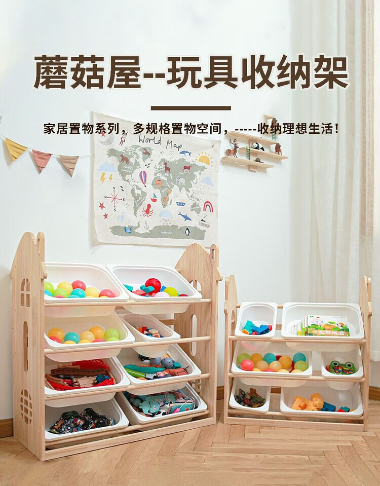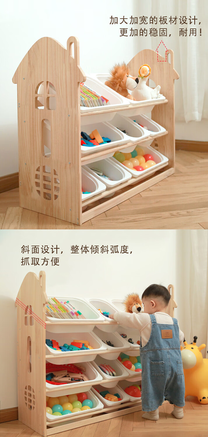 迈途森儿童房玩具收纳架实木家用整理柜宝宝绘本架多层储物柜抽屉式书架 蘑菇房子三层45*39*70cm