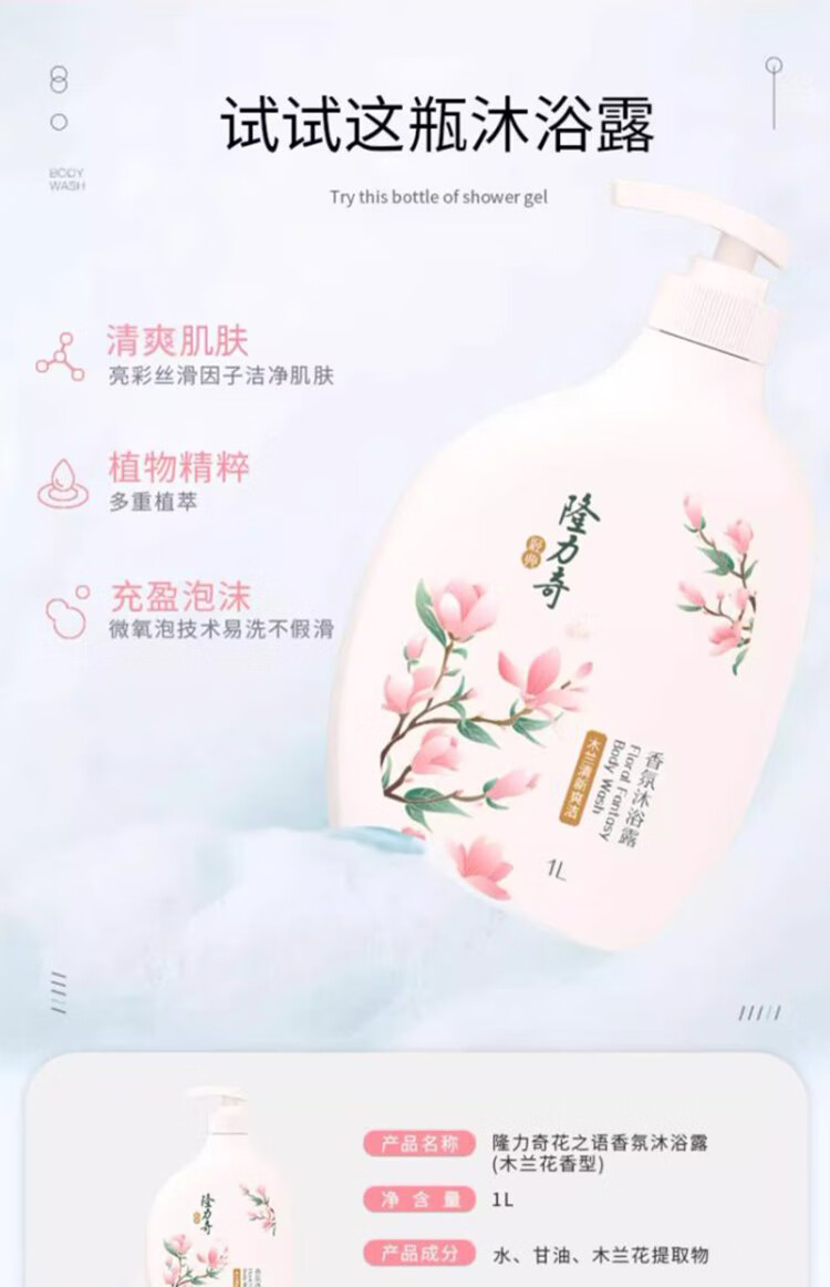 隆力奇香氛沐浴露1L清新留香植物精粹洗澡液沐浴乳男女通用家庭装大容量 沐浴露1L-木兰花
