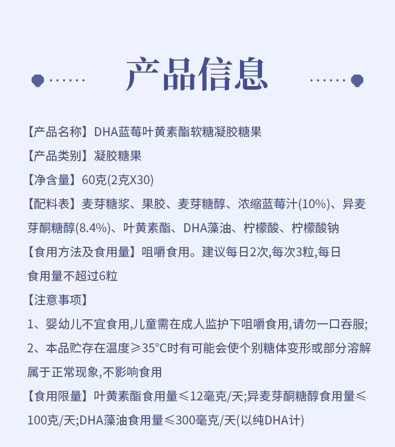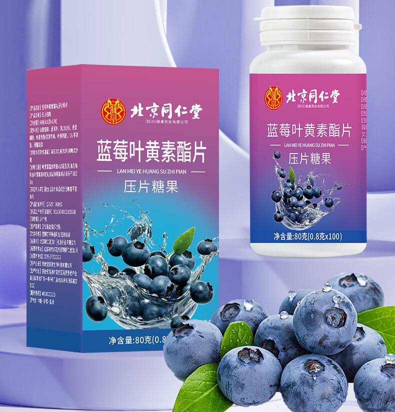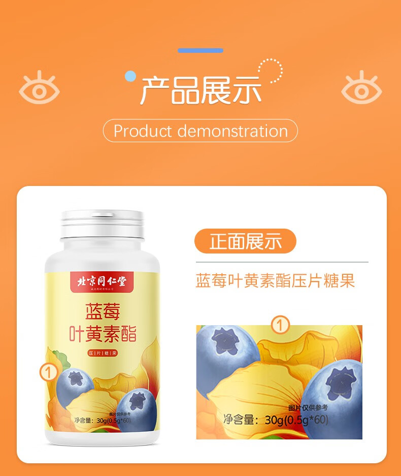 朕皇北京同仁堂蓝莓叶黄素酯软糖成人上班族全家适用咀嚼片 蓝莓叶黄素酯软糖60g*5瓶