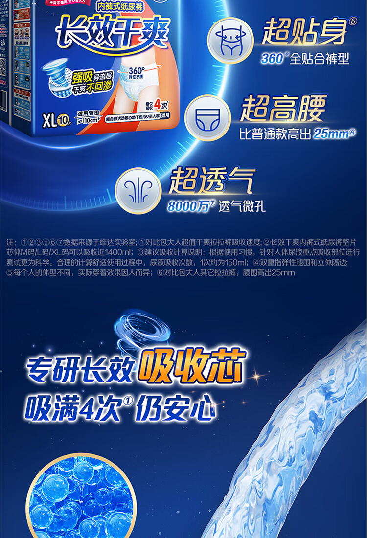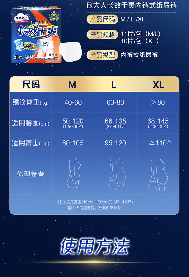 包大人长效干爽贴身成人拉拉裤XL60片腰围68-145cm老年产妇内裤型纸尿裤