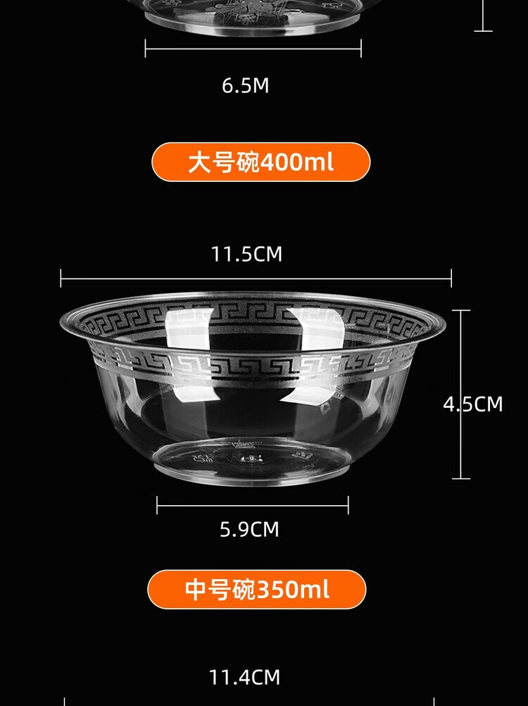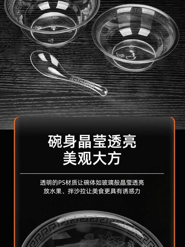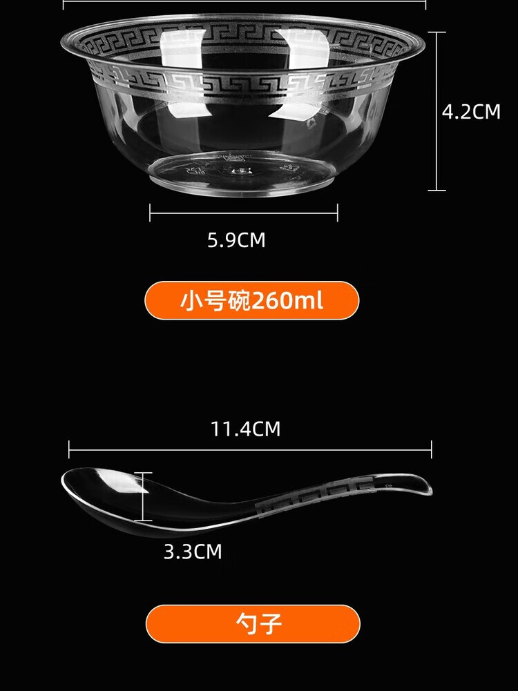 DEATKN德国一次性碗家用硬质航空水晶碗加厚加硬食品级材质塑料碗汤碗火 260毫升-【花纹水晶碗】 100只【加厚硬质】
