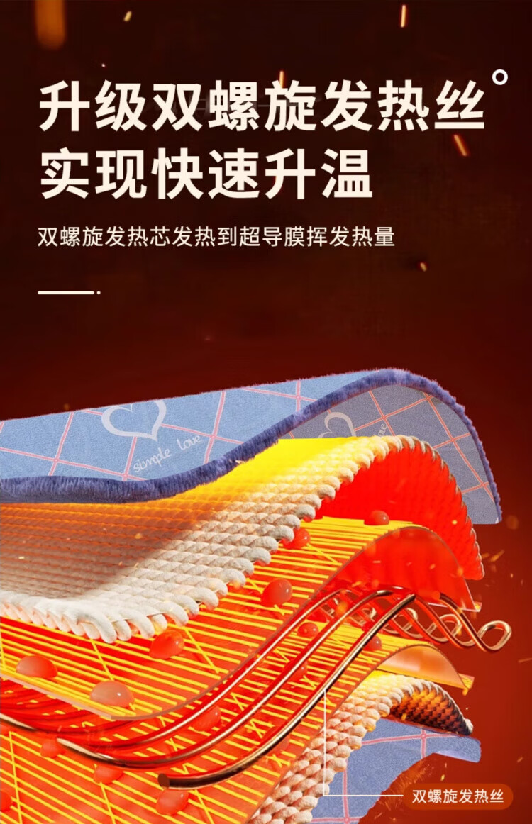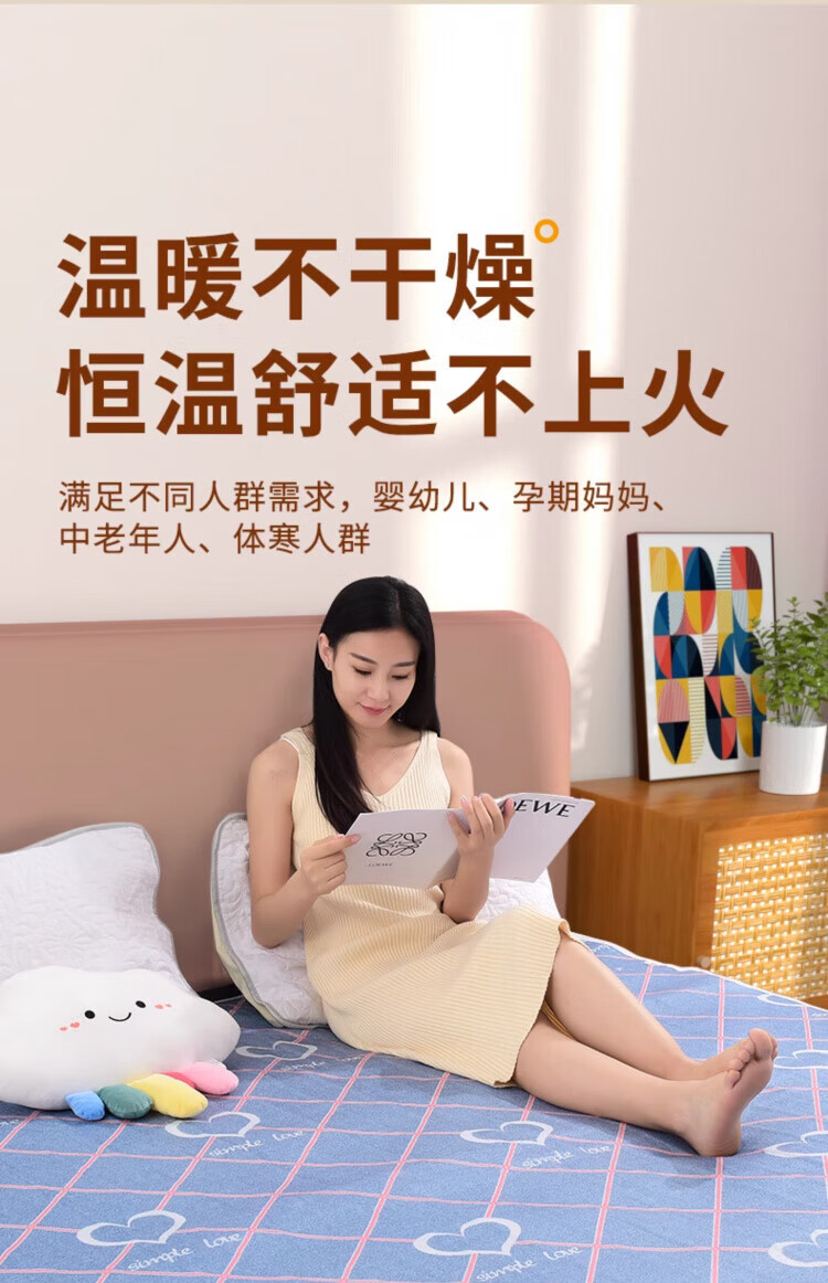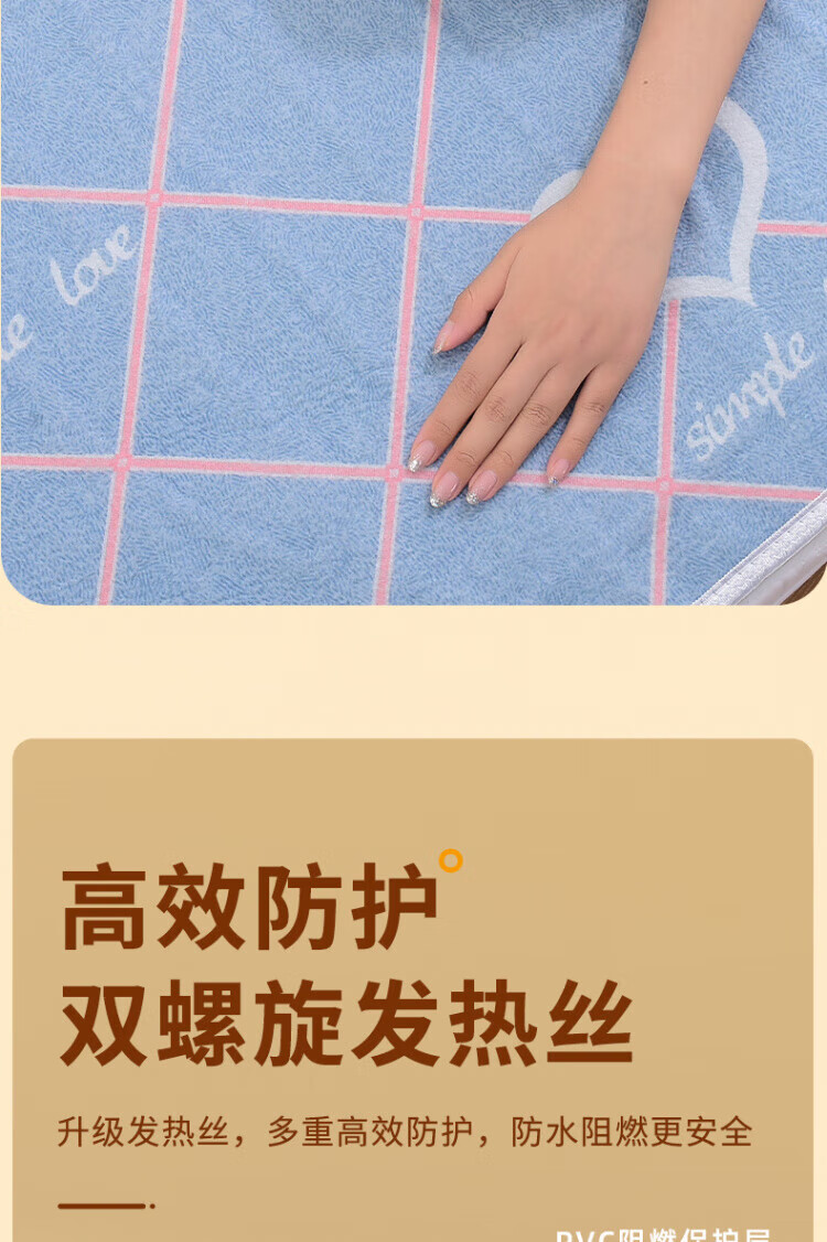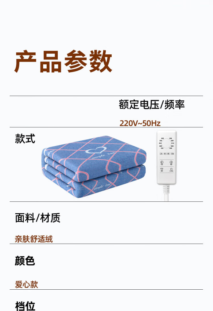 WCZ德国电热毯单双人电褥子双控调温家用官方旗舰2025新款学生宿舍 舒适绒爱心款150*80四档单控