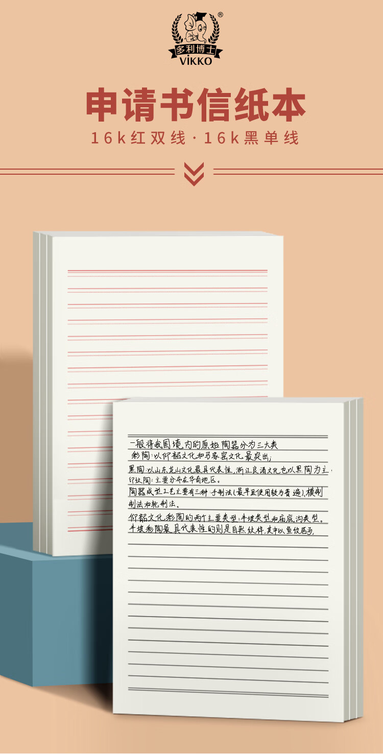 多利博士3本 16K30张双线信纸10mm16行 入党申请纸红色信签纸作文纸大学生入党信笺纸本色加厚【爆款低价】