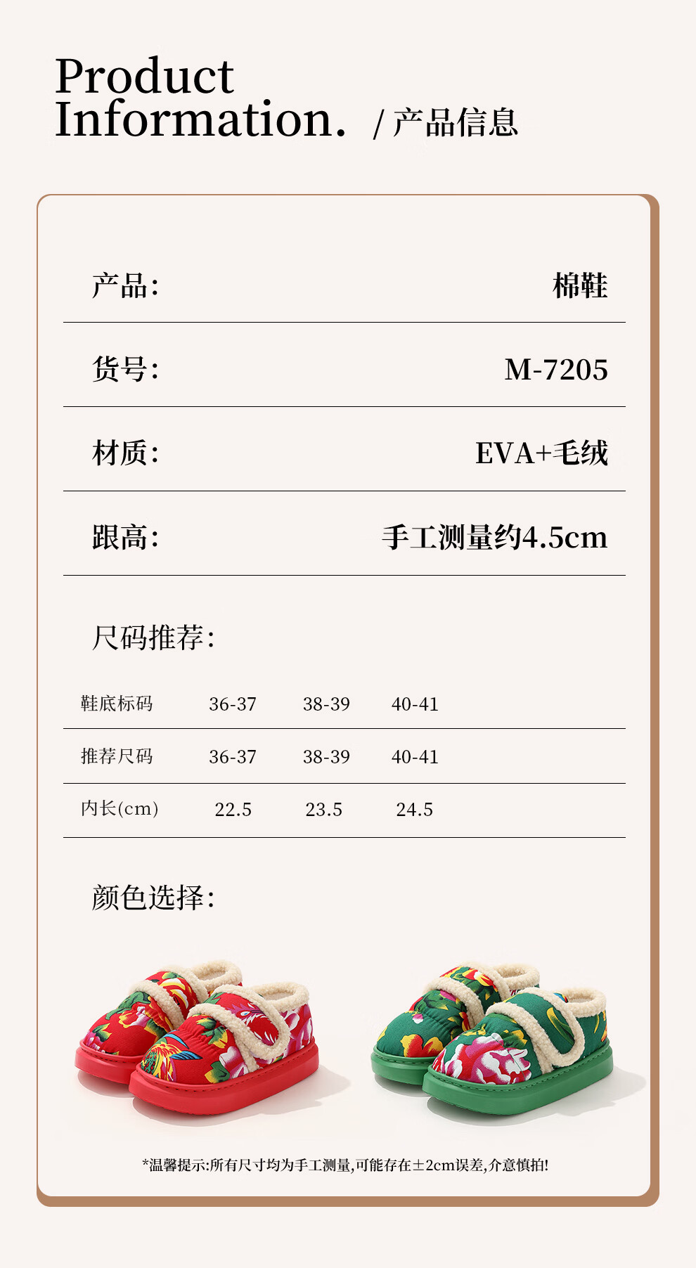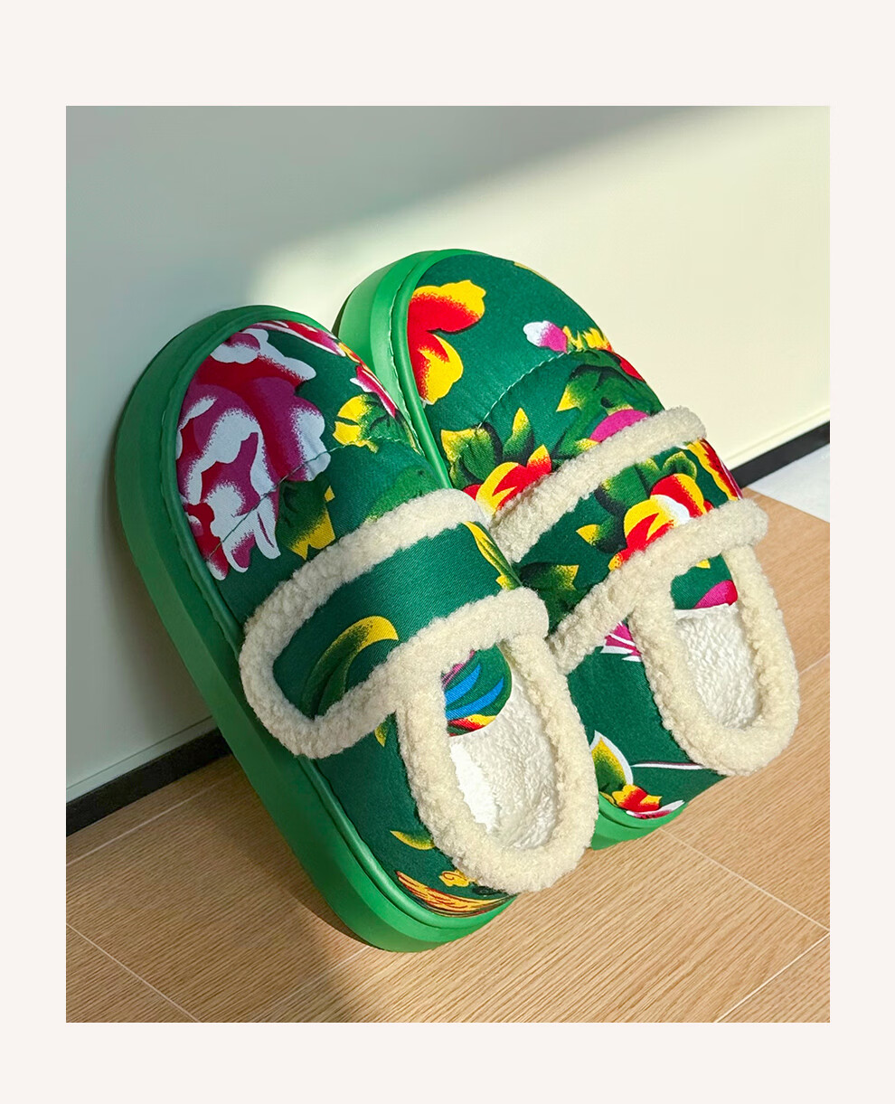 FZT包跟棉拖鞋女款2025新款防滑保暖加绒毛拖鞋冬季东北大花棉鞋外穿 红色【东北大花棉鞋】 38-39 标准码