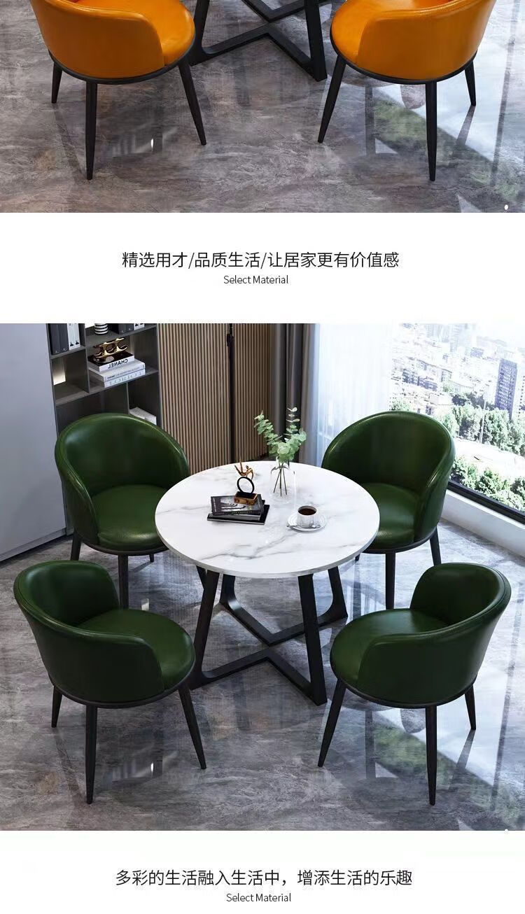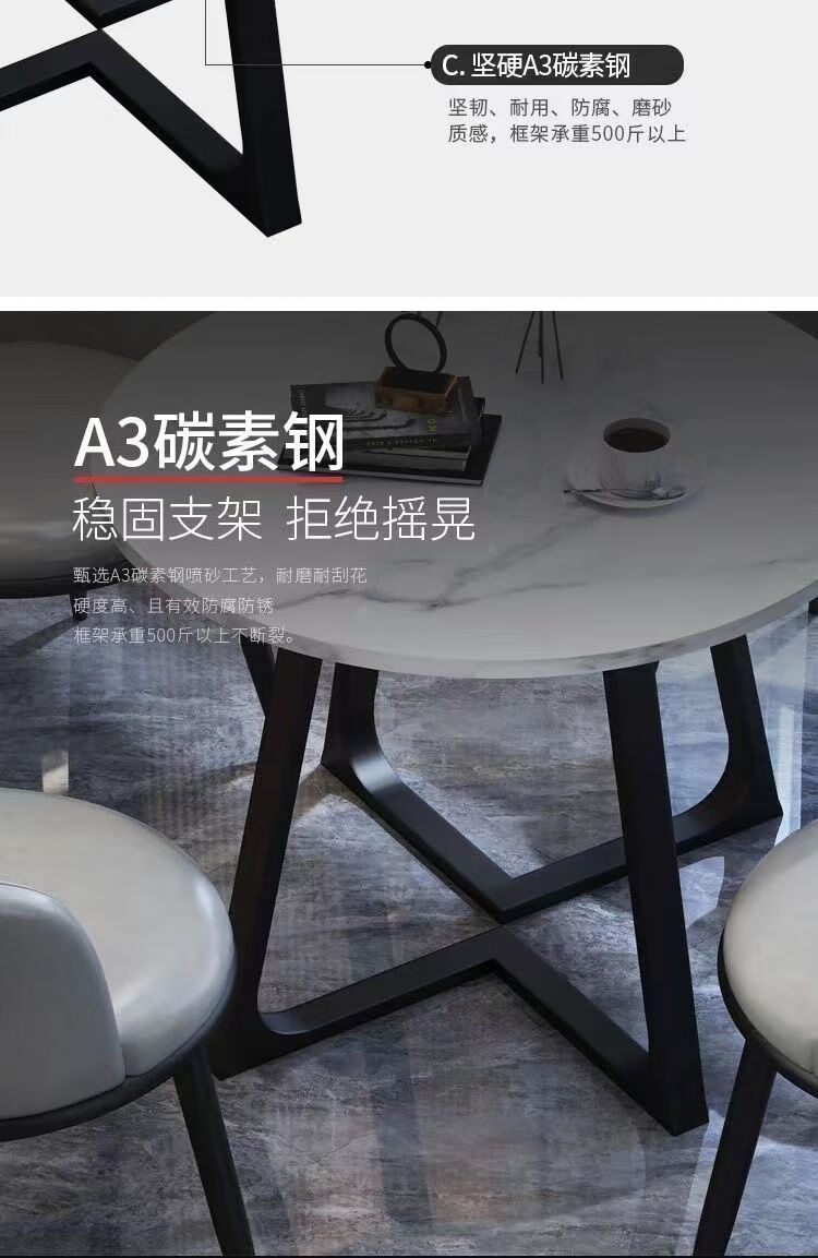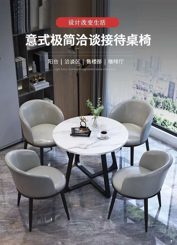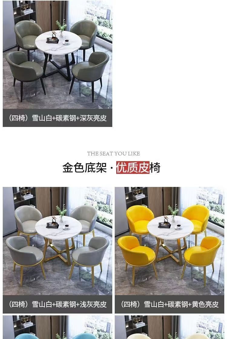 弘星隆意式轻奢洽谈餐桌椅组合售楼处休闲接待家用小户型现代简约小圆桌 黑色V字钢架+浅灰皮椅 60CM直径圆桌【单桌颜色备注】