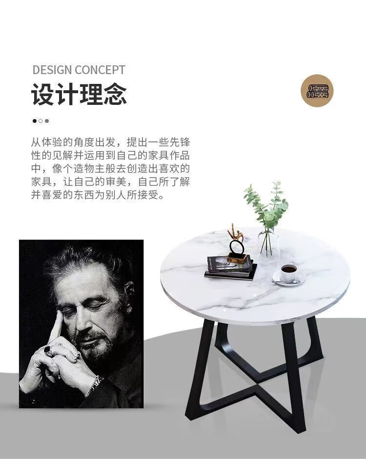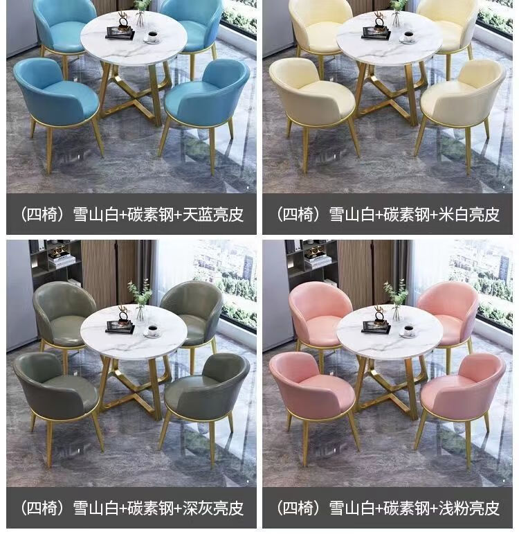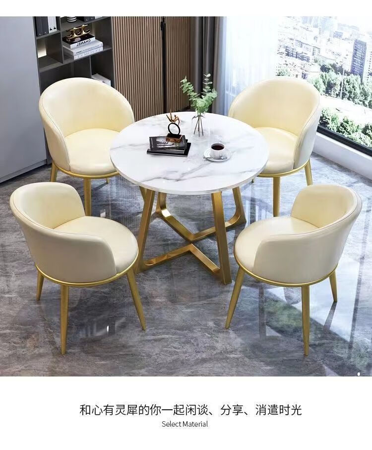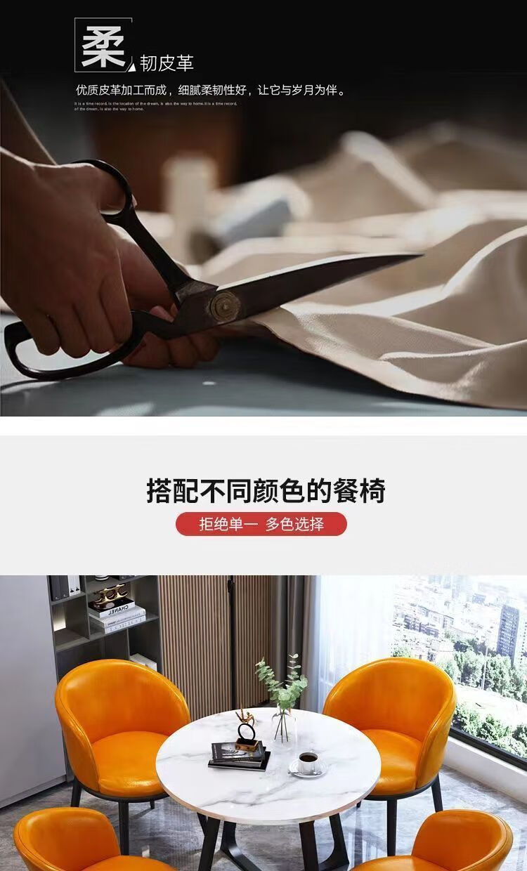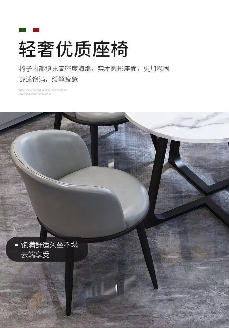 弘星隆意式轻奢洽谈餐桌椅组合售楼处休闲接待家用小户型现代简约小圆桌 黑色V字钢架+浅灰皮椅 60CM直径圆桌【单桌颜色备注】