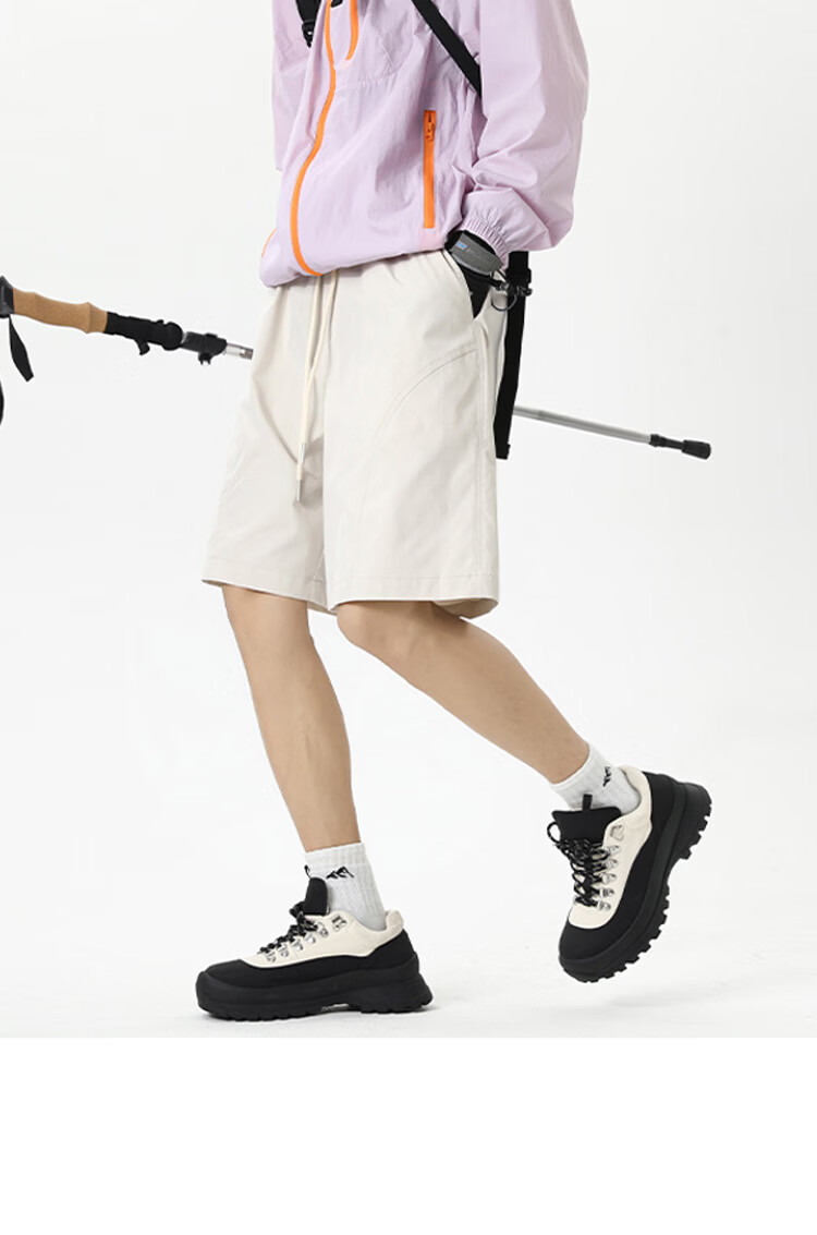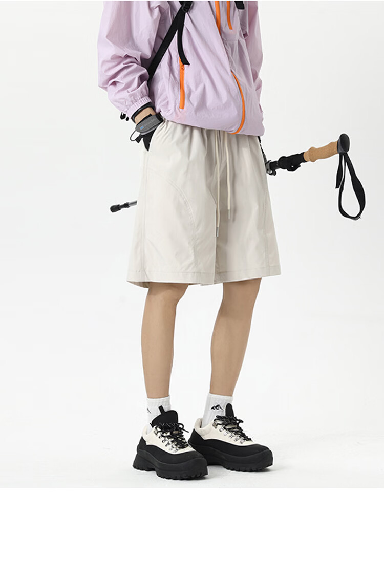 WASSUP HERMU官方短裤男夏季户外徒步速干工装裤薄款凉感透气休闲运动四分裤 米白色 XL (推荐130-150斤)