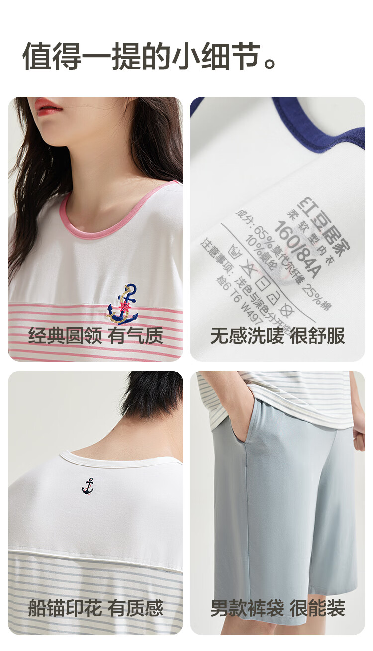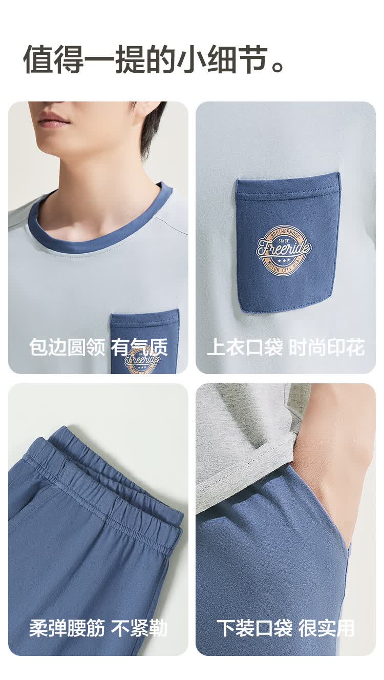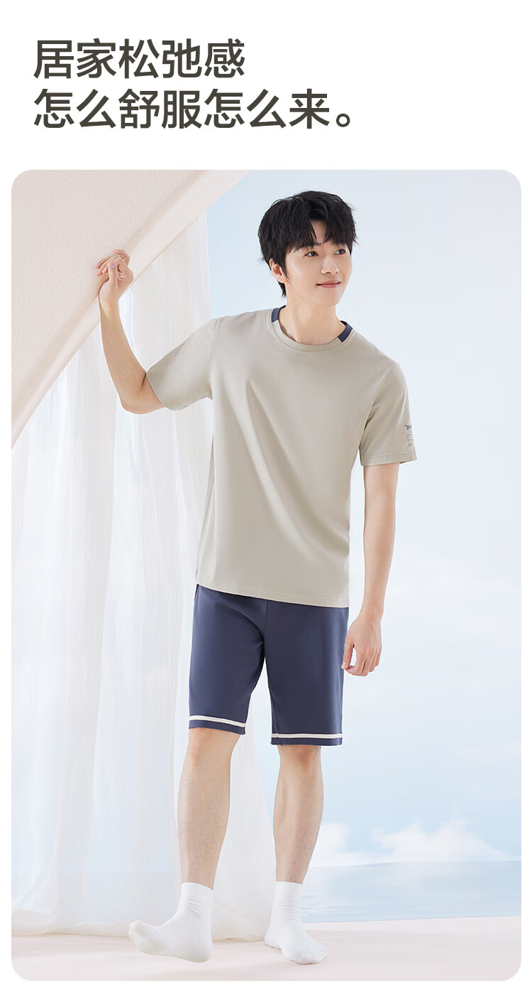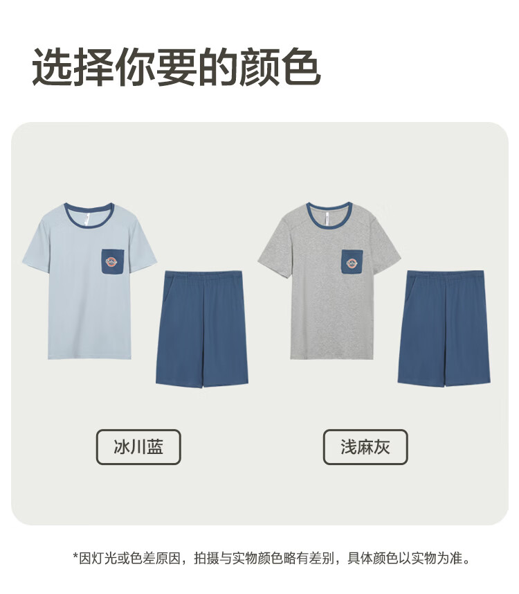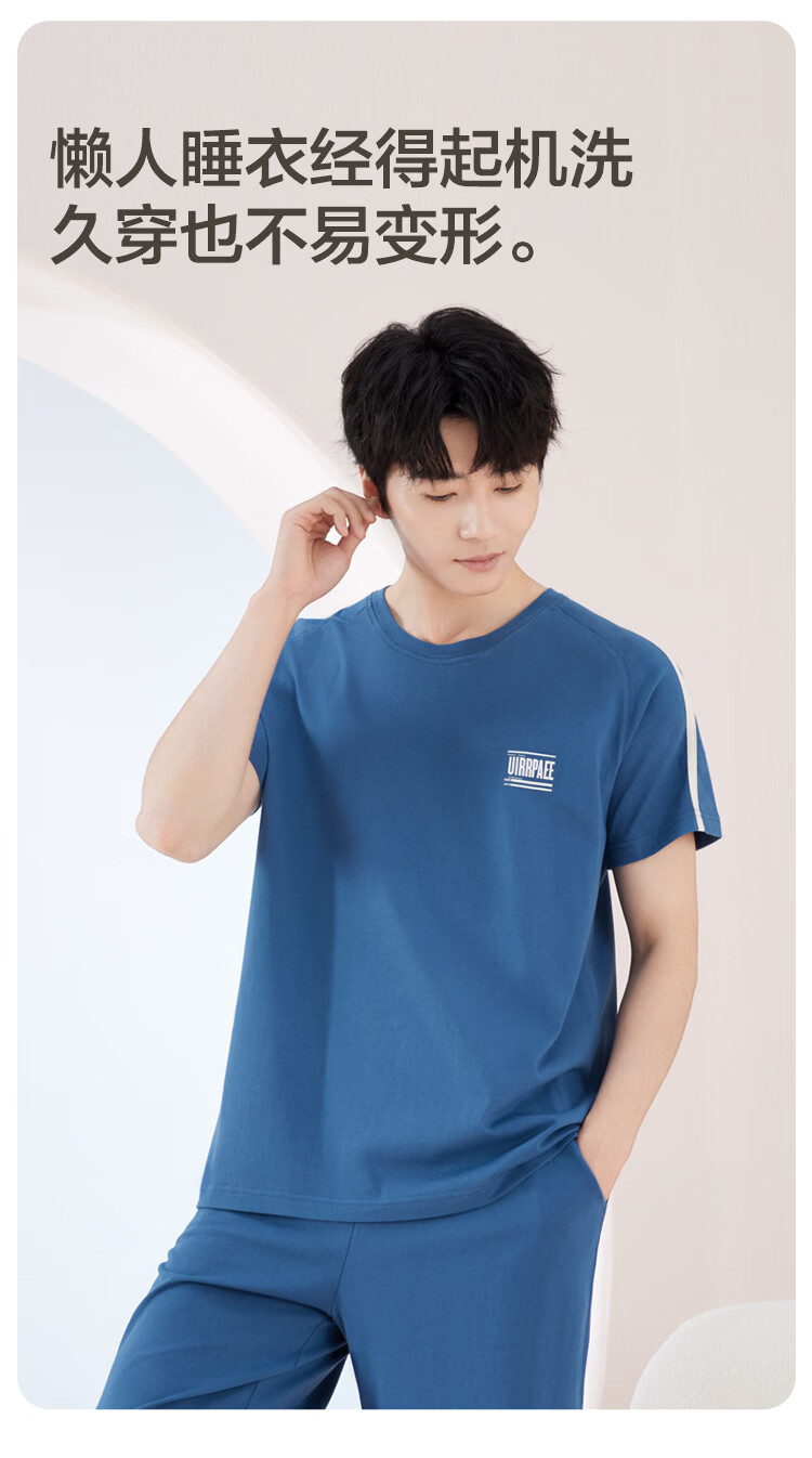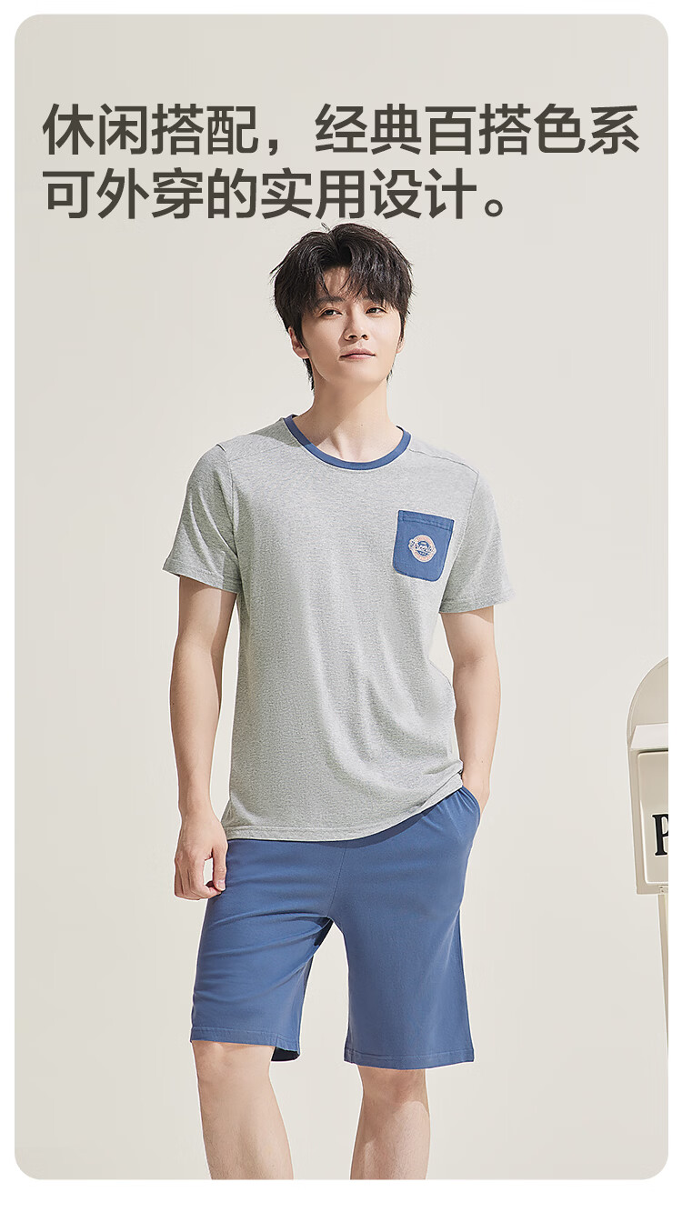红豆居家男女士睡衣夏季舒适透气简约短袖可外穿睡衣家居服 JDJ012天蓝 L 170/92A