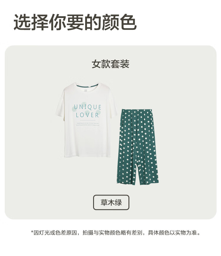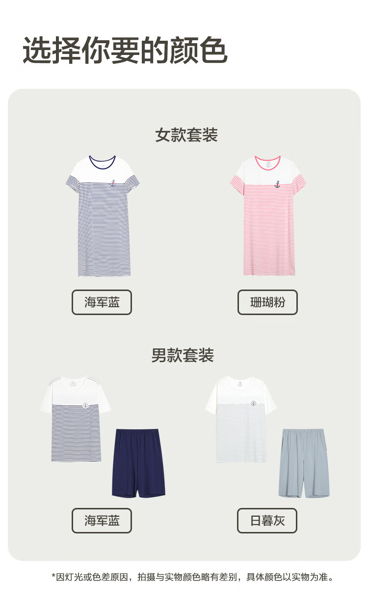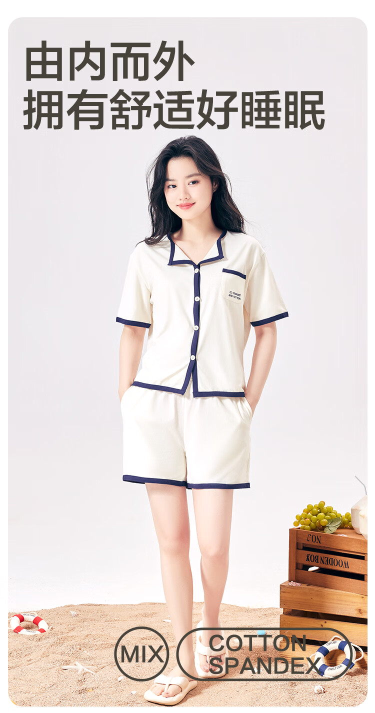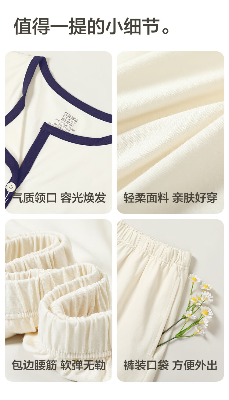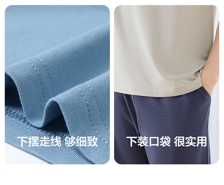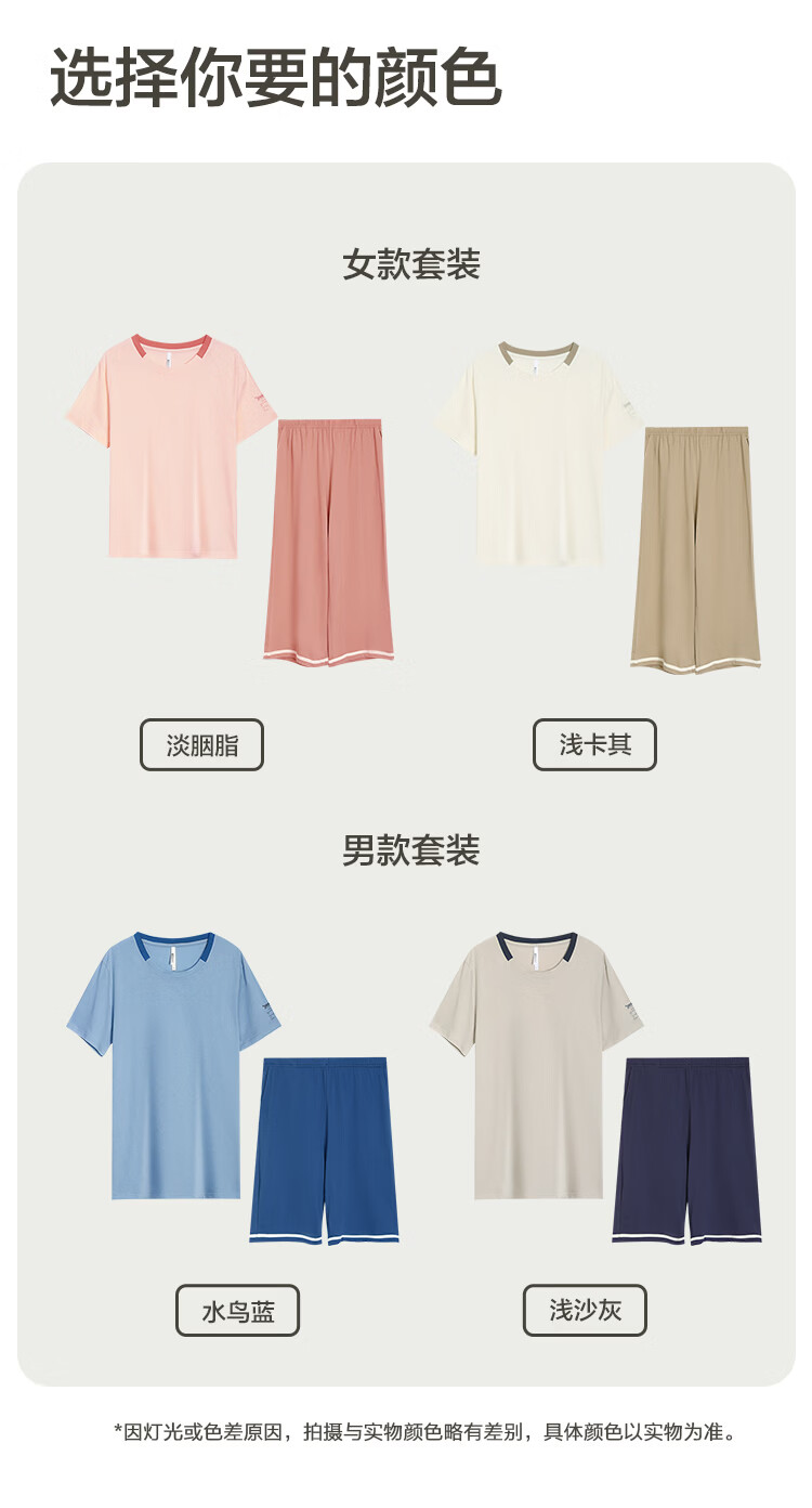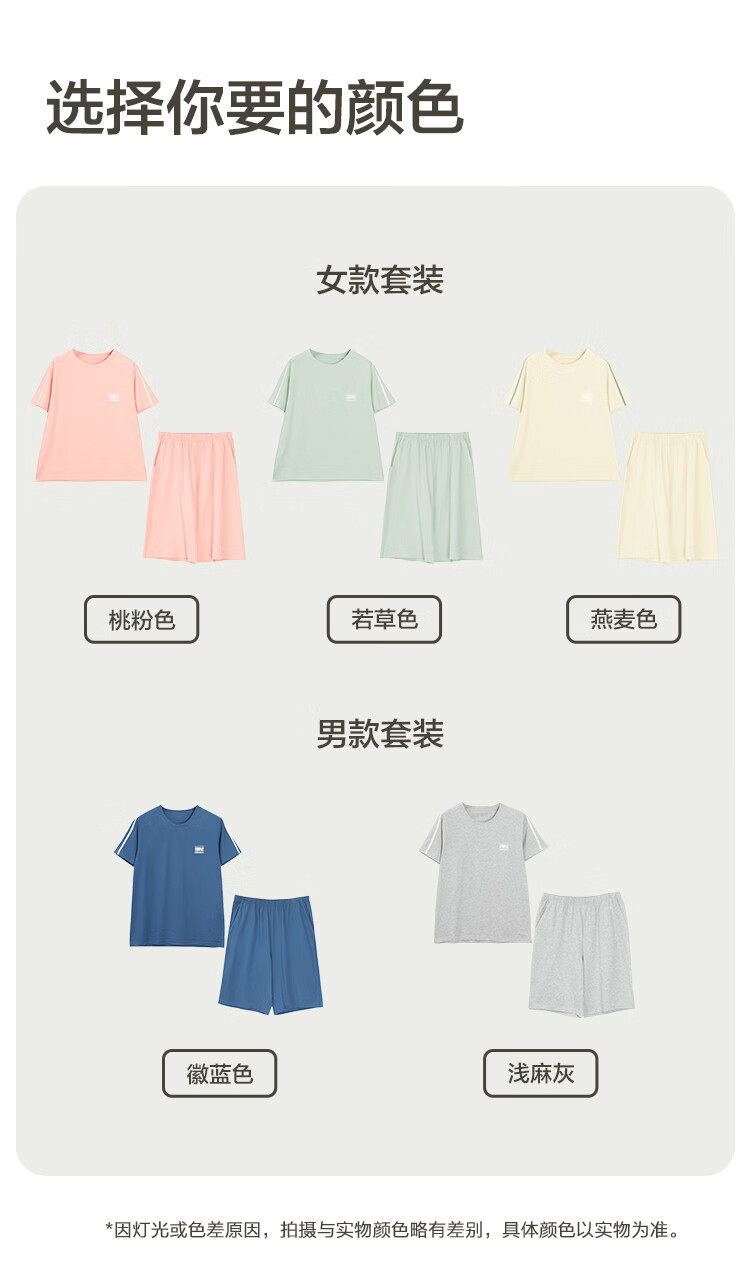 红豆居家男女士睡衣夏季舒适透气简约短袖可外穿睡衣家居服 JDJ012天蓝 L 170/92A