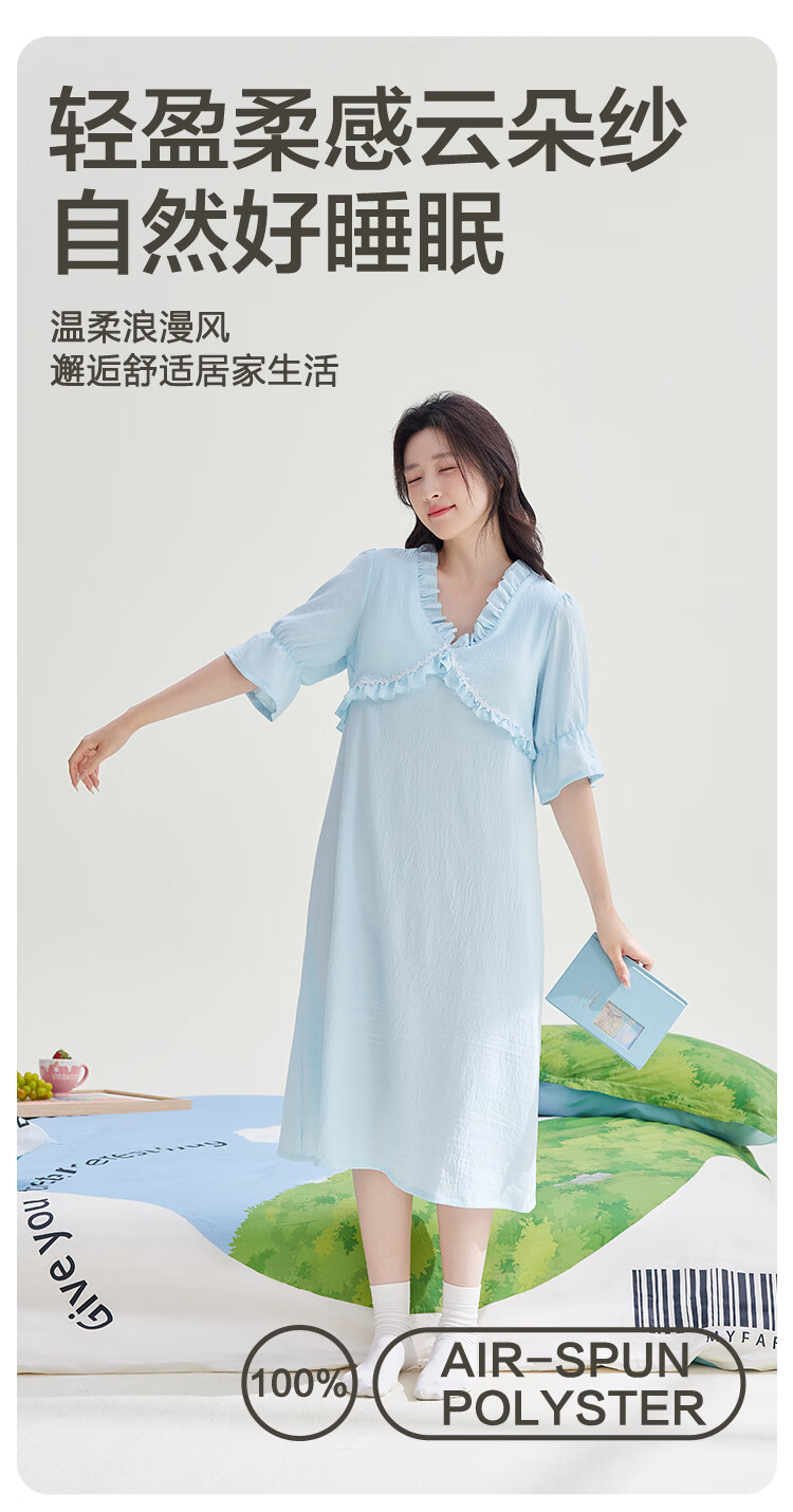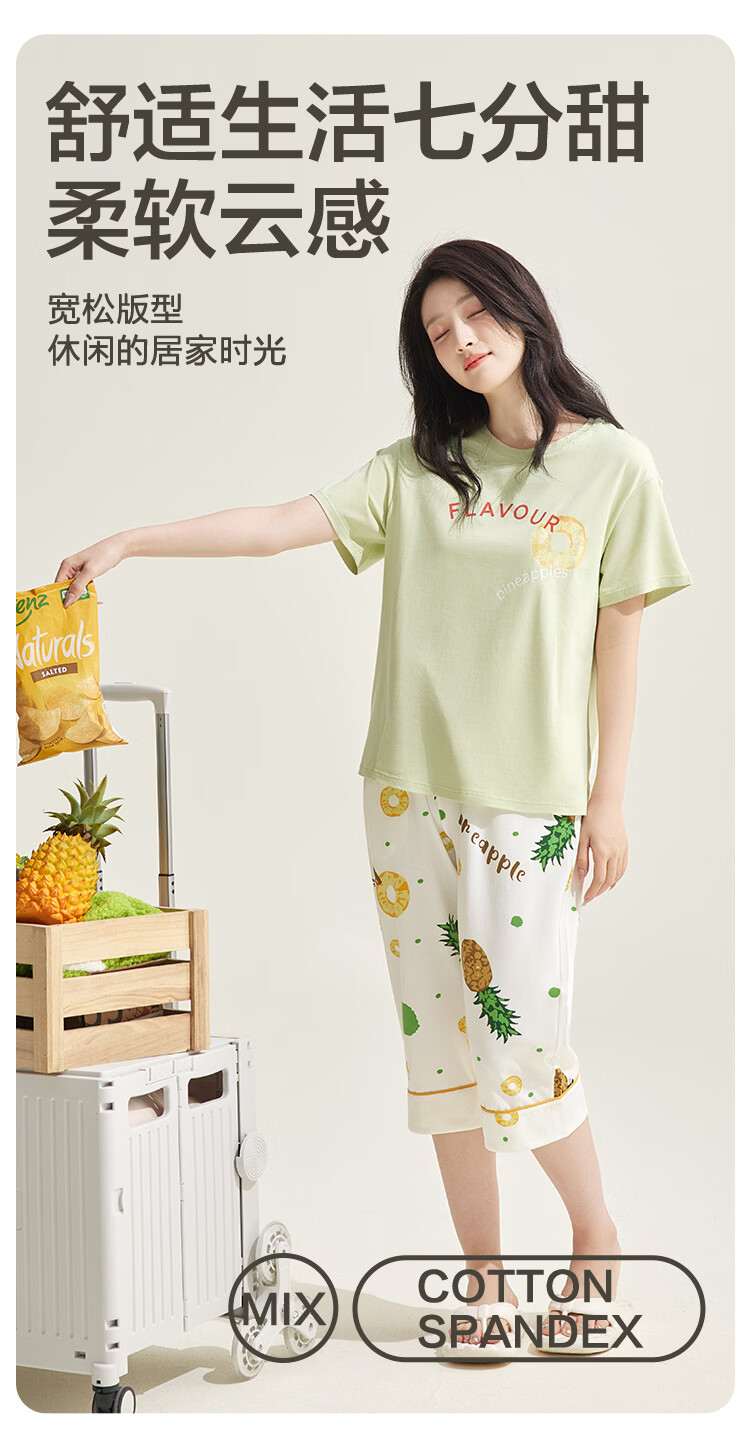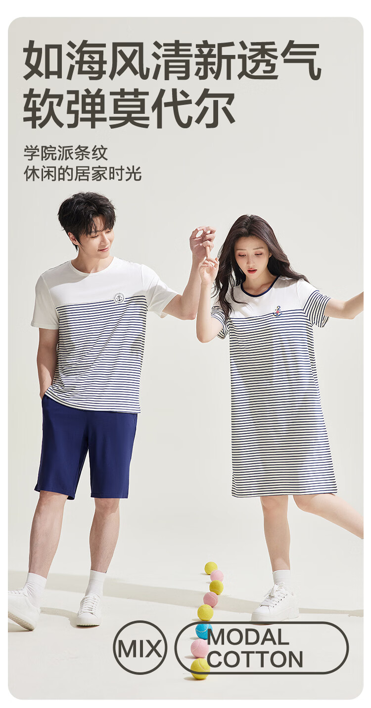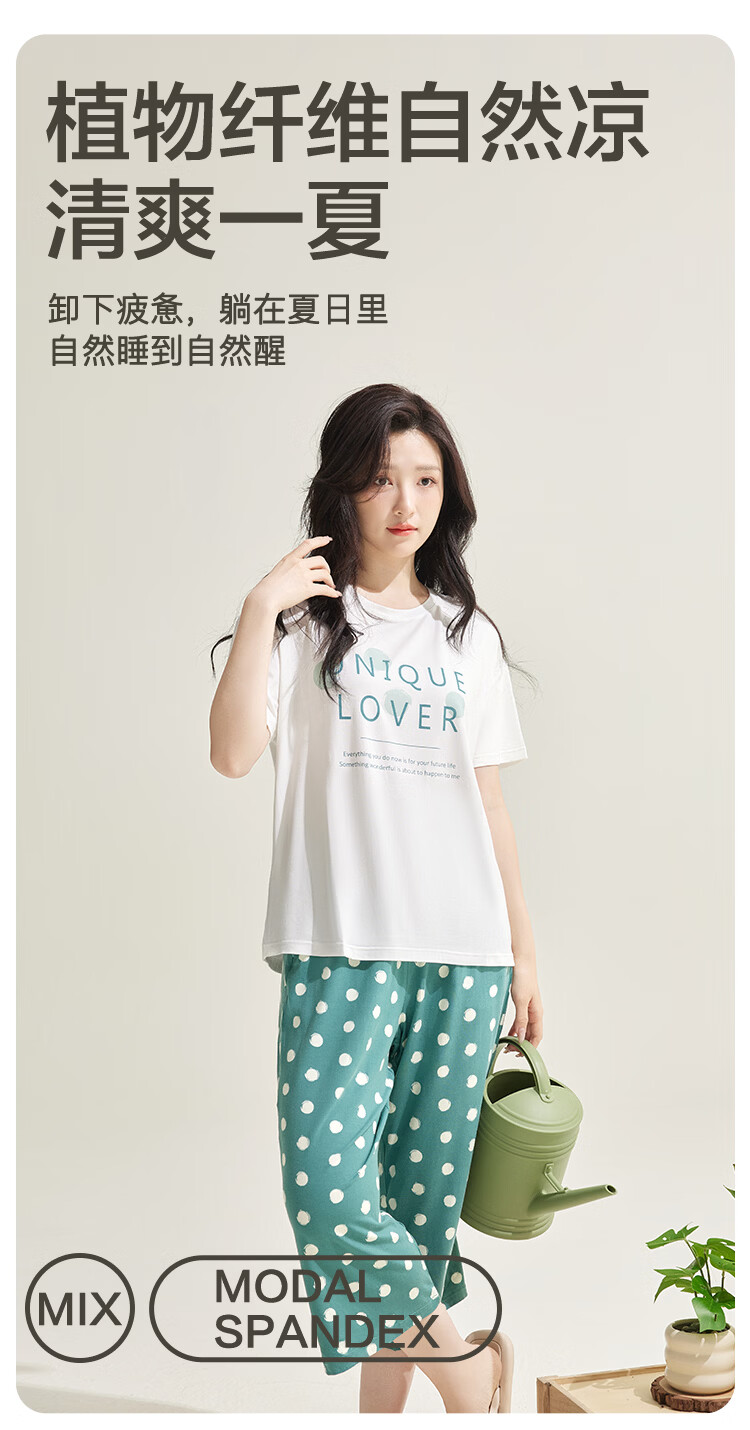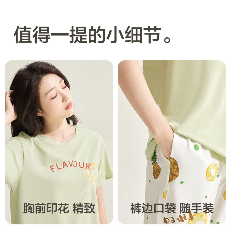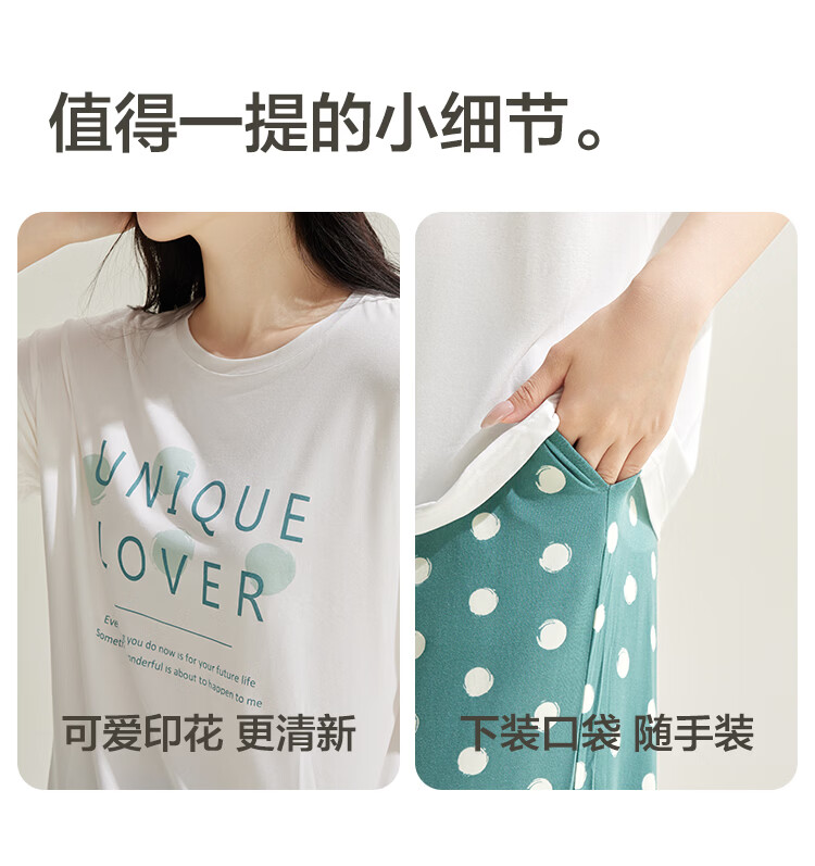 红豆居家男女士睡衣夏季舒适透气简约短袖可外穿睡衣家居服 JDJ012天蓝 L 170/92A
