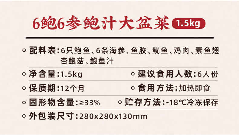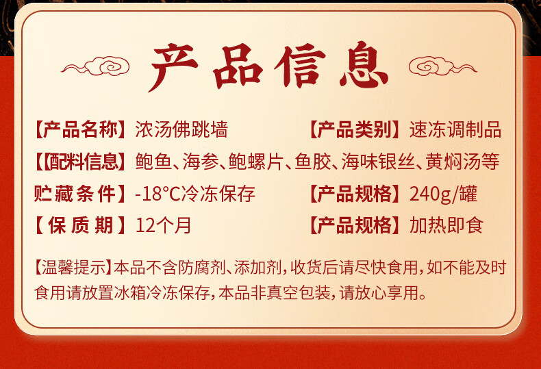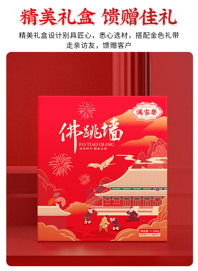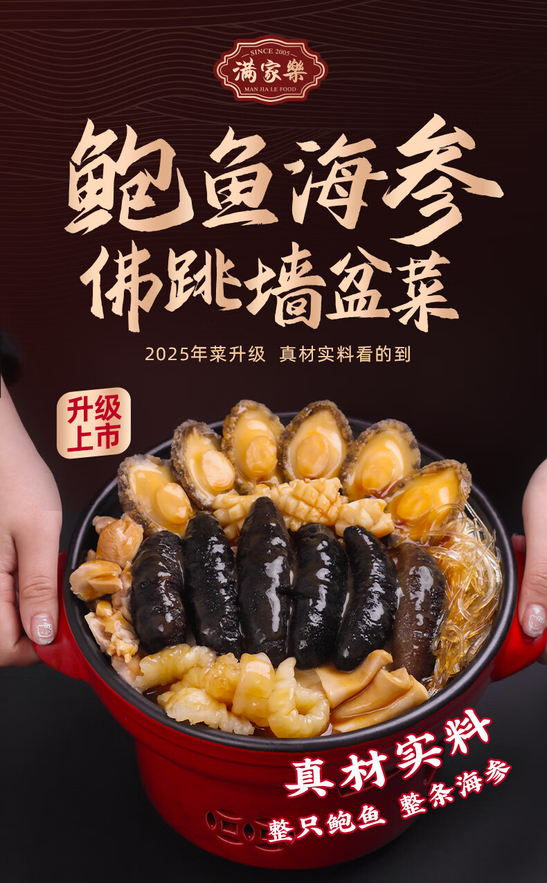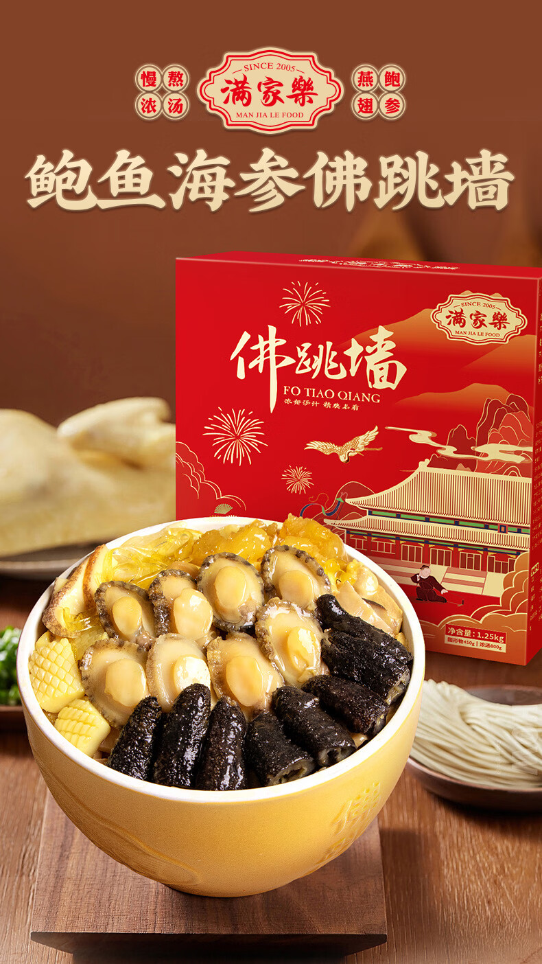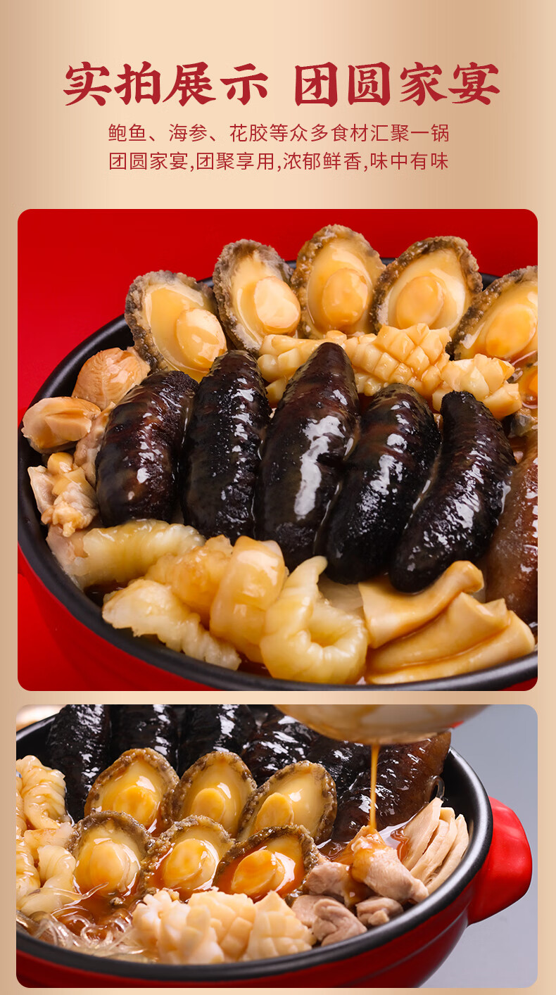 满家乐 金汤佛跳墙 加热即食 年夜饭套餐 鲍鱼 海鲜速冻菜肴礼盒半成品 8鲍8参家庭版佛跳墙1.25kg盒装