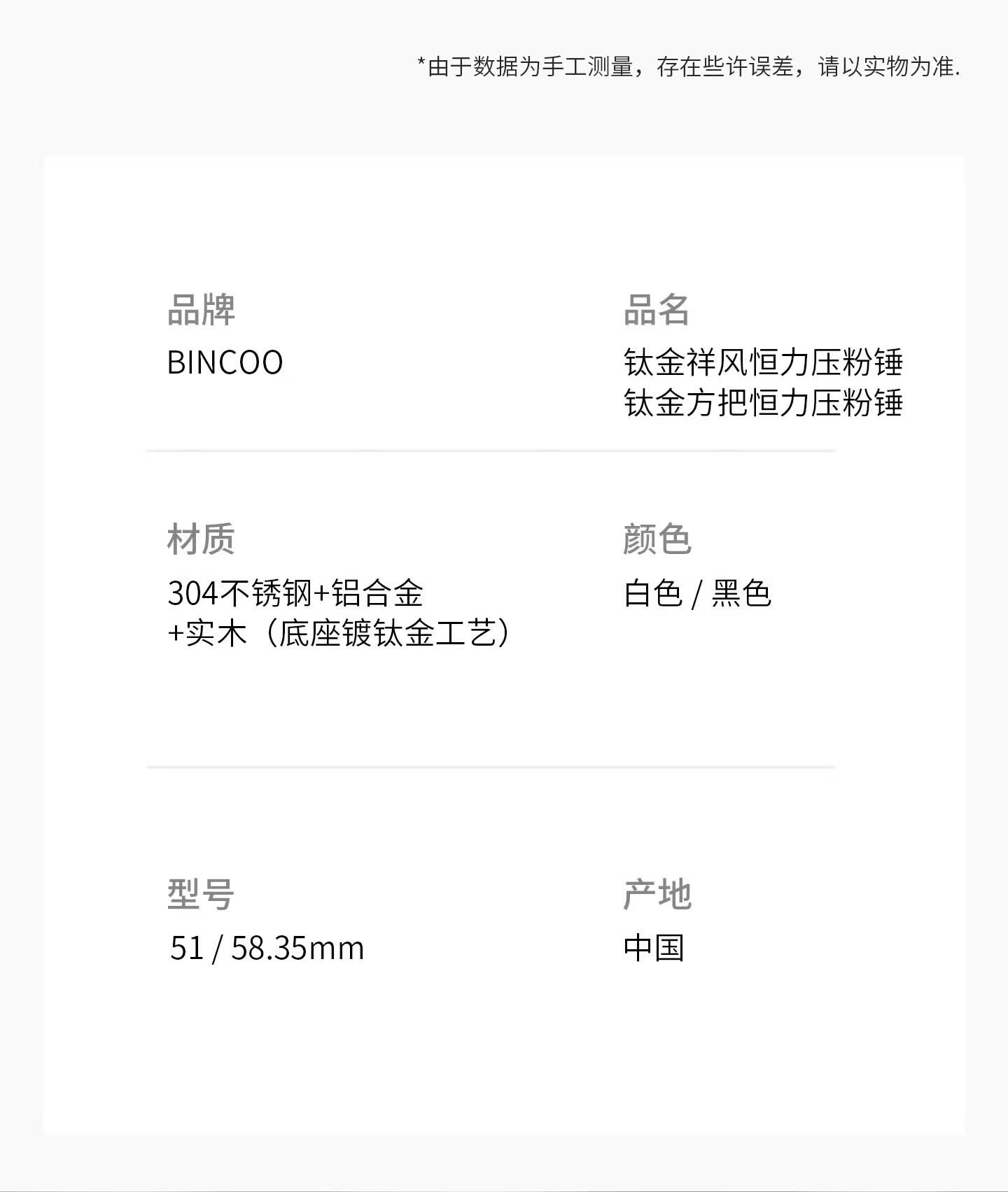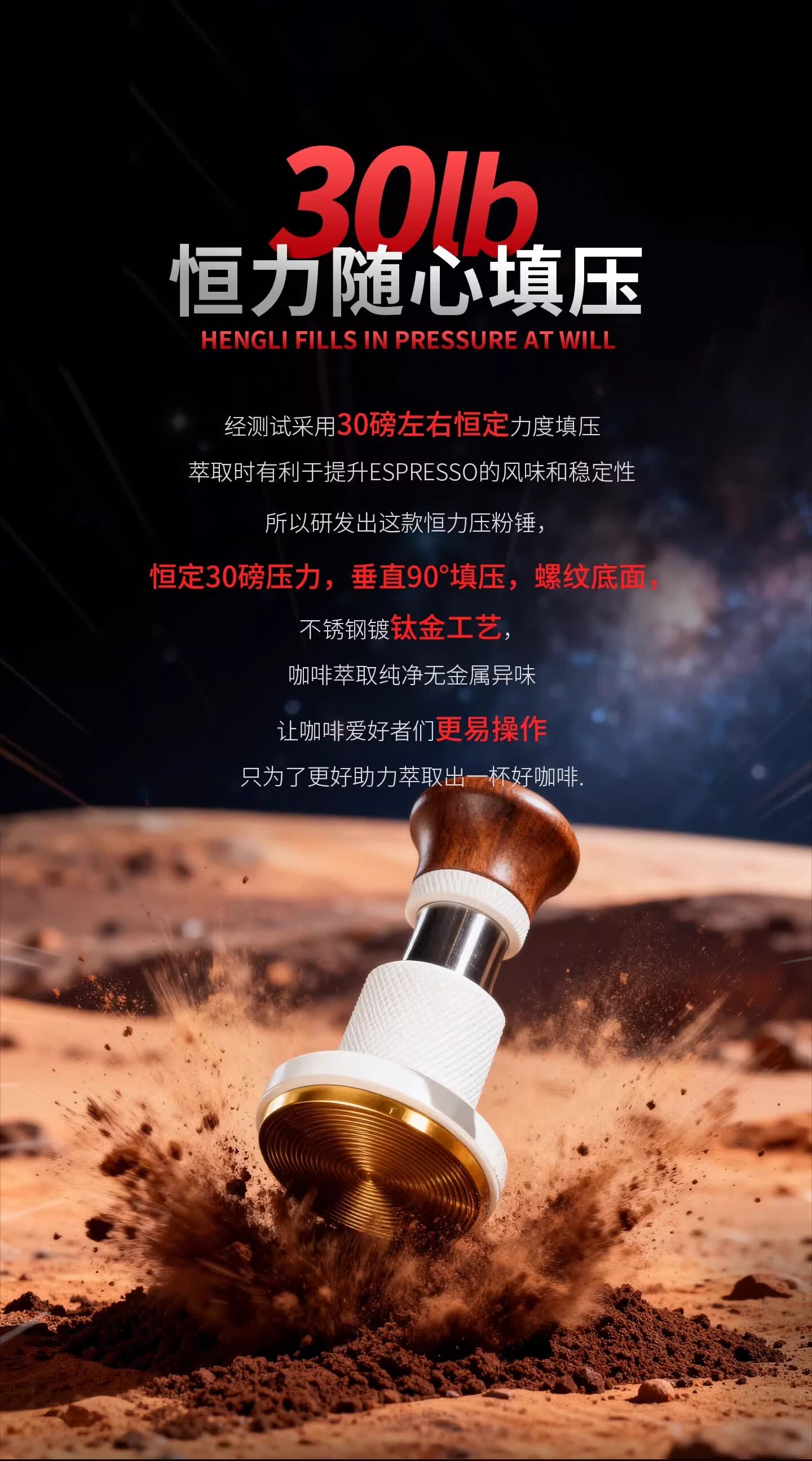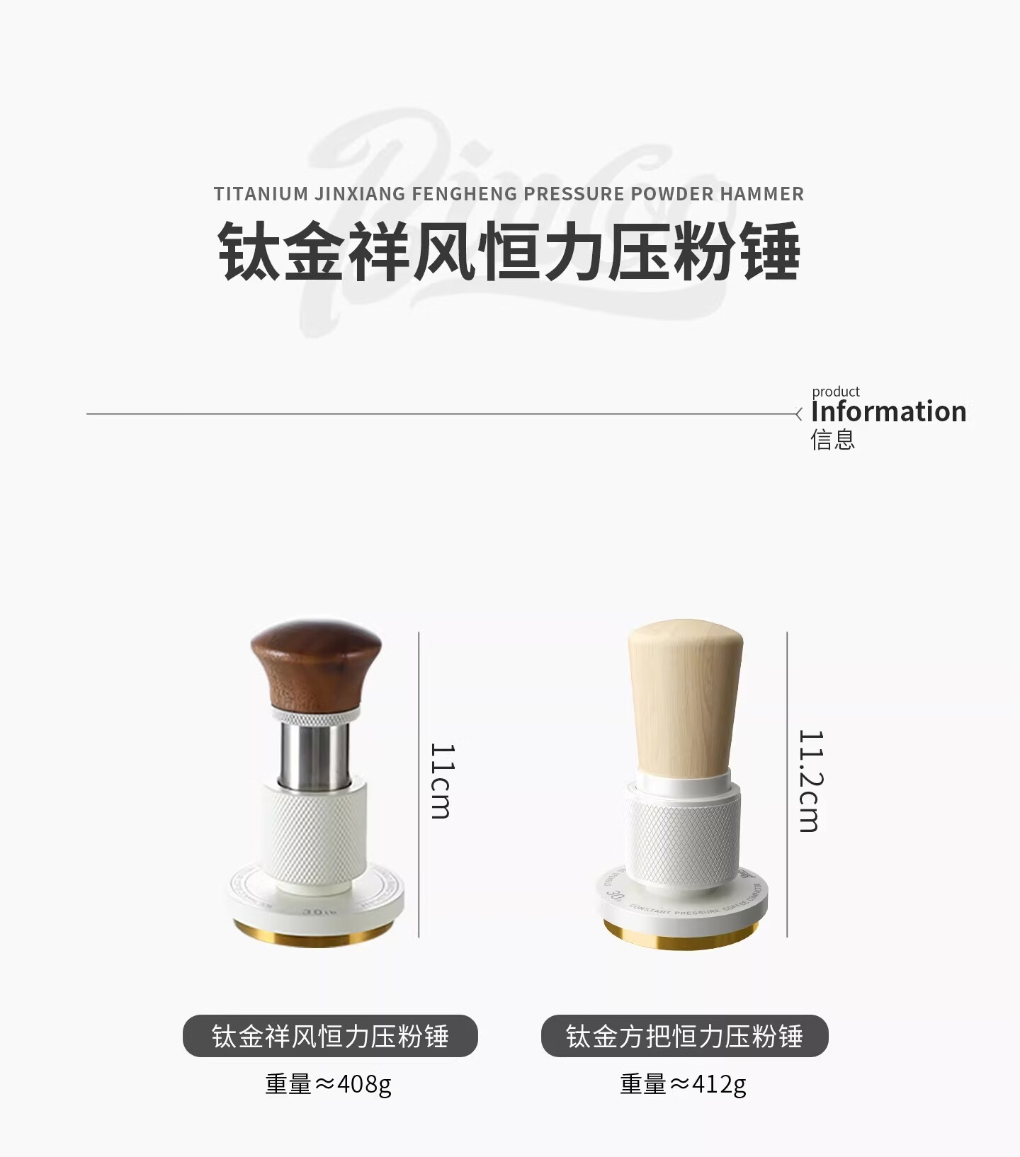 Bincoo恒力镀钛金咖啡压粉锤30磅冲击螺纹意式咖啡机配件压粉器具 白色压粉锤【镀钛螺纹底】 51mm