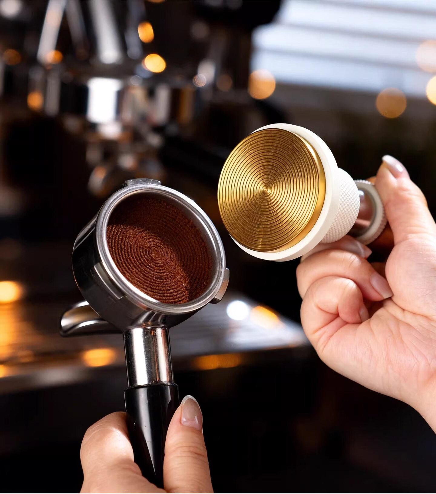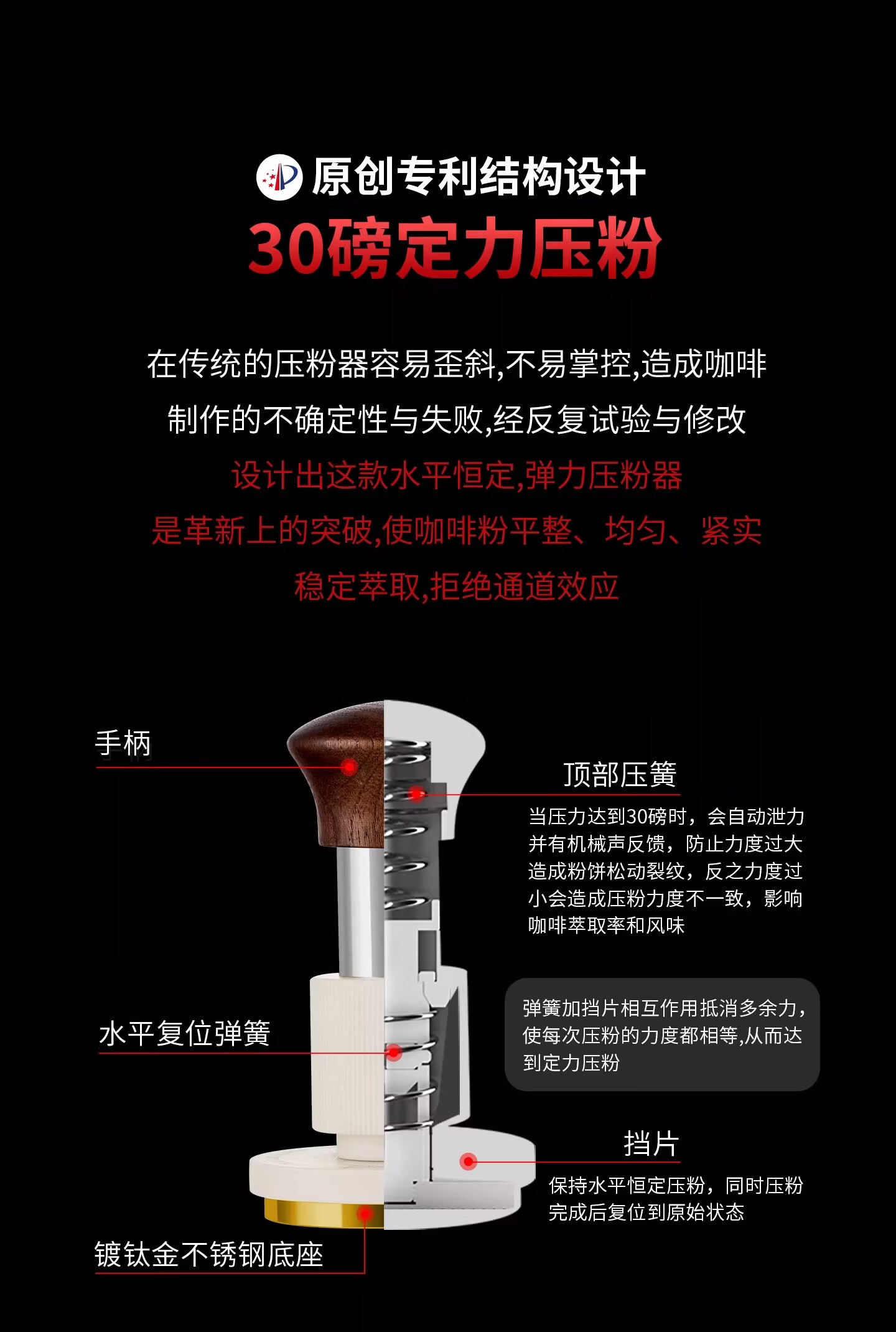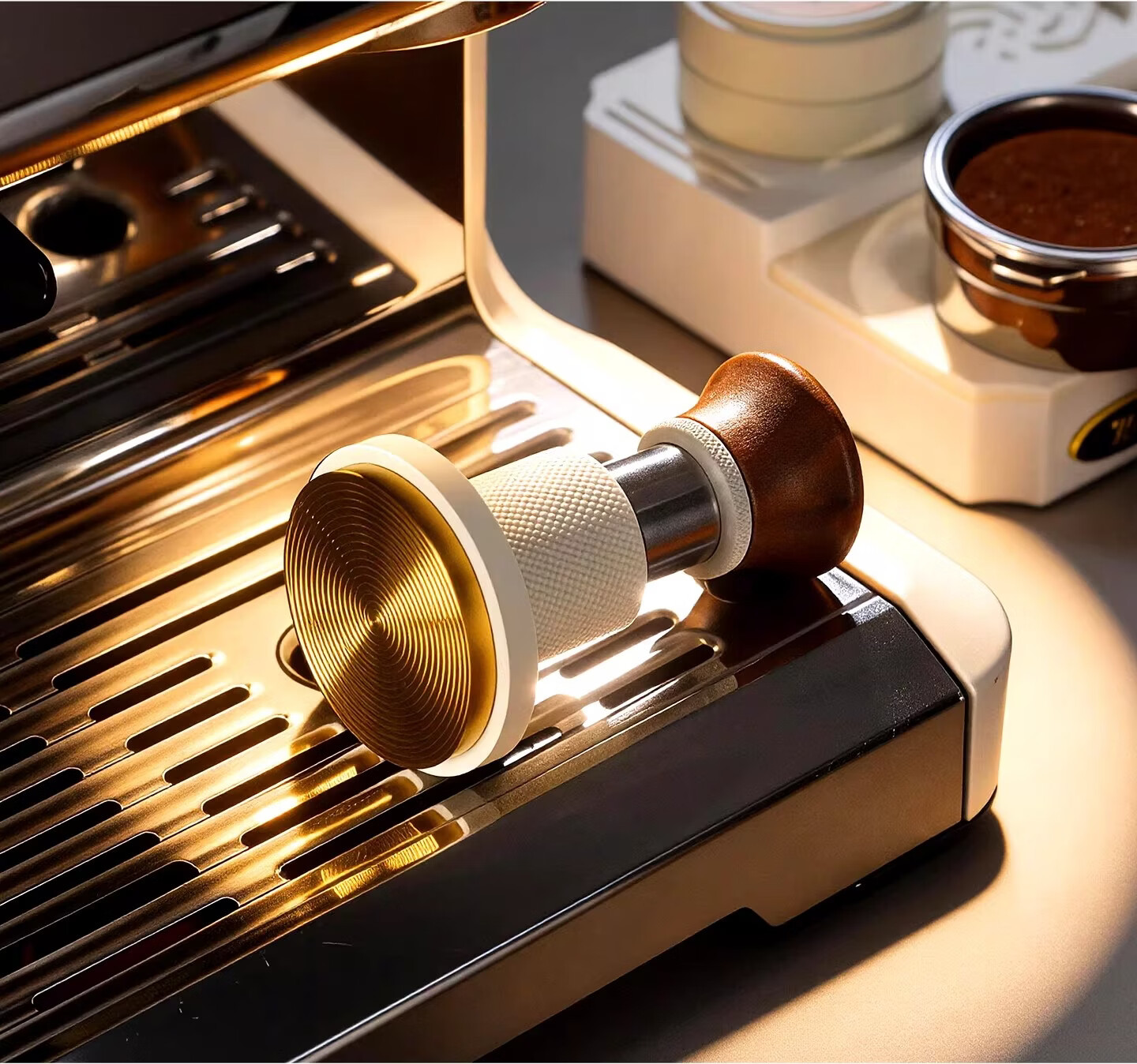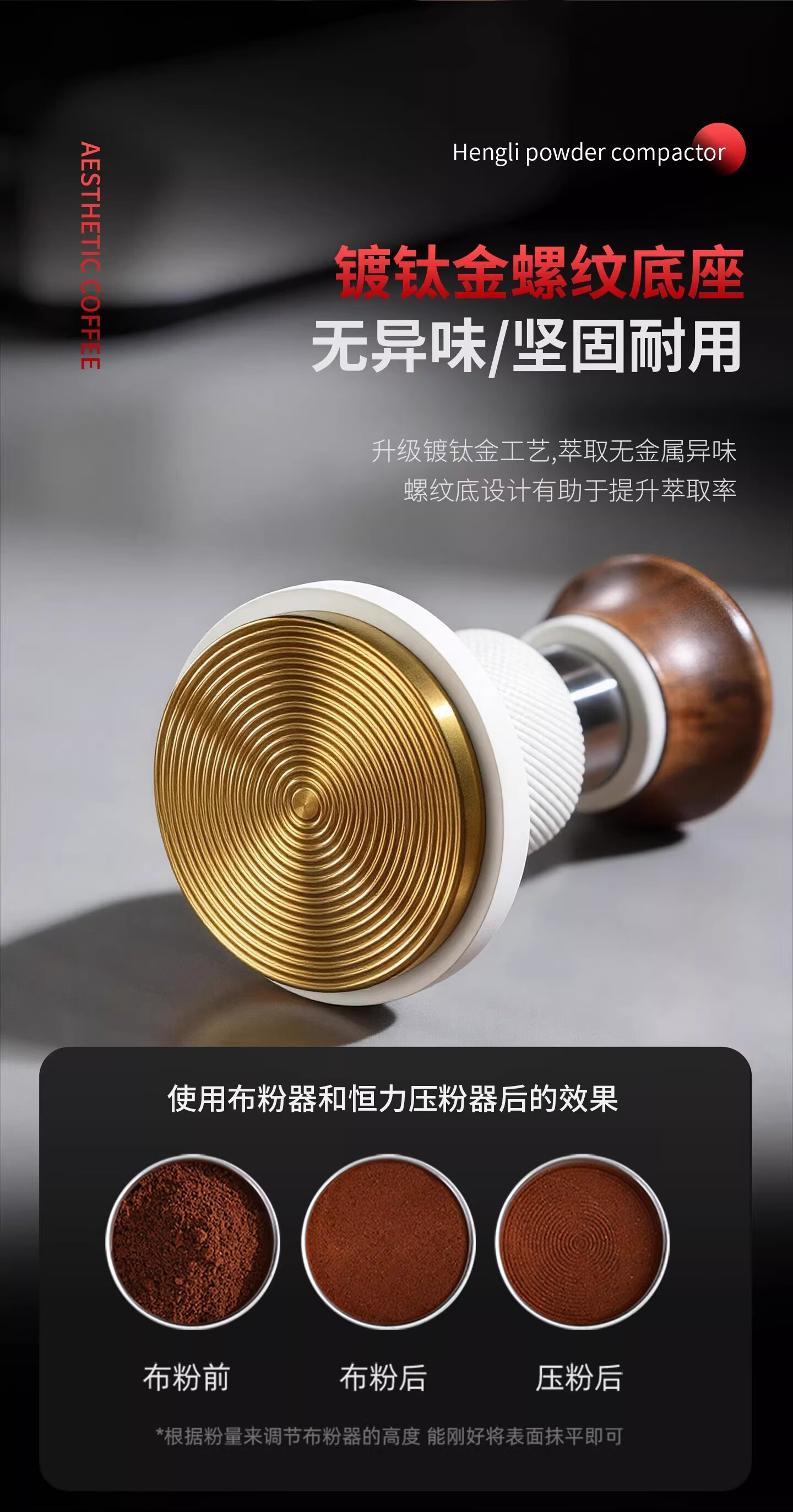 Bincoo恒力镀钛金咖啡压粉锤30磅冲击螺纹意式咖啡机配件压粉器具 白色压粉锤【镀钛螺纹底】 51mm