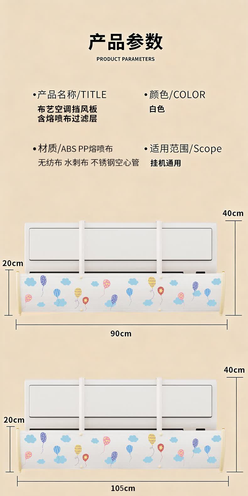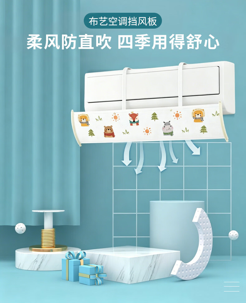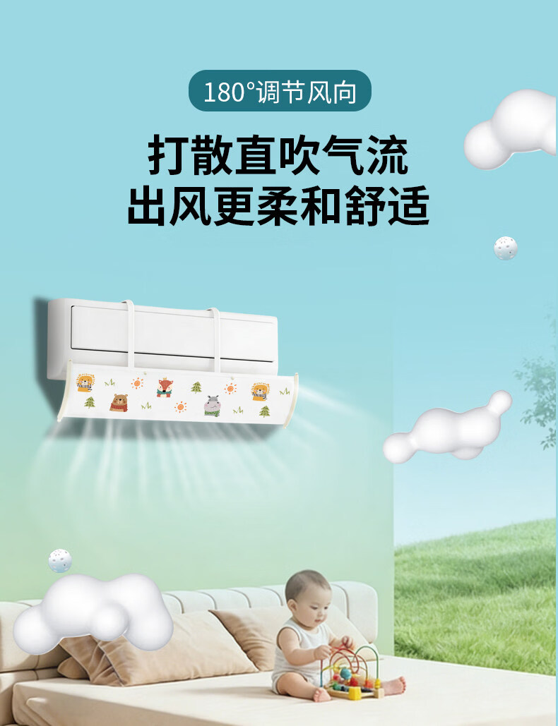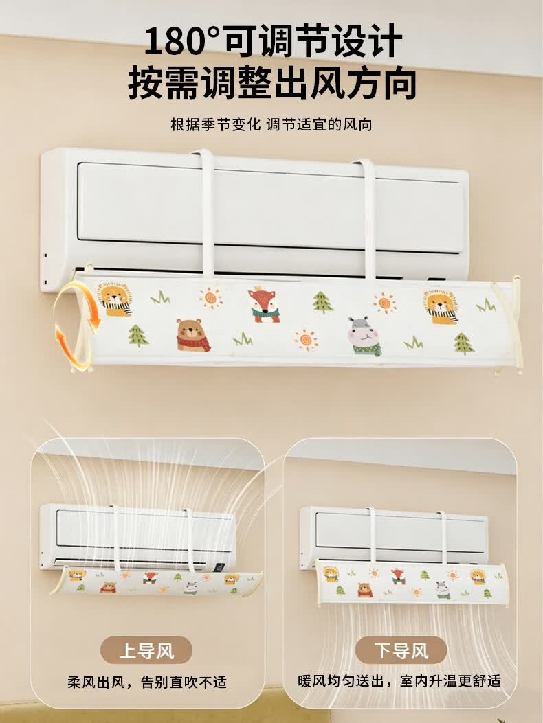 艾仕可空调挡风板冷气防直吹神器坐月子壁挂式通用出风口挡板遮导风罩 【动物派对】过滤挡风党风双合一(90CM)