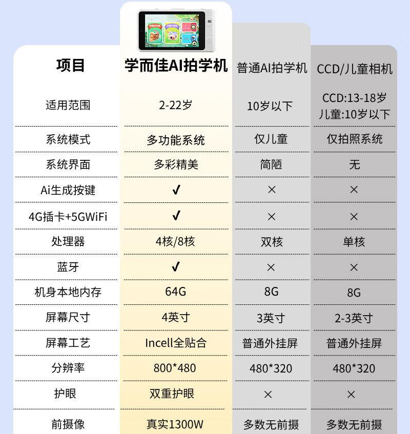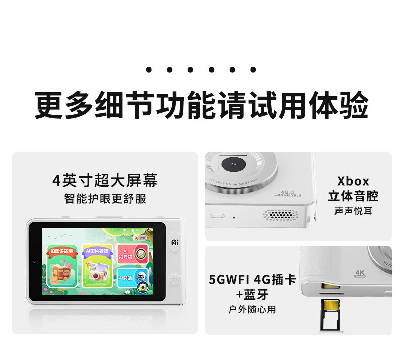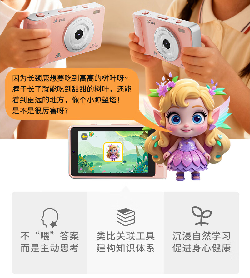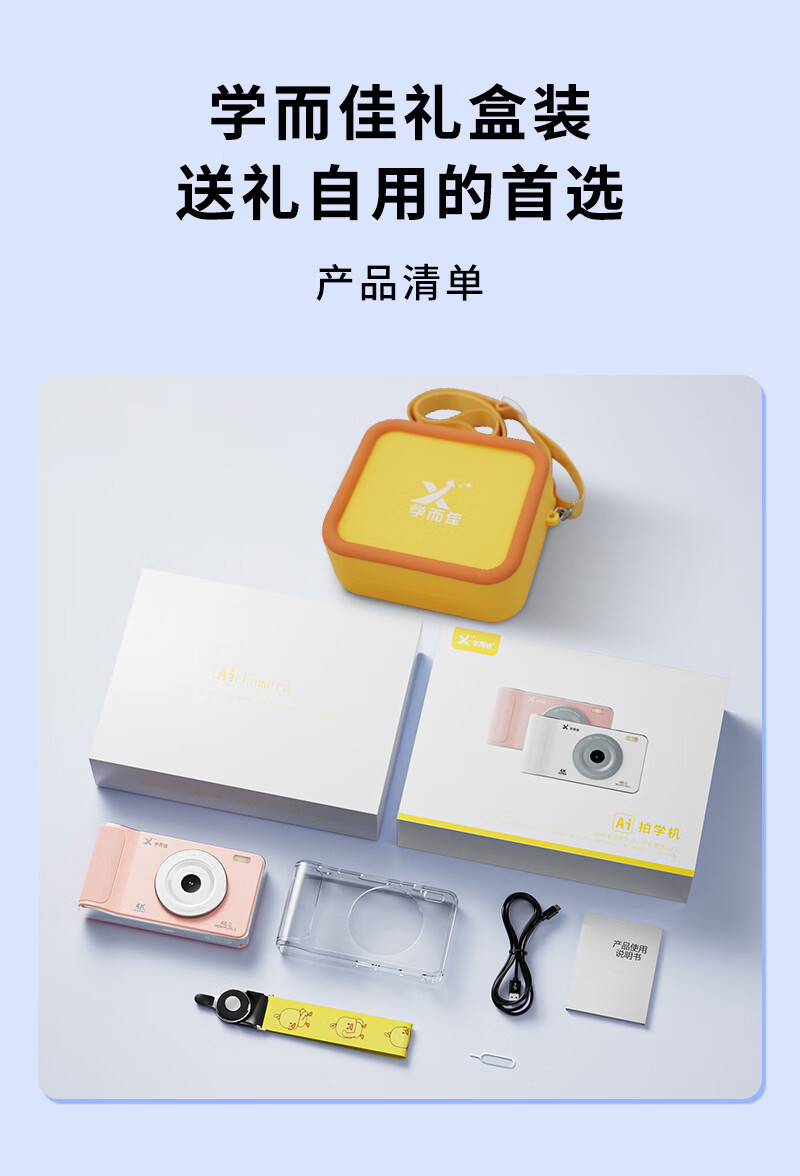 学而佳AI拍学机1300W高像素儿童人工智能玩具学习机早教机故事机 梦境粉(保护壳+相机探险包+挂绳+1999元会员) K6 MAX(64G)送2999元学习机内容