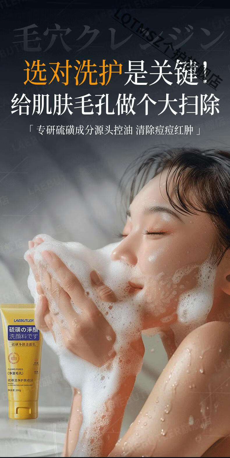 LQTMSZ硫磺洗面奶控油祛痘除螨虫去黑头粉刺收缩毛孔男女专用旗舰店正品 一瓶装