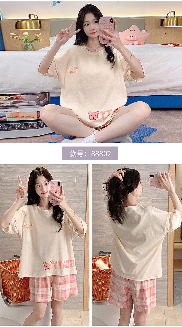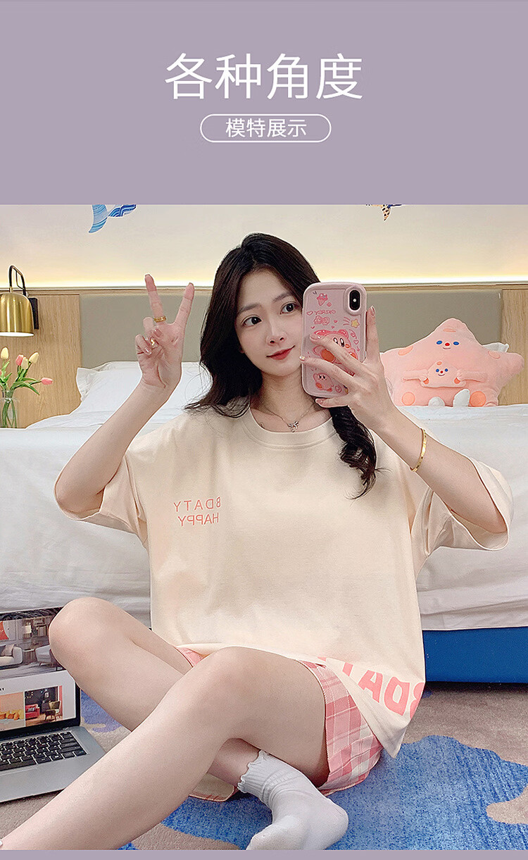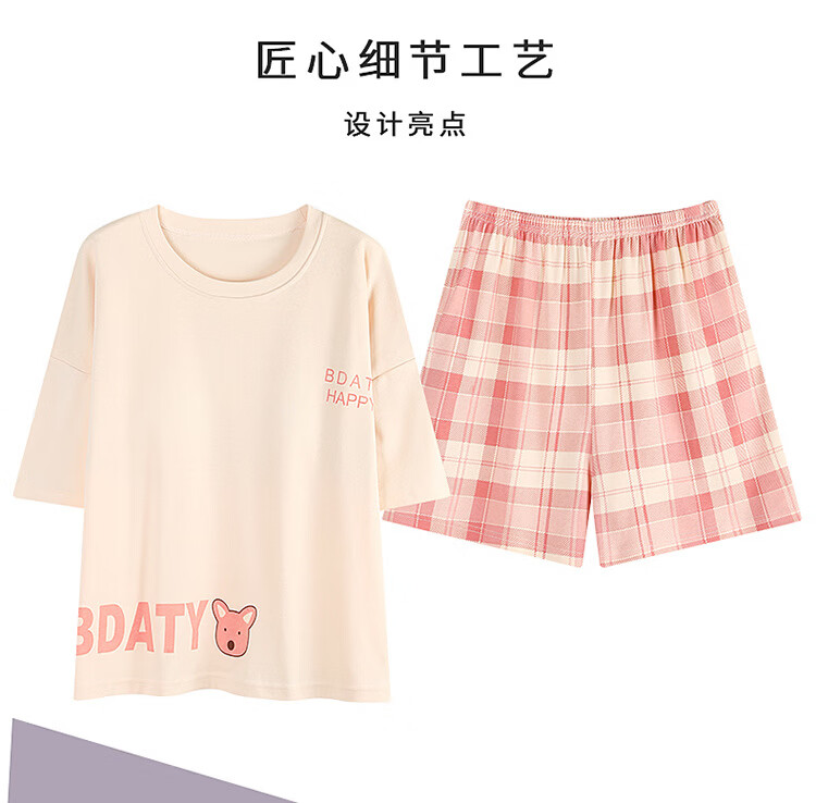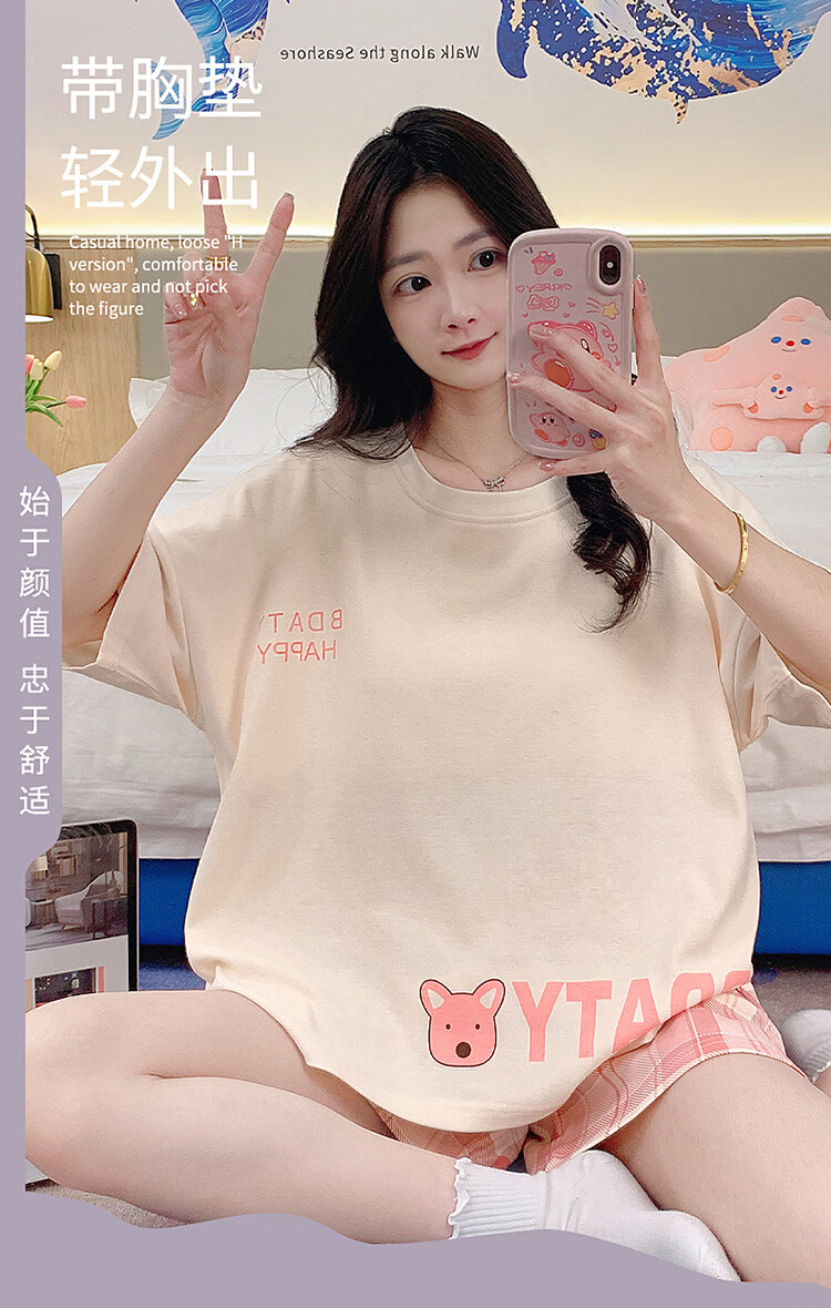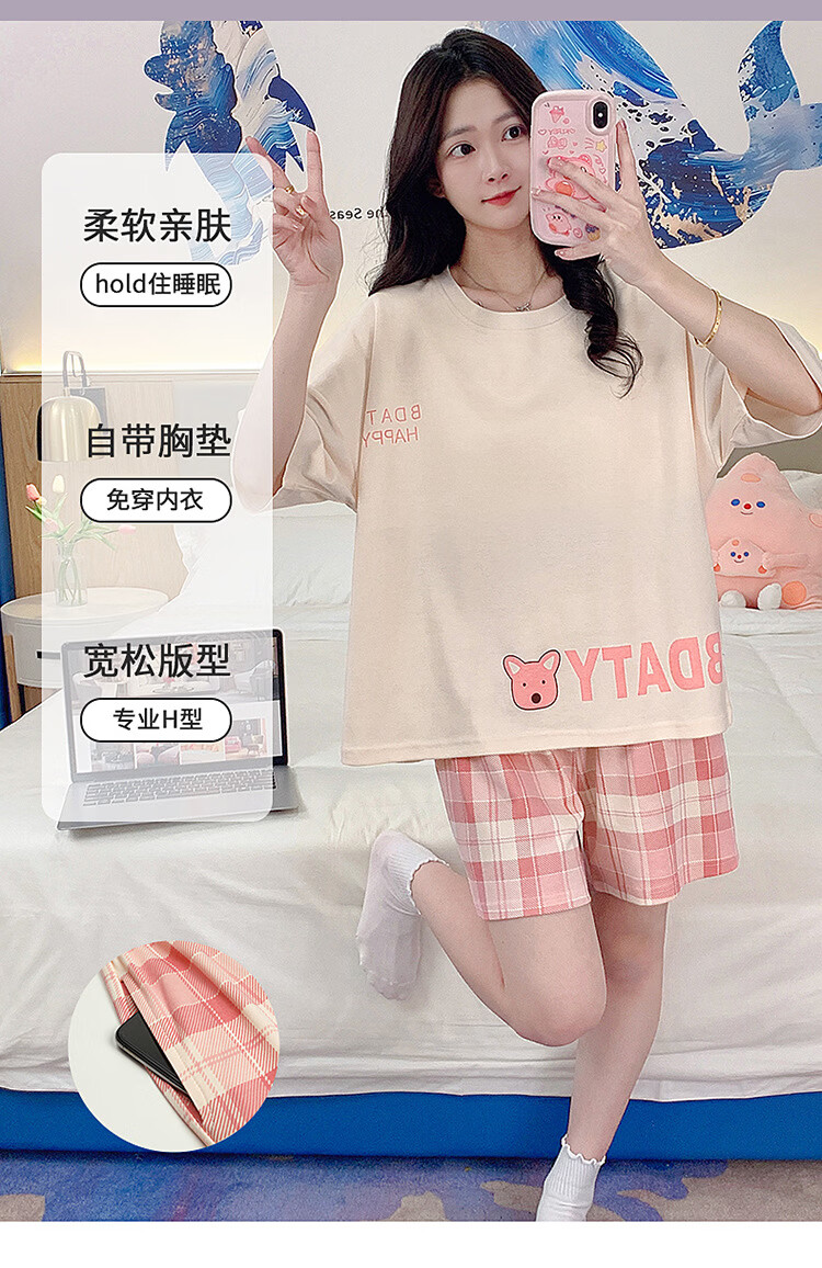 DAPHNE达芙妮夏季新款短袖短裤女休闲大码宽松可爱卡通可外穿带胸垫家居服套装 CRS-88801带胸垫 L